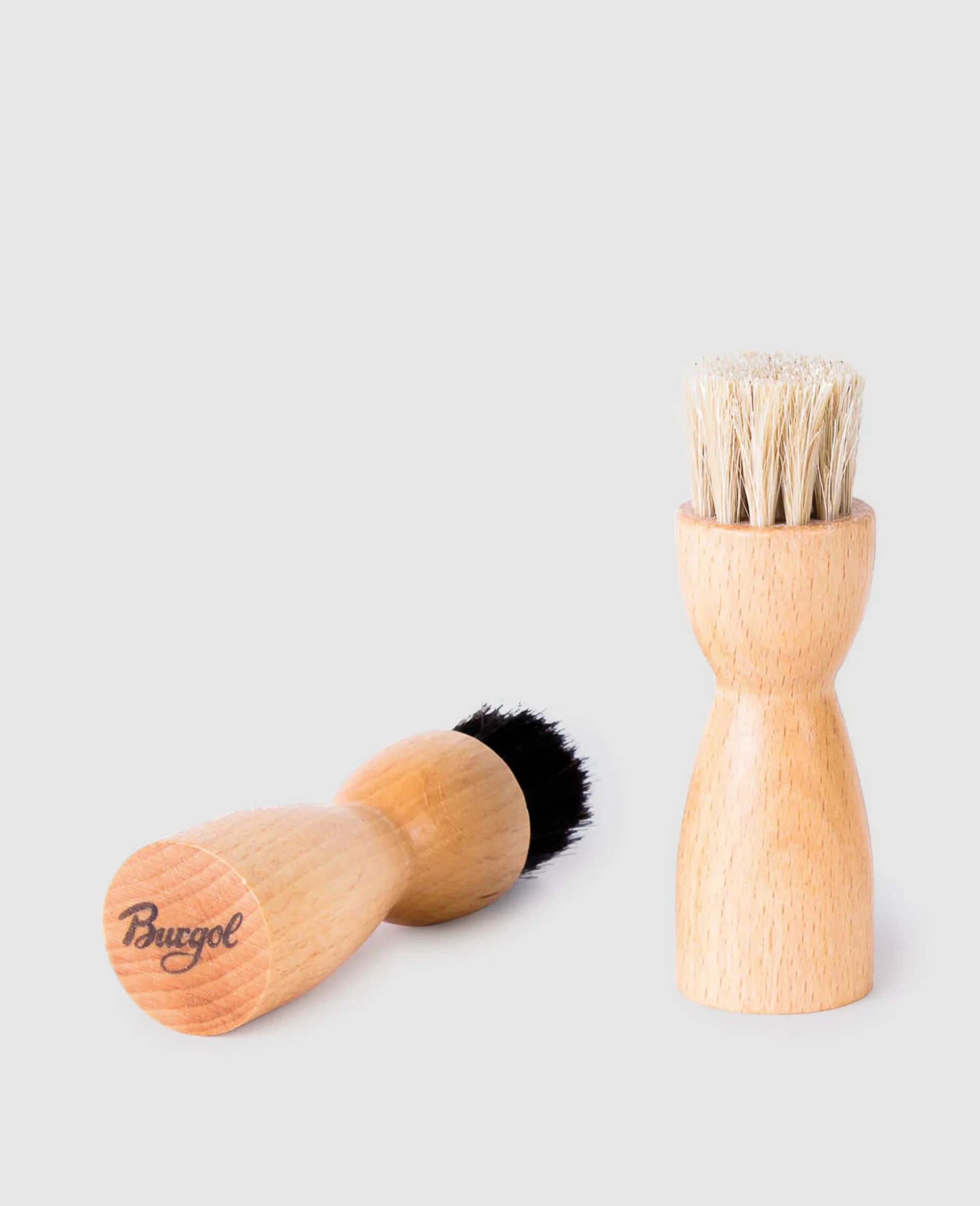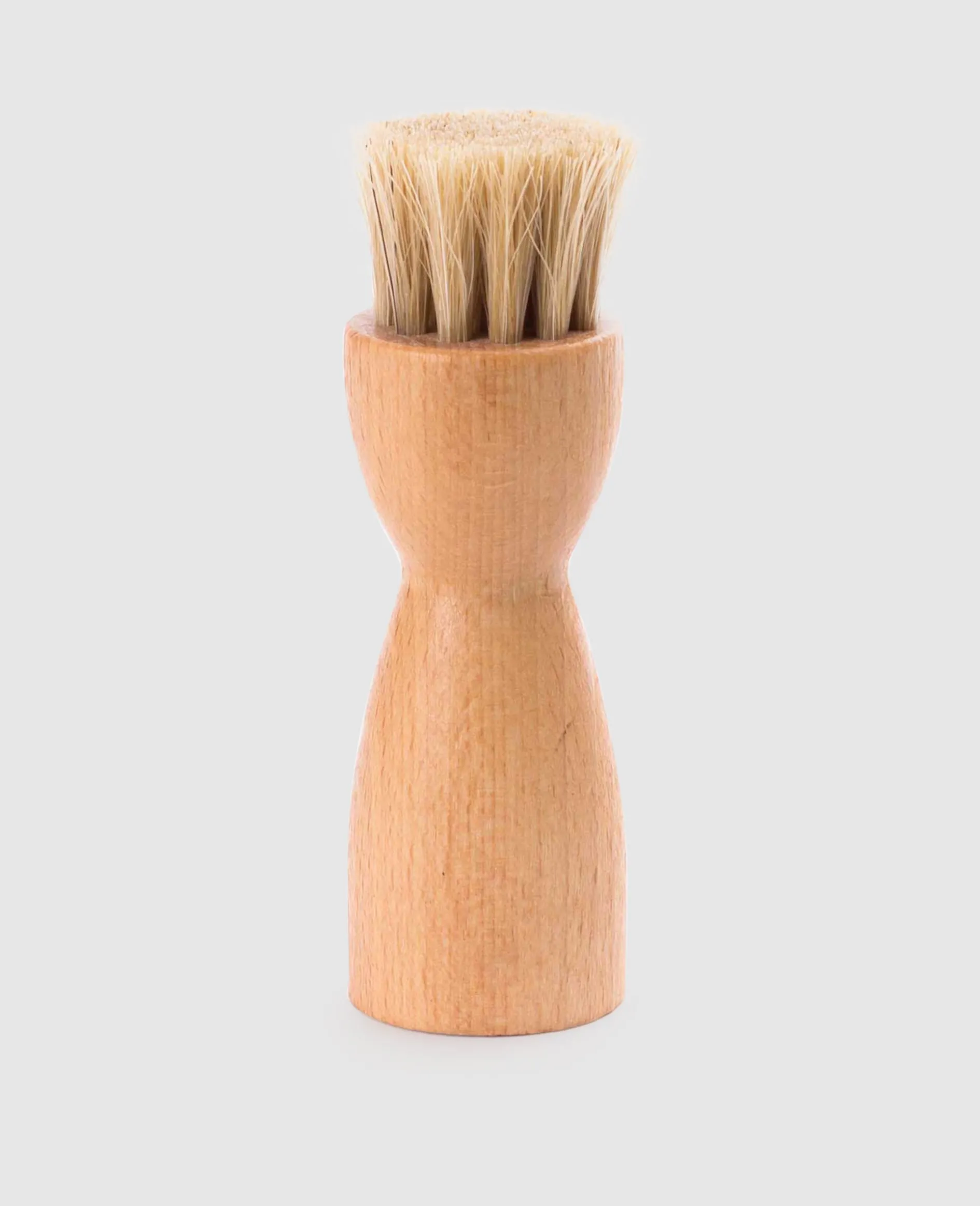 Die Auftragbürste, in Form eines Pinsels, ist eine Ergänzung zum Baumwolltuch, um Schuhcreme auf das Oberleder aufzutragen. Sie eignet sich besonders für stark strukturiertes Leder und erreicht schwer zugängliche Zonen des Schuhs, wo der Lappen versagt. Aus heimischer Buche in Deutschland gefertigt.