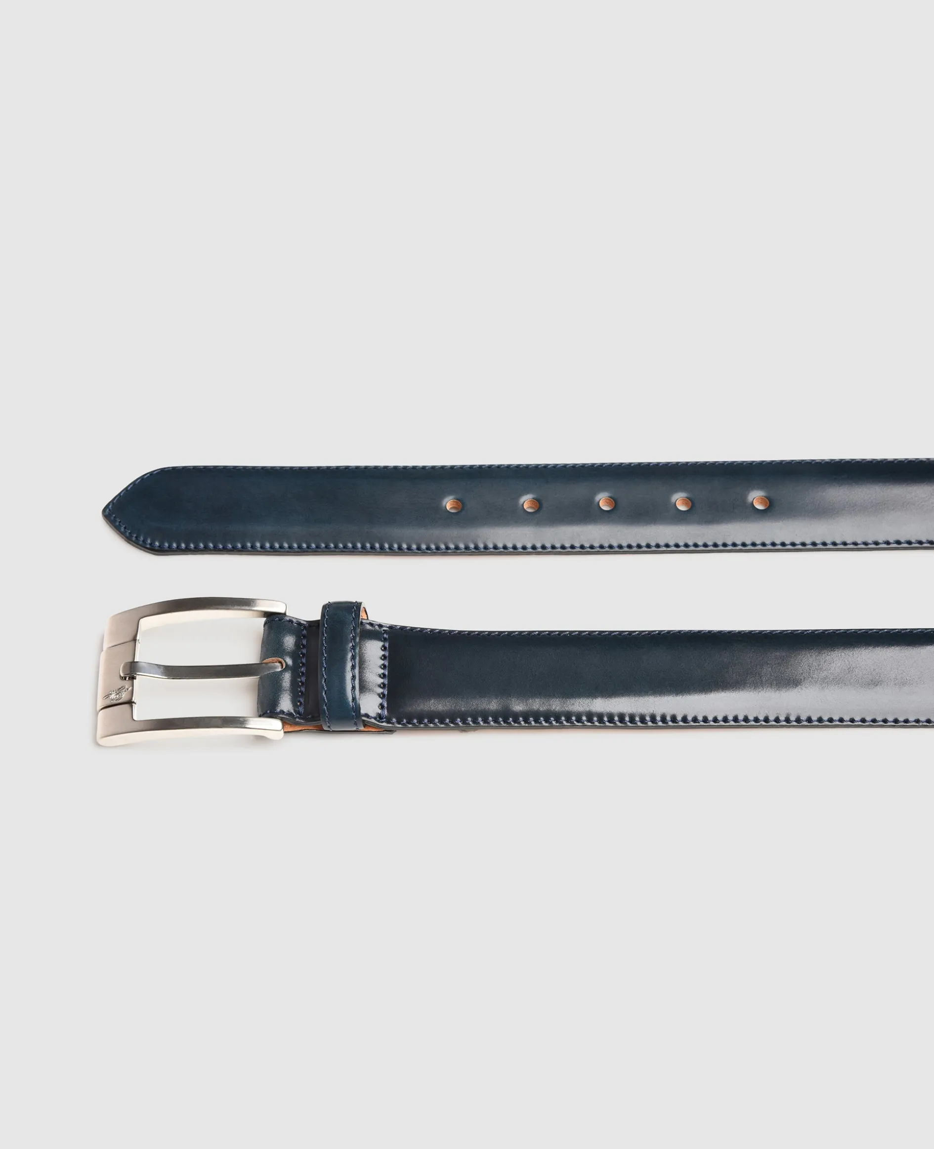 So anspruchsvoll wie die Dinkelacker Schuhe aus luxuriösem Shell Cordovan, ist dieser handgefertigte Vollledergürtel für Herren zu beurteilen. Während seine Außenseite das berühmte Pferdeleder von Horween aus Chicago präsentiert, zeigt sich die Innenseite aus erlesenem Rindsleder. Beide Lederpartien mit einer Breite von 35 mm wurden in einer italienischen Manufaktur engstichig miteinander vernäht.