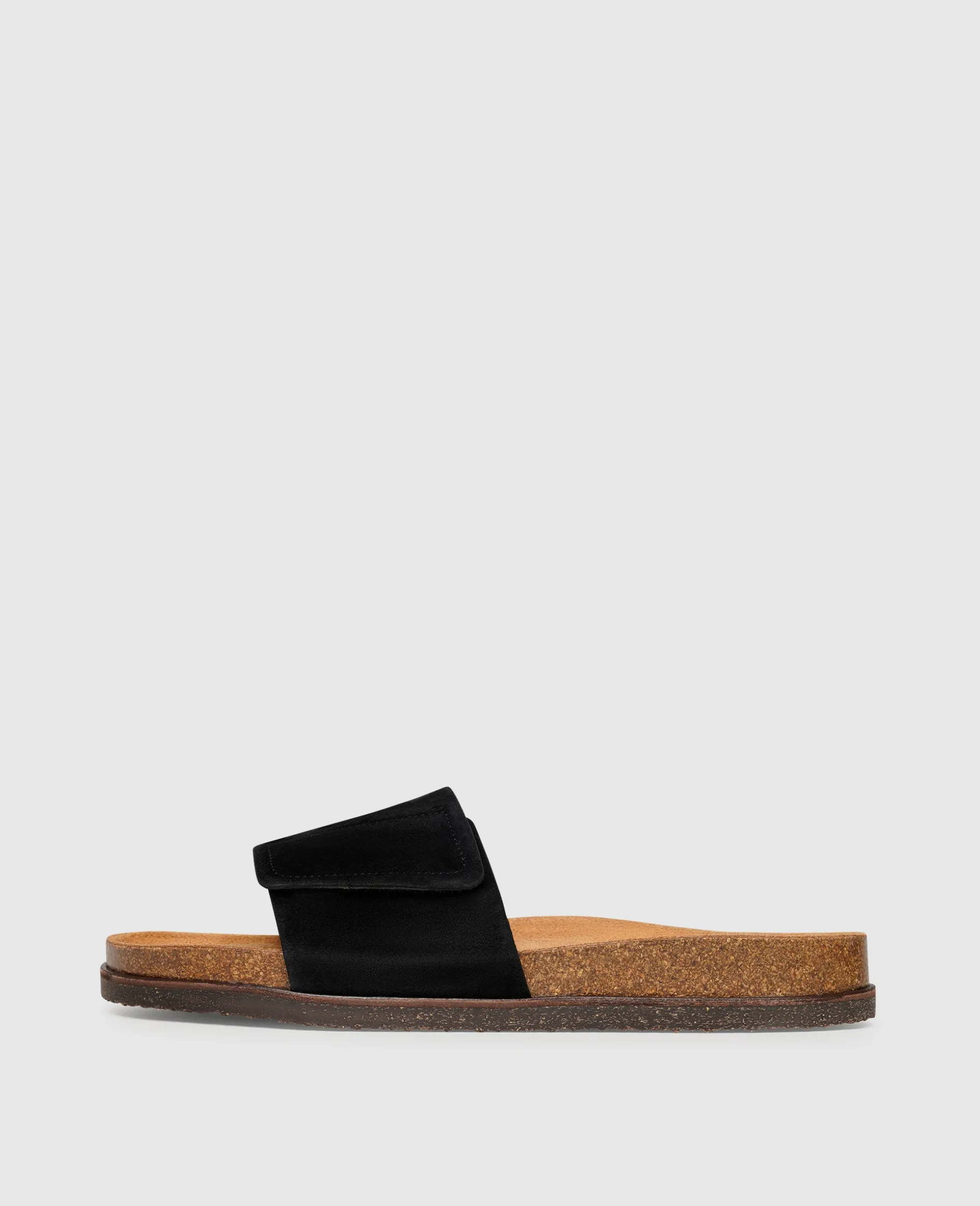 Luftig-leicht und höchst komfortabel verleben Sie sommerliche Tage in einem Paar dieser Sandalen von Henry Stevens. Der schwarze Schuh wird durch Riemen aus rauem und samtigem Kalbsvelours und einer Schnalle in der Weite reguliert. Im Inneren sorgt Bio-Leder nicht nur für ein angenehmes Schuhklima, es ist auch besonders hautfreundlich vollständig kompostierbar. Das weiche Fußbett aus Kork macht jeden Schritt zu einem echten Geherlebnis, während die aufgesetzte Laufsohle aus Krepp für Rutschfestigkeit sorgt. Die in Portugal gefertigten Sandalen sorgen für die perfekte Abrundung Ihrer Freizeitlooks.