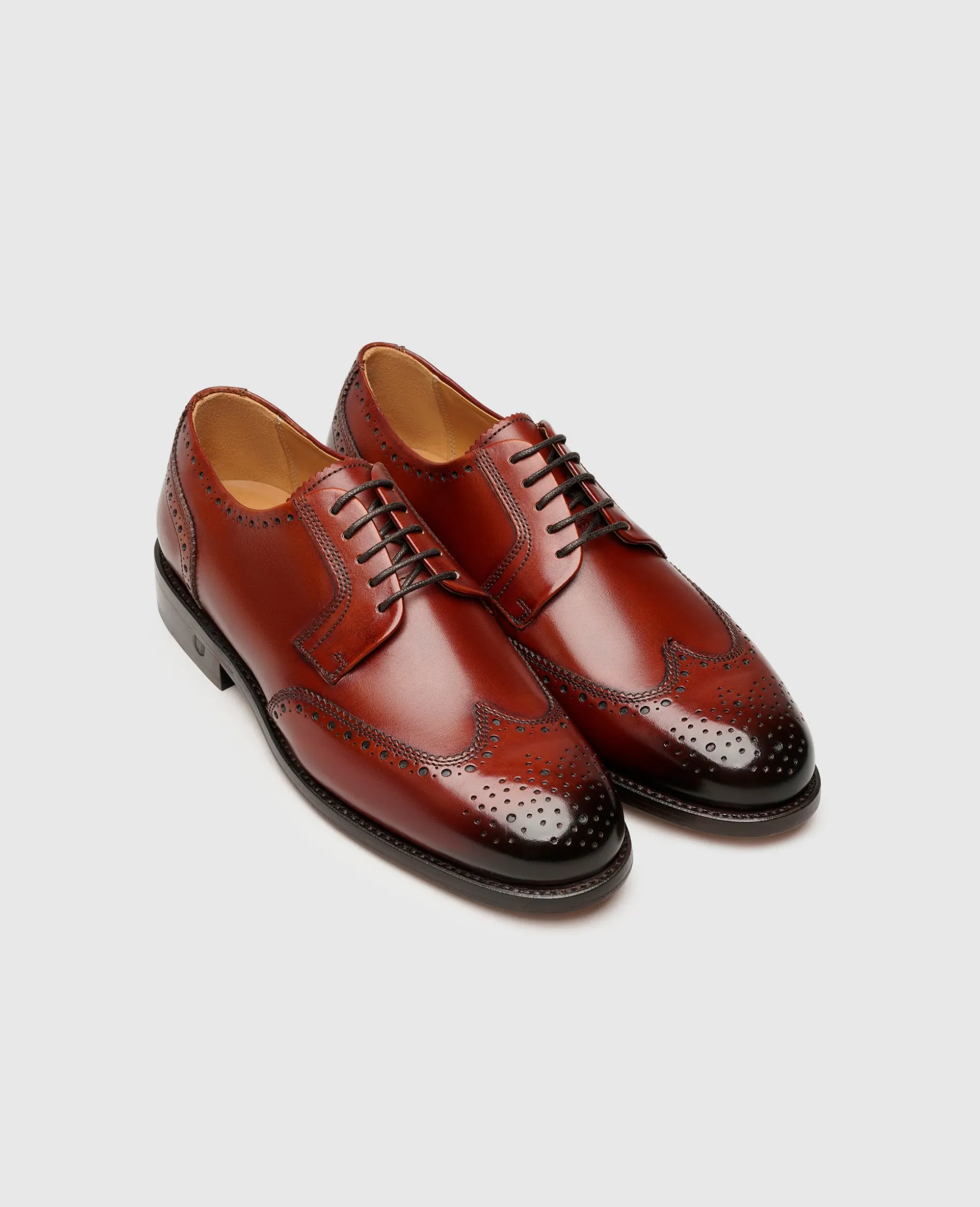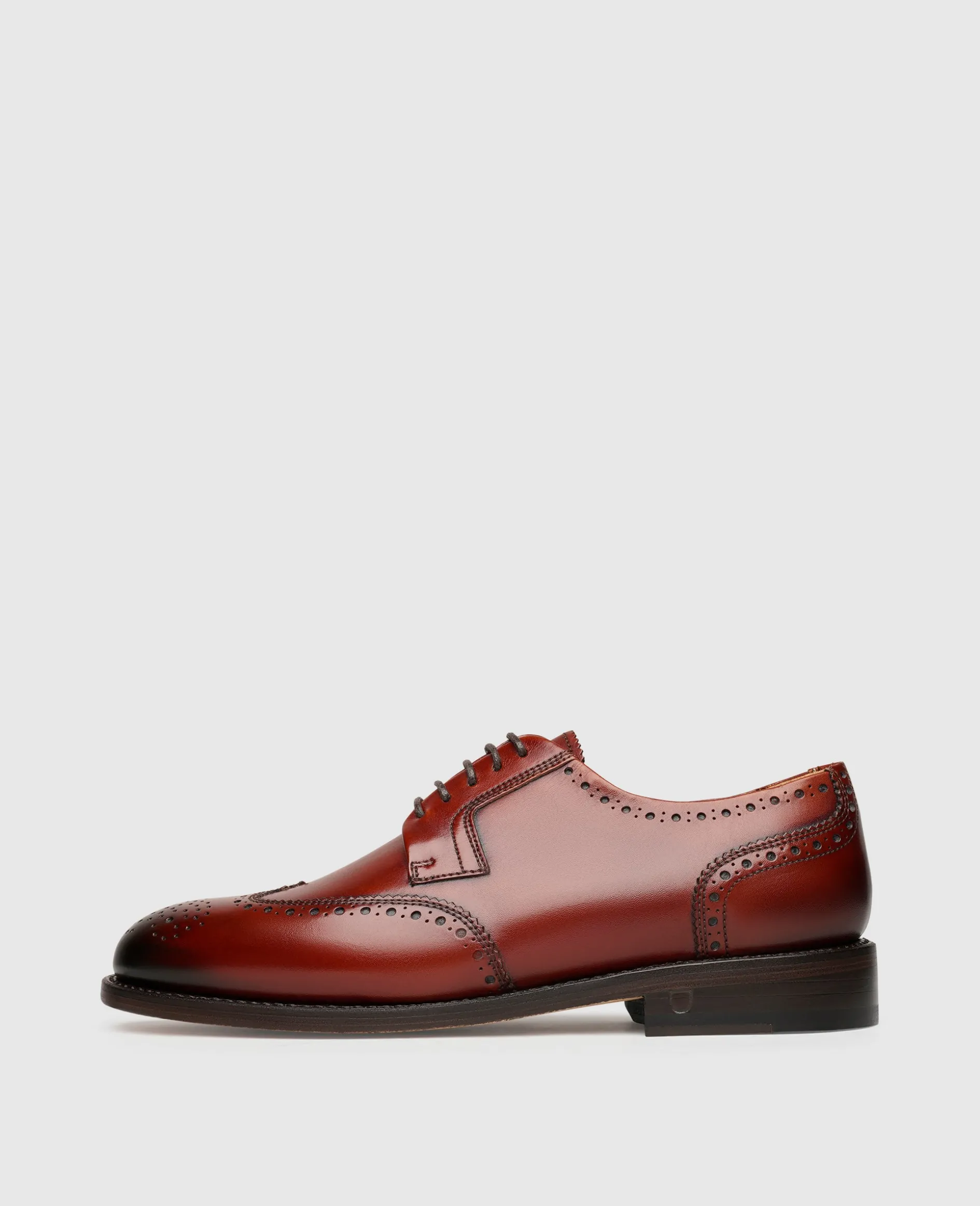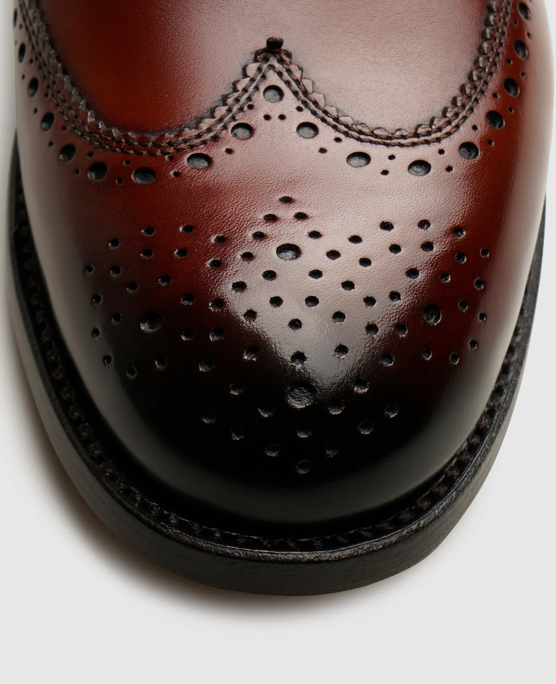 Mit einem wunderbaren Farbspiel auf dem Oberleder veredelt der Ella Full-Brogue Blücher einen jeden Look. Ein sorgfältig von Hand auf das Oberleder aufgetragene Finish verleiht dem Modell mit der offenen Schnürung sagenhafte Farbchangierungen, die garantiert Blicke auf sich ziehen. Die aufwendige Lyralochung entlang der Schaftteilkanten sowie die geschwungene Flügel- und Hinterkappe verleihen dem Damenschuh zusätzliche Raffinesse. Das elegante Kalbsleder sowie die klassische Ledersohle lassen das Modell zu einem strapazierfähigen und reparaturfreundlichen Begleiter avancieren.