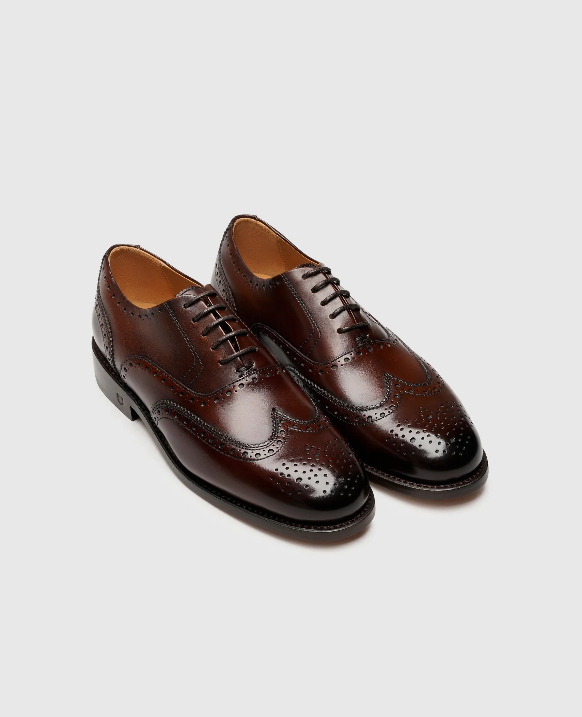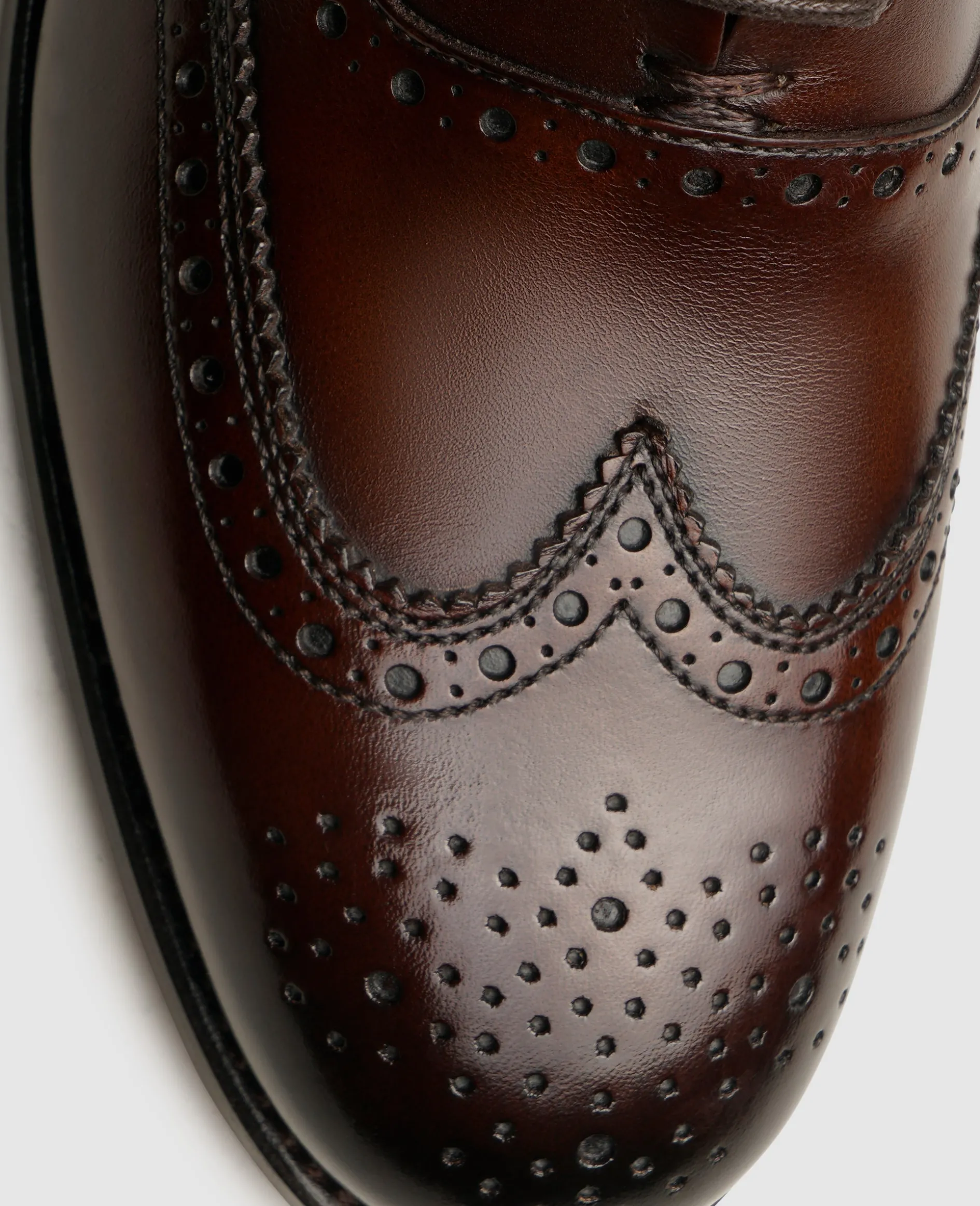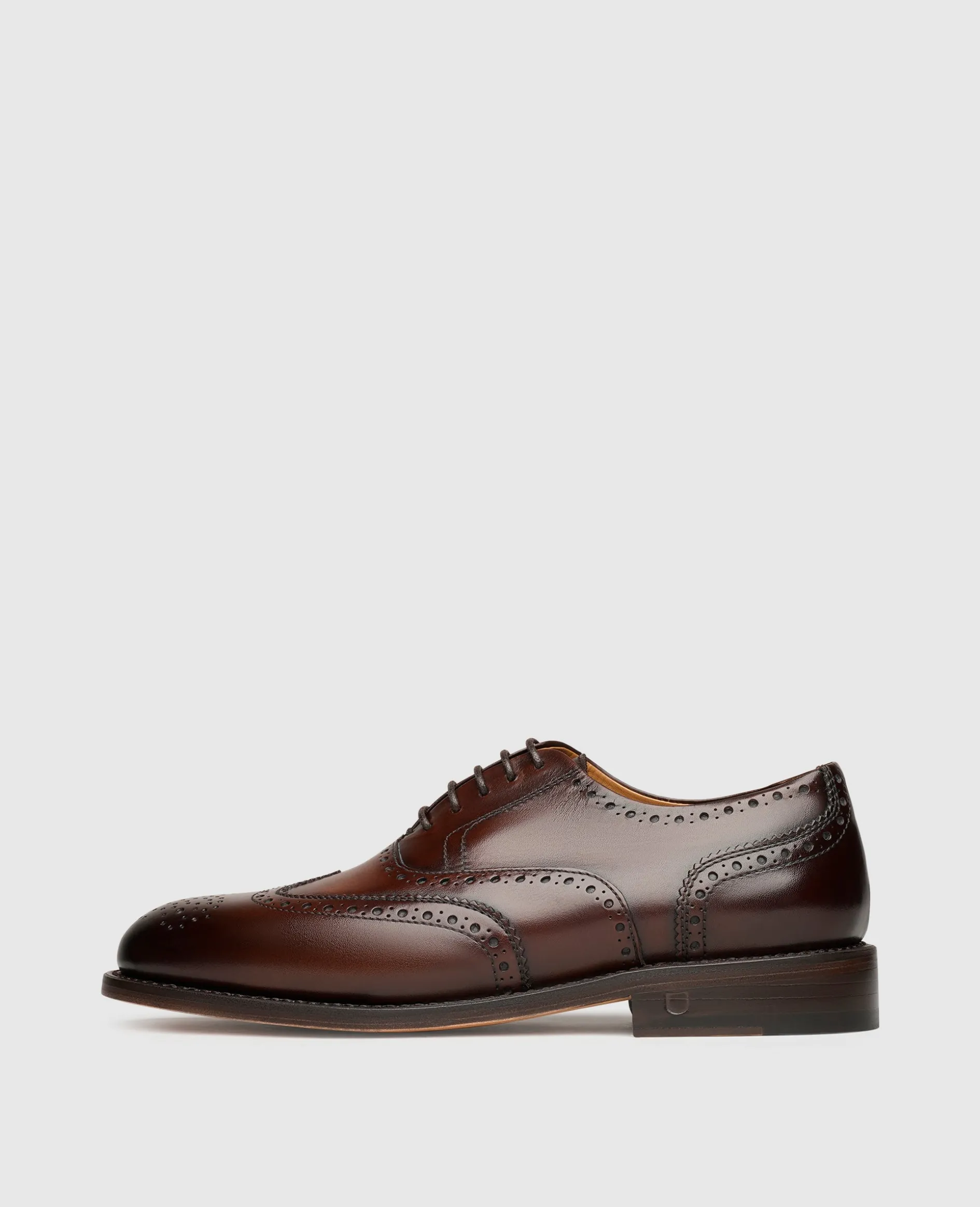 Viel Liebe zum Detail steckt in diesem handgefertigten Ella Full-Brogue Oxford. Das aufwendige Lochmuster entlang der Schaftteilkanten sowie der geschwungenen Flügel- und Hinterkappe schmücken den klassischen Schnürschuh für Damen. Gemeinsam mit dem sagenhaften Farbspiel auf dem italienischen Kalbsleder erheben die reichlichen Verzierungen den Damenschuh zu einem außergewöhnlichen Begleiter. Die geschlossene Schnürung und die abgerundete Leistenform des rahmengenähten Oxfords erschaffen eine feminine Silhouette, die zu vielerlei Outfits kombiniert werden kann.