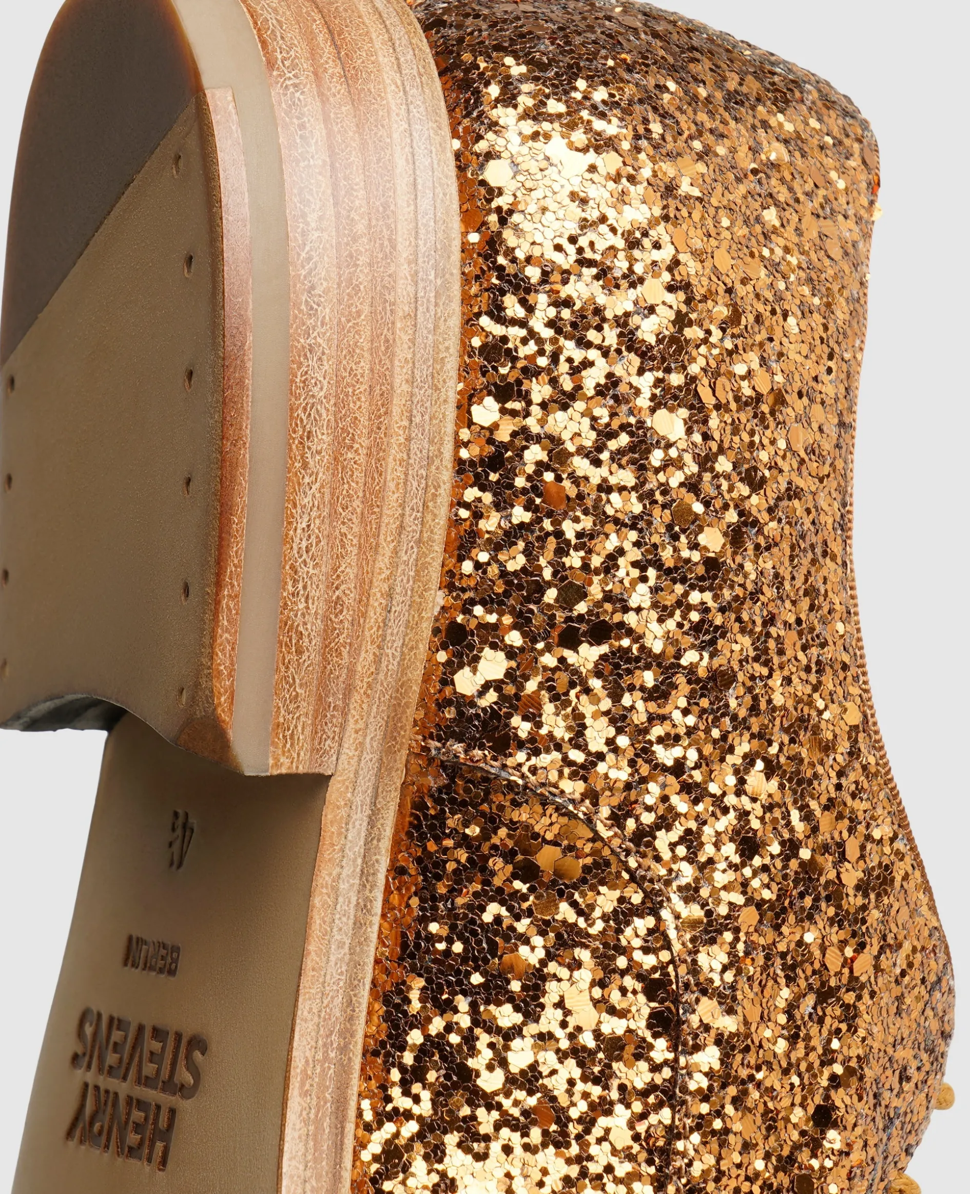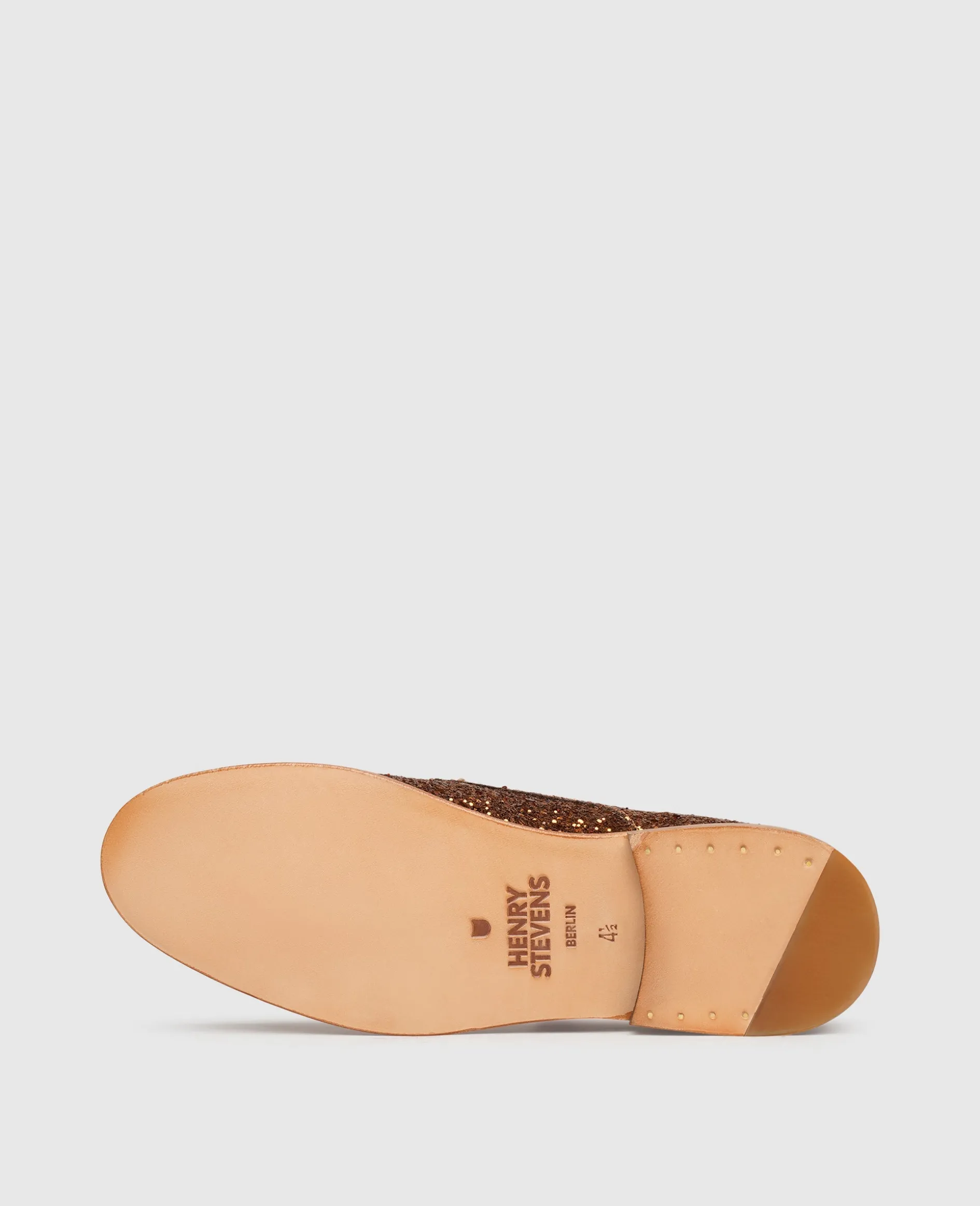 Extravaganz und Glamour auf dem Schaft eines traditionsreichen Schuhmodells bietet dieser Hingucker von Henry Stevens. Ein aufwendiger Paillettenbesatz auf dem Oberleder vom Kalb verleiht eine unverwechselbare Optik, die auch dem schlichtesten Outfit einen Wow-Effekt verleiht. Die offene Schnürung des Derby erleichtert den Ein- und Ausstieg, während die klassische Ledersohle dem Damenschuh ein langes Leben verspricht.