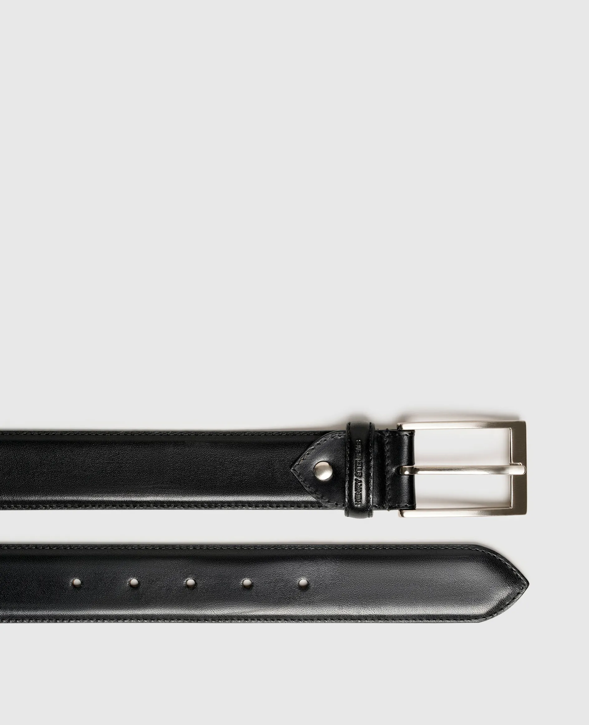 Als ideale Ergänzung zum klassischen Herrenschuh präsentiert Henry Stevens diesen handgefertigten Herrengürtel aus feinstem Glattleder mit einer Breite von 35 mm. Zeitlose Eleganz verströmt das geschmeidige Kalbsleder aus Frankreich mit seinem sanften Glanz, engstichig vernäht mit einer Innenseite aus ungefärbtem Kalbsleder. Geschlossen wird der zweilagige Vollleder-Gürtel für Herren mit einer silbernen Dornschnalle aus nickelfreiem Zamak.