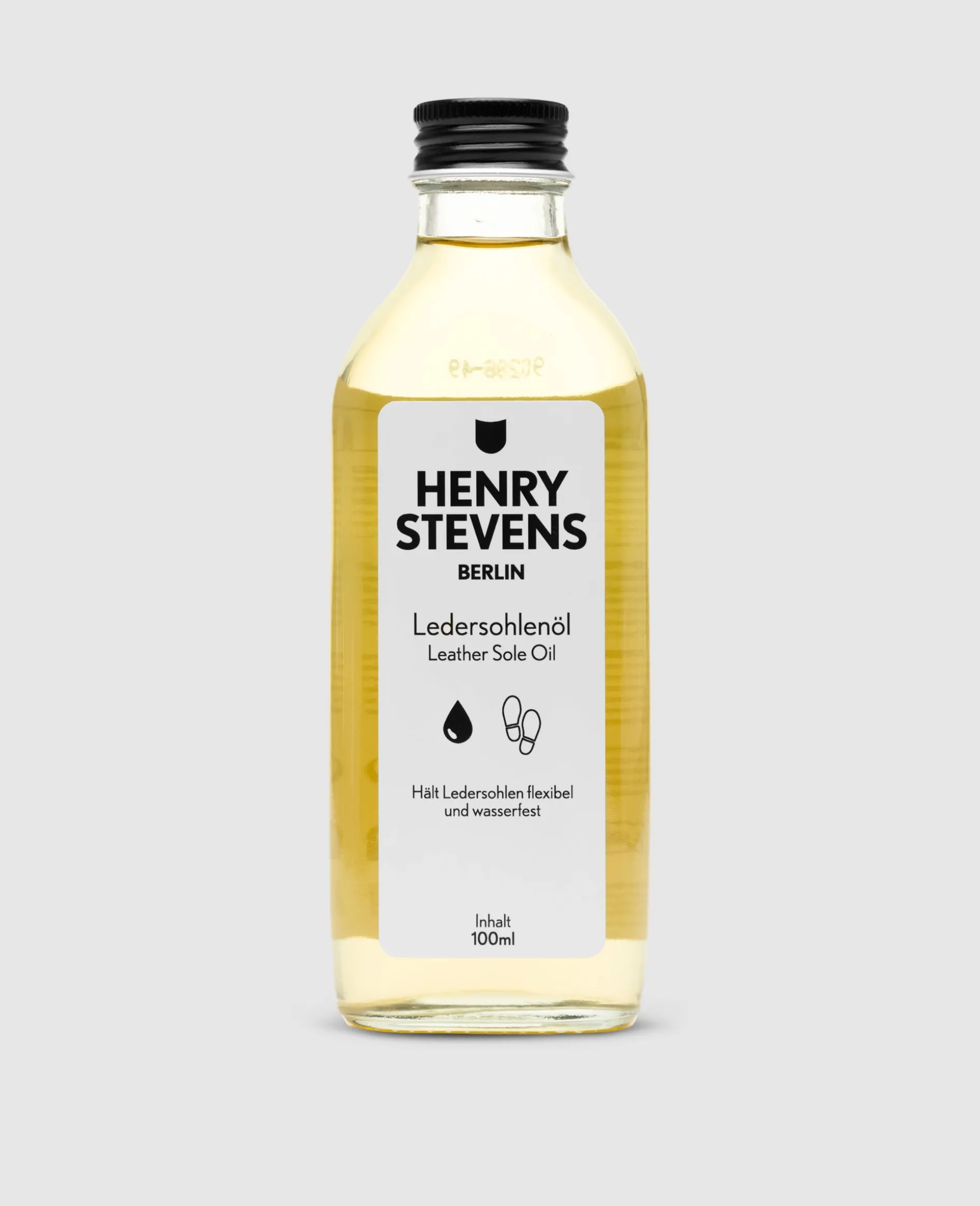 Schützen Sie Ihre Ledersohlen vor Nässe und Schmutz mit unserem beliebten Ledersohlenöl. Durch die Formel aus kostbarem Avocado- und Sesam-Öl werden die Ledersohlen wieder flexibel, sodass Sie auch im Winter durch Rollsplit und Streusalz nicht brüchig werden. Zudem wird die natürliche Wasserfestigkeit verstärkt und der Abrieb der Sohle vermindert. Durch eine Verwendung des Henry Stevens Ledersohlenöls kann die Lebensdauer Ihrer Ledersohlen verdoppelt werden.