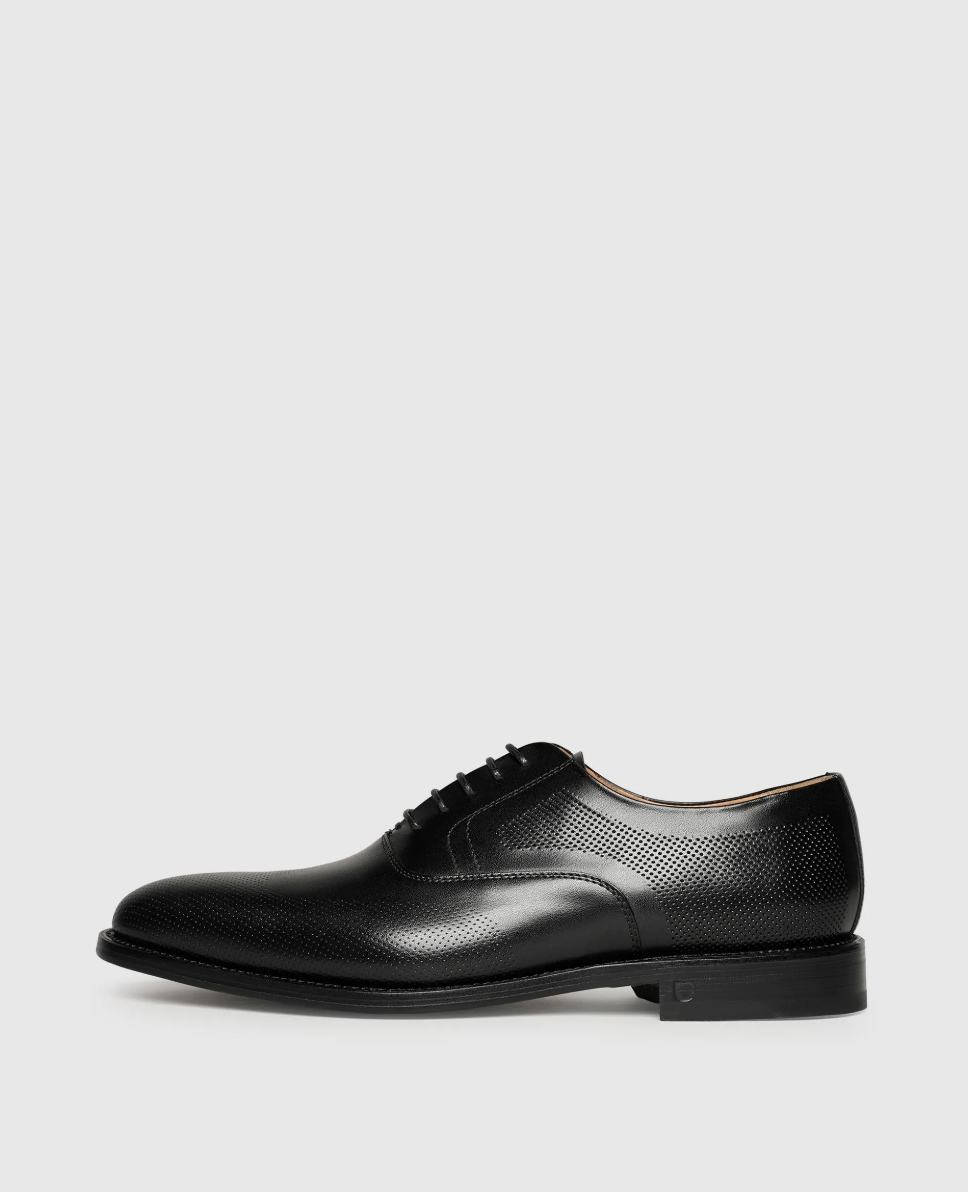 Eine Symbiose aus leichtem Komfort und klassischer Eleganz präsentiert dieser rahmengenähte Full-Brogue Oxford von Henry Stevens. Dieses schwarze Schuhmodell für Herren überzeugt durch seine Schnürung sowie das glatte und seidig glänzende Newcastle-Leder. Das Innenfutter aus vegetabil gegerbtem Leder zeichnet sich durch Hautfreundlichkeit und Atmungsaktivität aus. Besonderen Halt gibt Ihnen das komfortable Fußbett aus Leder, welches durch eine natürliche Lederlaufsohle Vollendung findet. Als optisches Statement zeigt sich dieses in Spanien handgefertigte Modell aufgrund der dekorativen Micro-Perforationen. Der schicke Schnürer ist der perfekte Begleiter für Business-Looks und die gehobene Freizeitgarderobe.