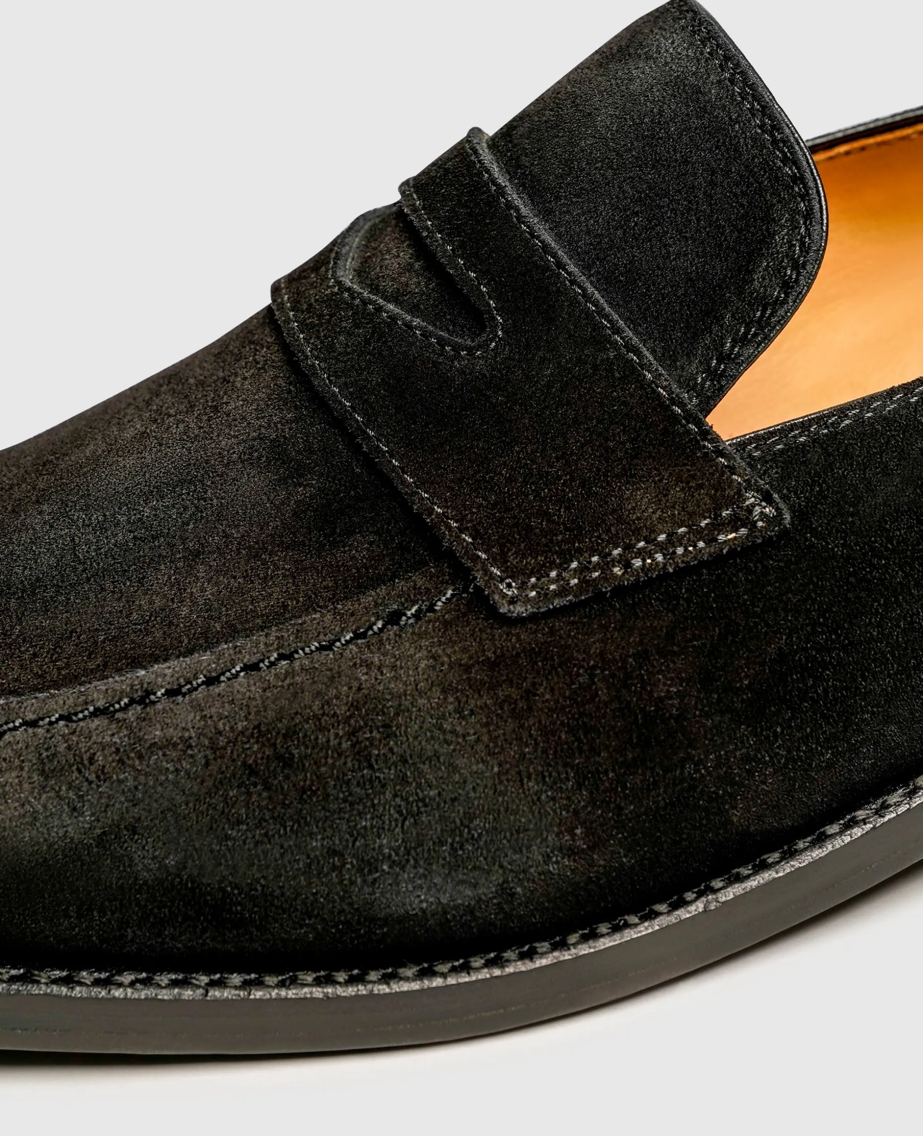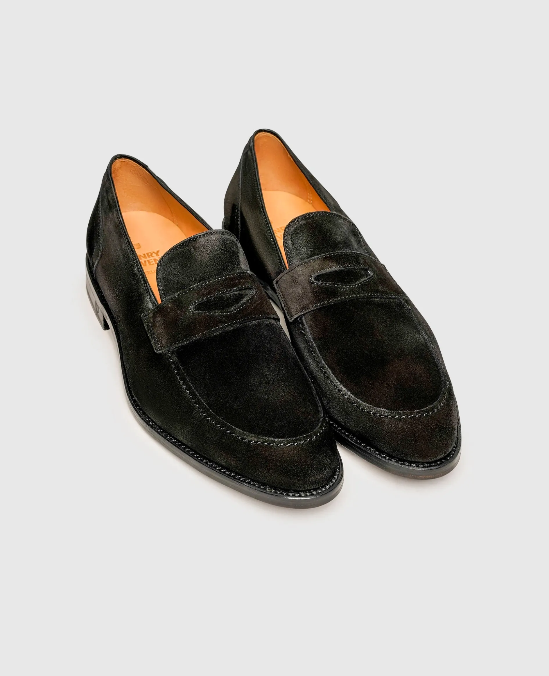 Ein klassischer Sommerschuh aus erlesenem Velours-Leder erwartet Sie mit diesem rahmengenähten und handgefertigten Penny Loafer von Henry Stevens. Charakteristisch für den beliebten Schlupfschuh ist der markante Querriemen über dem Ristbogen. Im Inneren verfügt der Herren-Slipper über ein pflanzlich gegerbtes und daher hautfreundliches Innenleder – ideal für luftig-leichte Barfuß-Kombinationen mit Stil. Eine langlebige Laufledersohle rundet das anspruchsvolle Ensemble perfekt ab.
