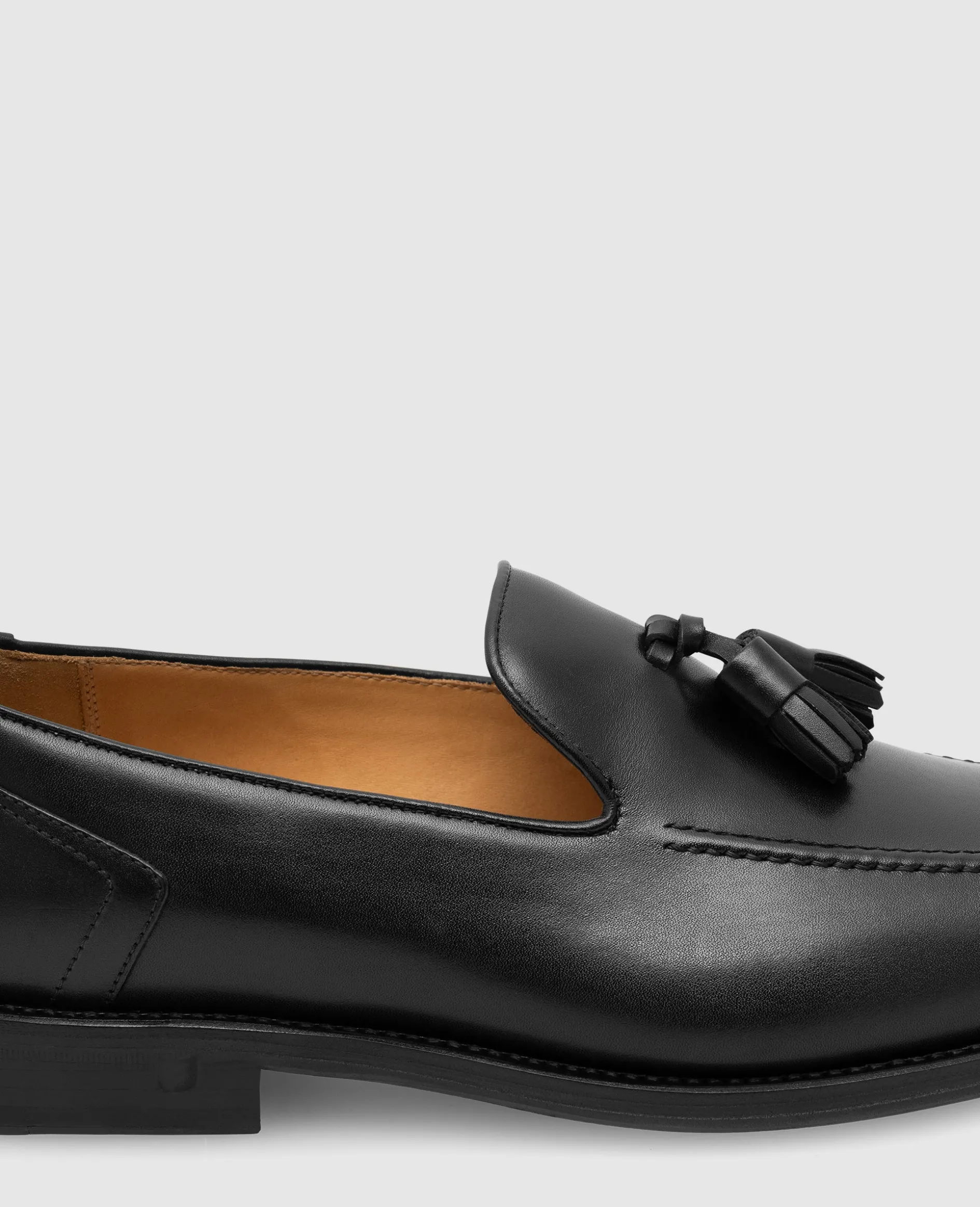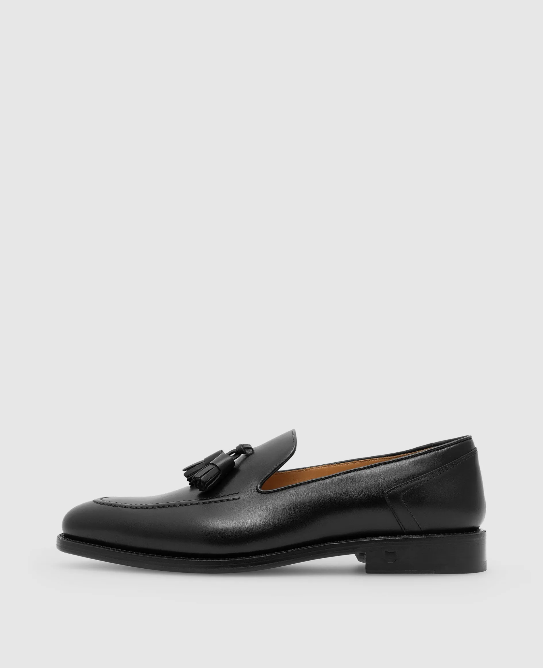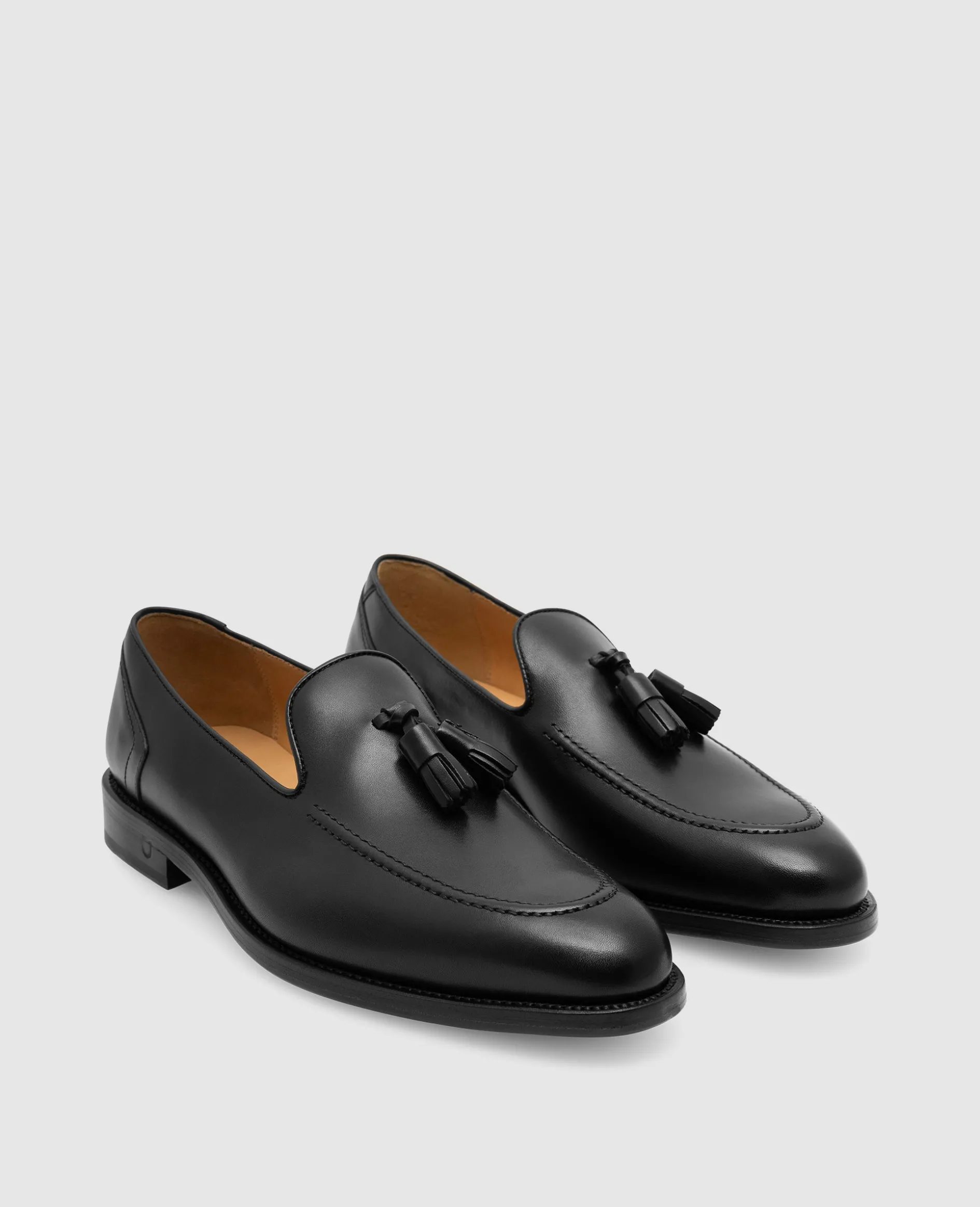Der Marshall Tassel-Loafer in Schwarz ist ein eleganter Begleiter für den Sommer. Mit seiner rahmengenähten Konstruktion und dem hochwertigen Boxcalf-Material bietet er Langlebigkeit und Stil. Das Innenfutter aus vegetabil gegerbtem Leder und die flexible Ledersohle sorgen für angenehmen Tragekomfort.