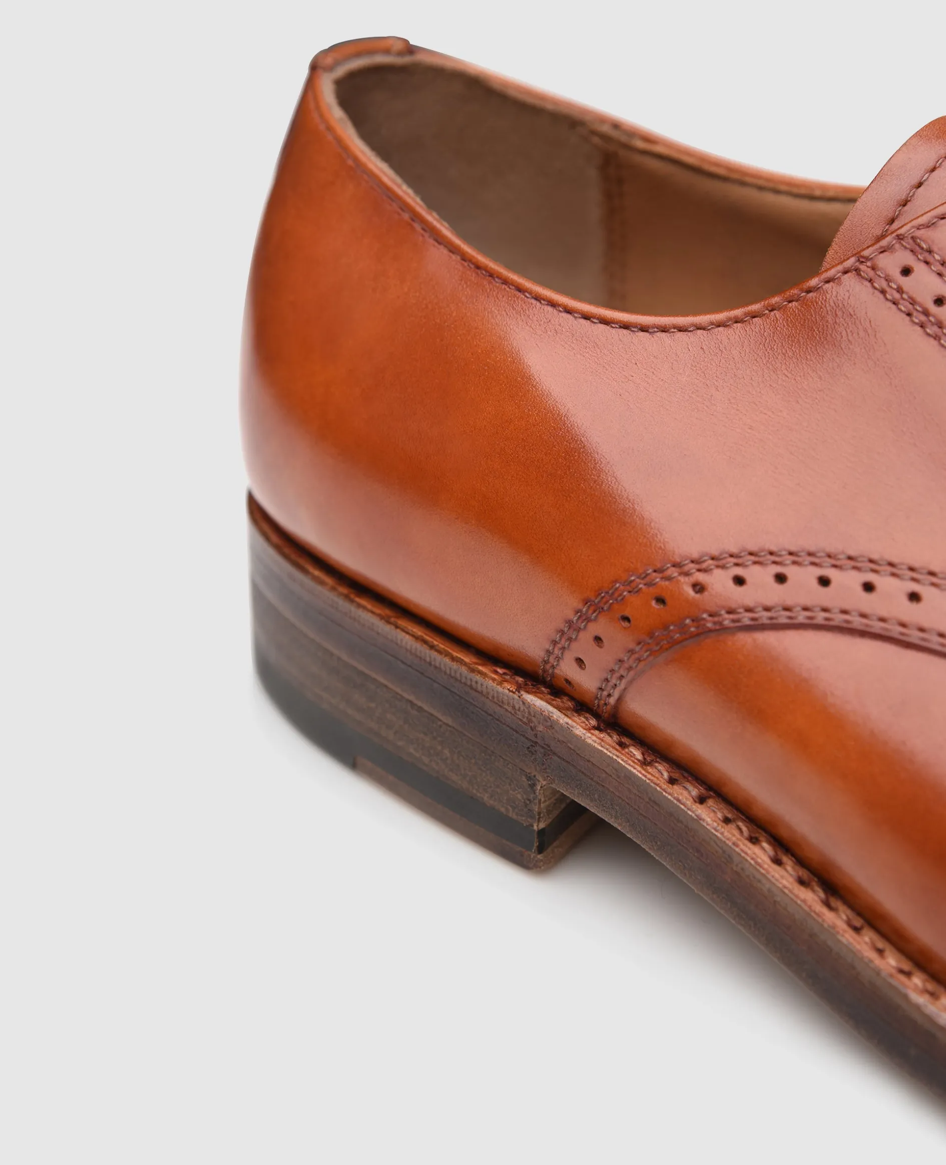 Dieses Modell ist nicht weniger als die Rendenbach Revolution. Die dünnere, flexible Doppelsohle erlaubt ein noch leichteres Abrollen und das bei der gewohnten Qualität der extrem abriebsarmen Laufsohlen des Traditionshauses. Auch obenrum kann sich der Milano sehen lassen: das feine Toscana Calf verleiht dem Plain Derby eine angenehme Patina.