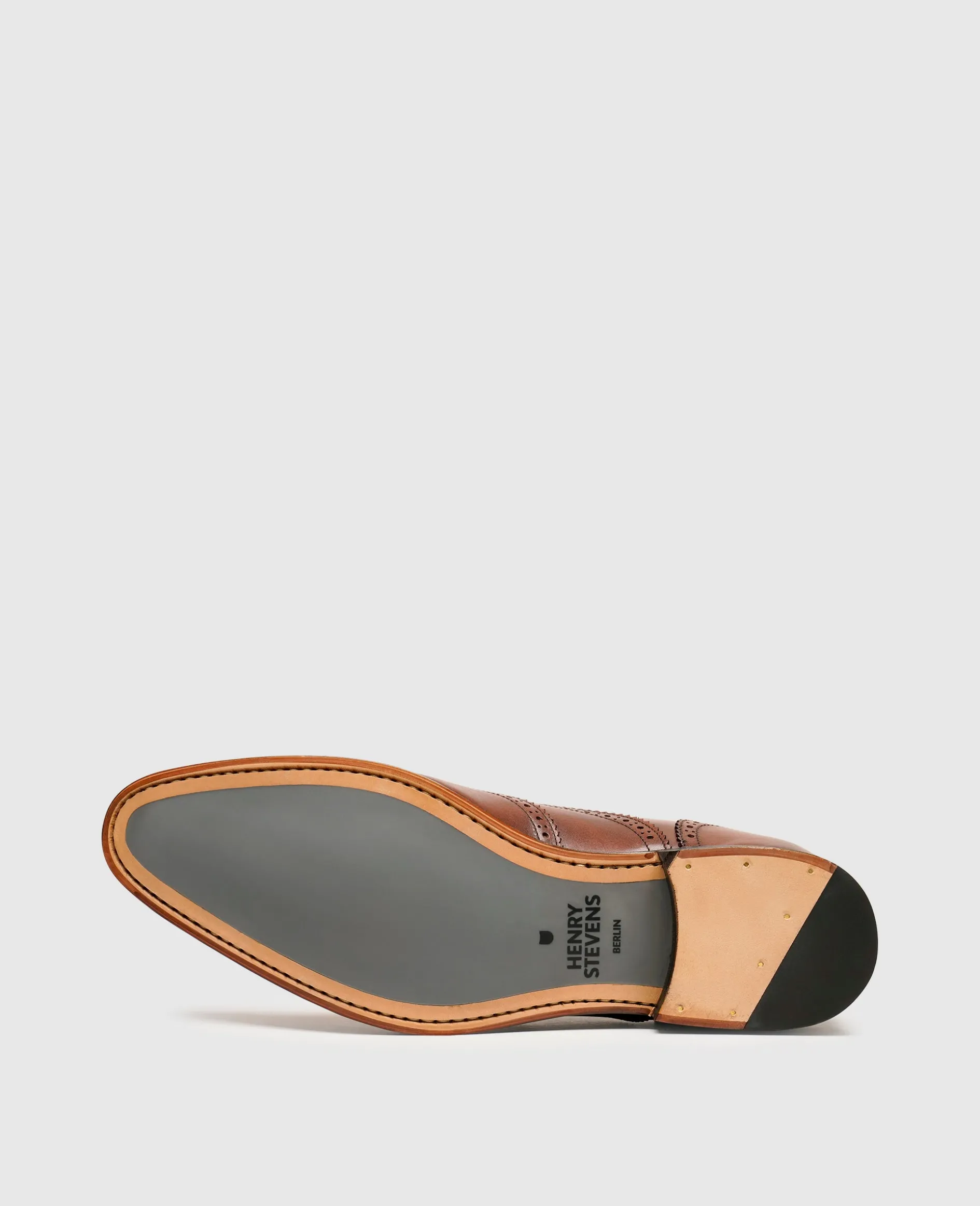 Klassische Dynamik manifestiert sich in dem durchgenähten Full-Brogue Oxford von Henry Stevens. Das Schuhoberteil begeistert mit erlesenem Glattleder, bewusst aufgelockert von einer opulenten Perforation. Die Laufsohle überzeugt mit einer modernen Ledersohle mit Gummieinsatz. Im Inneren befindet sich ein vegetabil gegerbtes Bio-Innenfutter sowie eine Fersenpolsterung mit Memory-Foam-Effekt. Der perfekte Begleiter für alle Herren, die Tradition mit moderner Leichtigkeit kombinieren möchten.