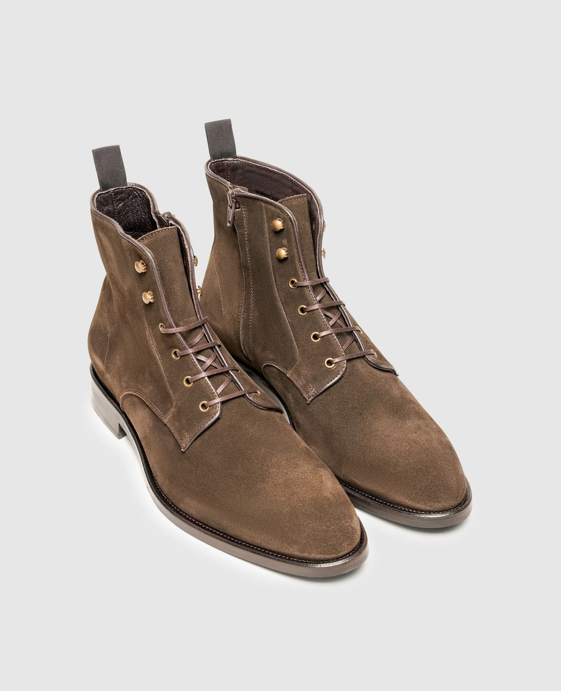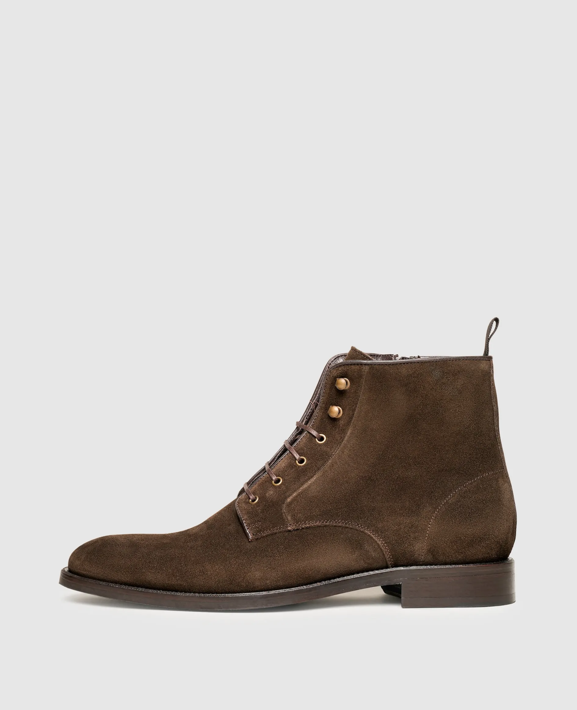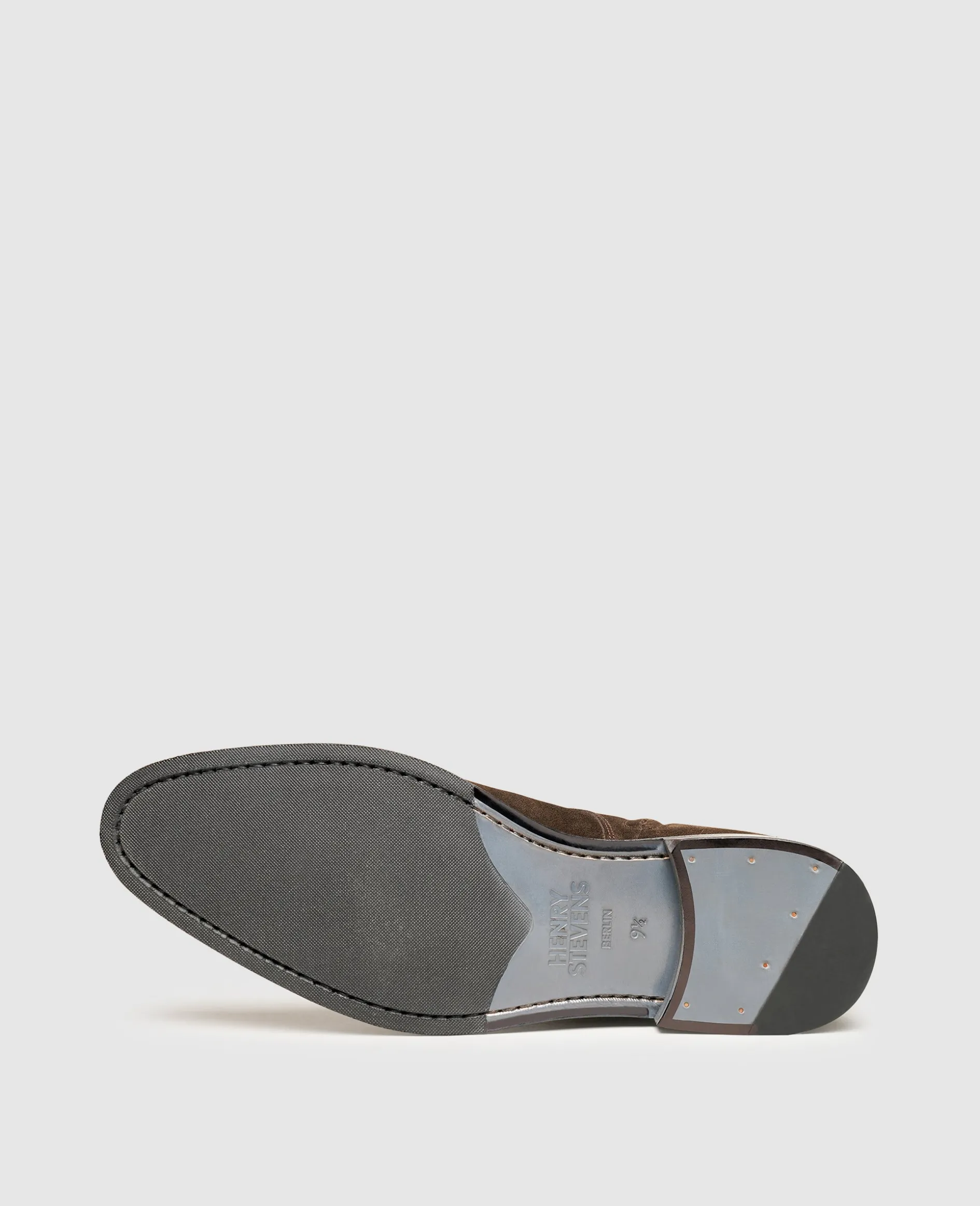 Ein unbeschwertes Tragegefühl und einen smarten Look vereinen die handgefertigten und durchgenähten Schnürboots für Herren von Henry Stevens. Das Schuhoberteil begeistert im klassischen Derby-Design mit offener Schnürung und samtigem Velours – im Inneren wurde nachhaltiges Bio-Leder verwendet. Der leichte Bodenaufbau inklusive Fersenpolsterung und kombinierter Leder-Gummisohle garantiert hohe Flexibilität, ein Zipper sorgt für zusätzlichen Komfort.