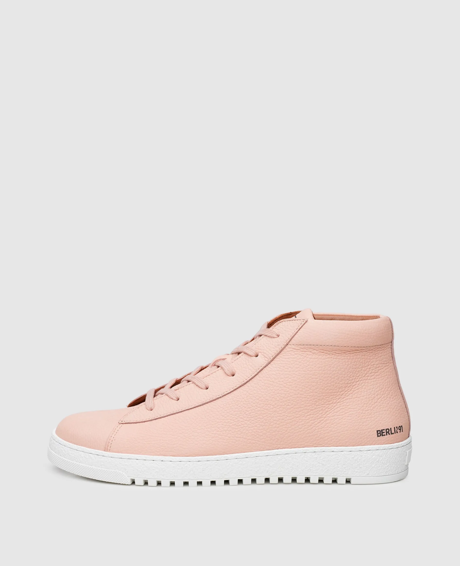 Extrem biegsam und ausgesprochen leicht kommt dieser handgefertigte High-Top Sneaker für Herren daher. Sein hoher Schaft schmiegt sich angenehm an den Knöchel und unterstreicht den sportiven Charakter, akzentuiert von den modernen Design-Elementen der Kollektion »Berlin N91«. Das geprägte Nubuk-Leder und die markante Gummisohle betonen seine moderne Nonchalance.