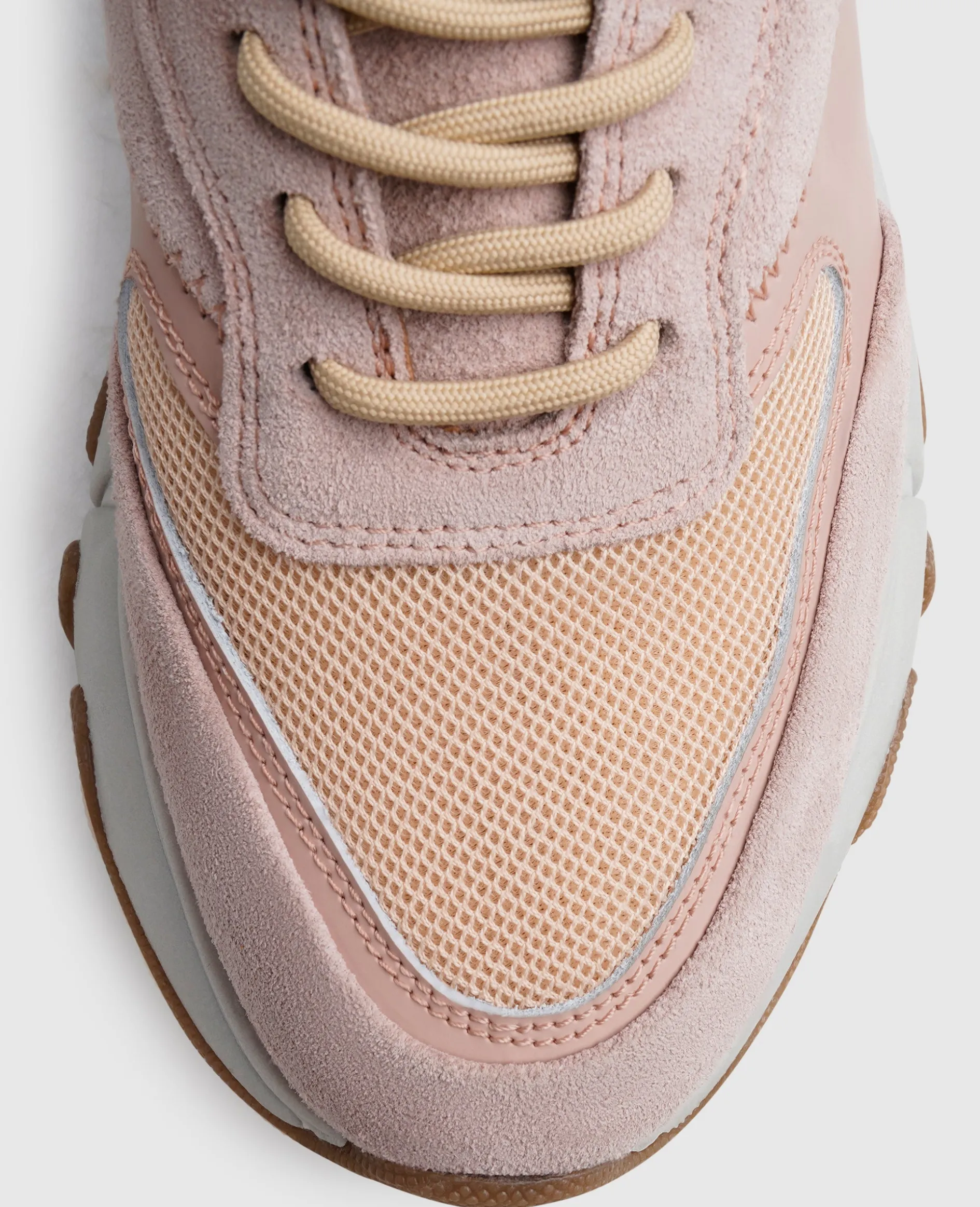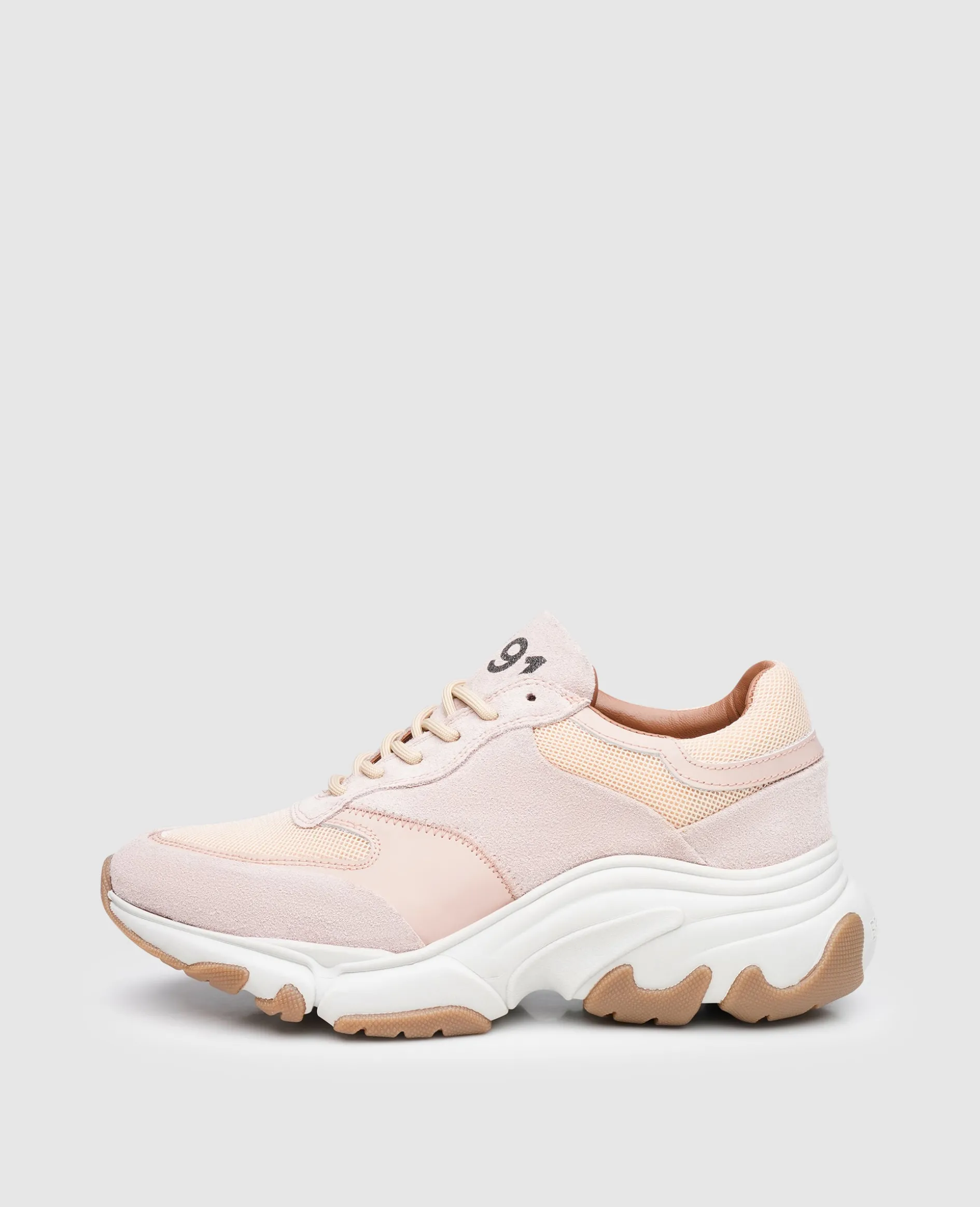 Jeglicher Freizeitlook wird mit diesem Dad-Sneaker zum absoluten Hingucker. Die Materialkombination aus weichem Velours, mattem Kalbsleder und modernem Mesh verleiht dem Schuh seine besondere Dynamik. Die dicke Sohle, eine Kombination aus EVA und Gummi, lässt auch das schlichteste Outfit zu einem extrovertierten Statement avancieren. Eine Mischung aus modern und zeitlos-sportiv.