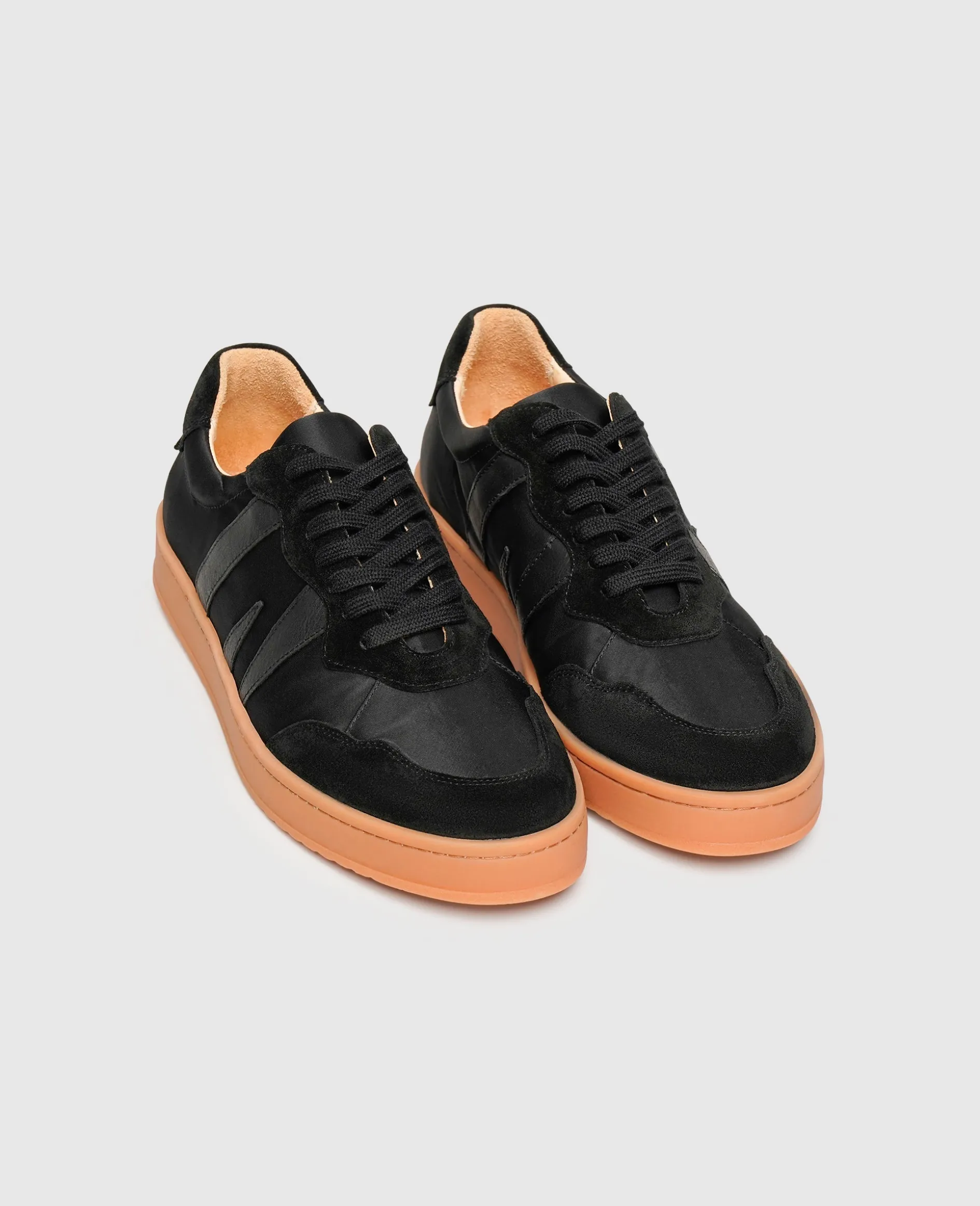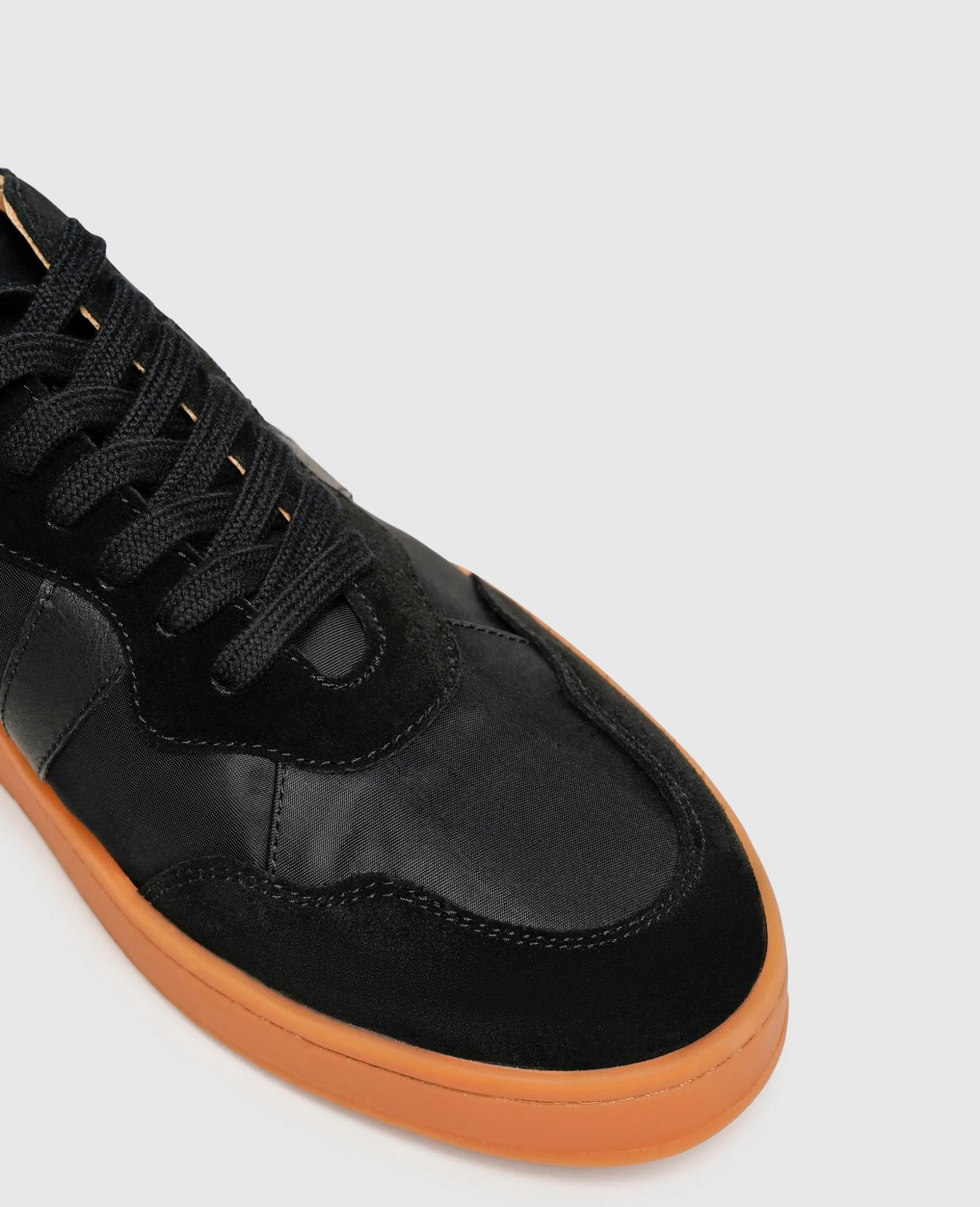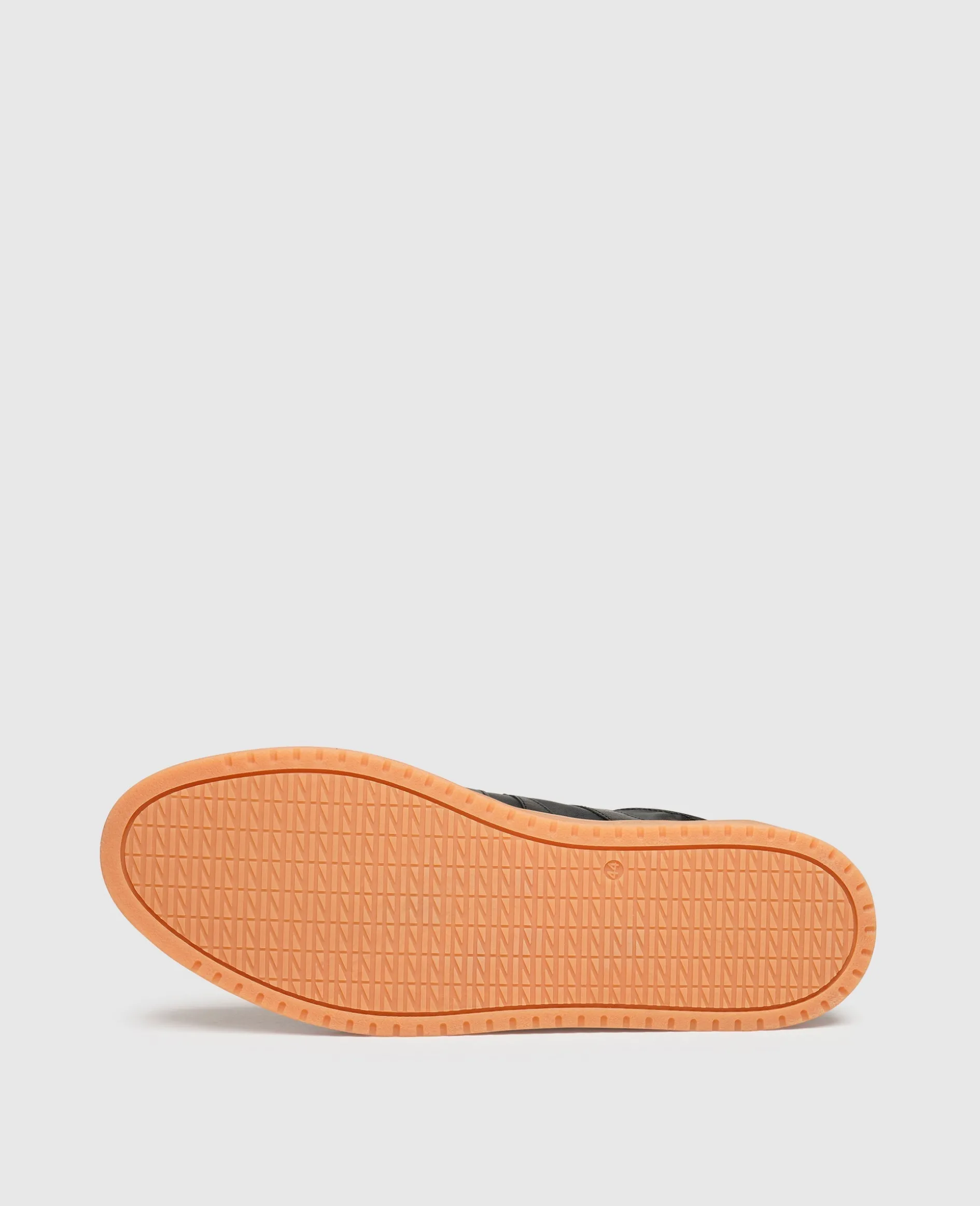 Der Schaft in Kombination mit der farblich abgesetzten Sohle macht aus diesem Retro Draft Sneaker des Berliner Labels N91 ein echtes Statement-Piece. Auf dem Schuhoberteil zeigt sich eine dynamische Materialkombination aus feinstem Glattleder, samtigem Velours sowie funktionalem Mesh. Auf der Innen- und Außenseite komplettiert ein angesagtes Logo den Retro-Look der Sneakers. Die flexible und farblich abgesetzte Gummisohle beschert dem Träger zudem höchsten Komfort.