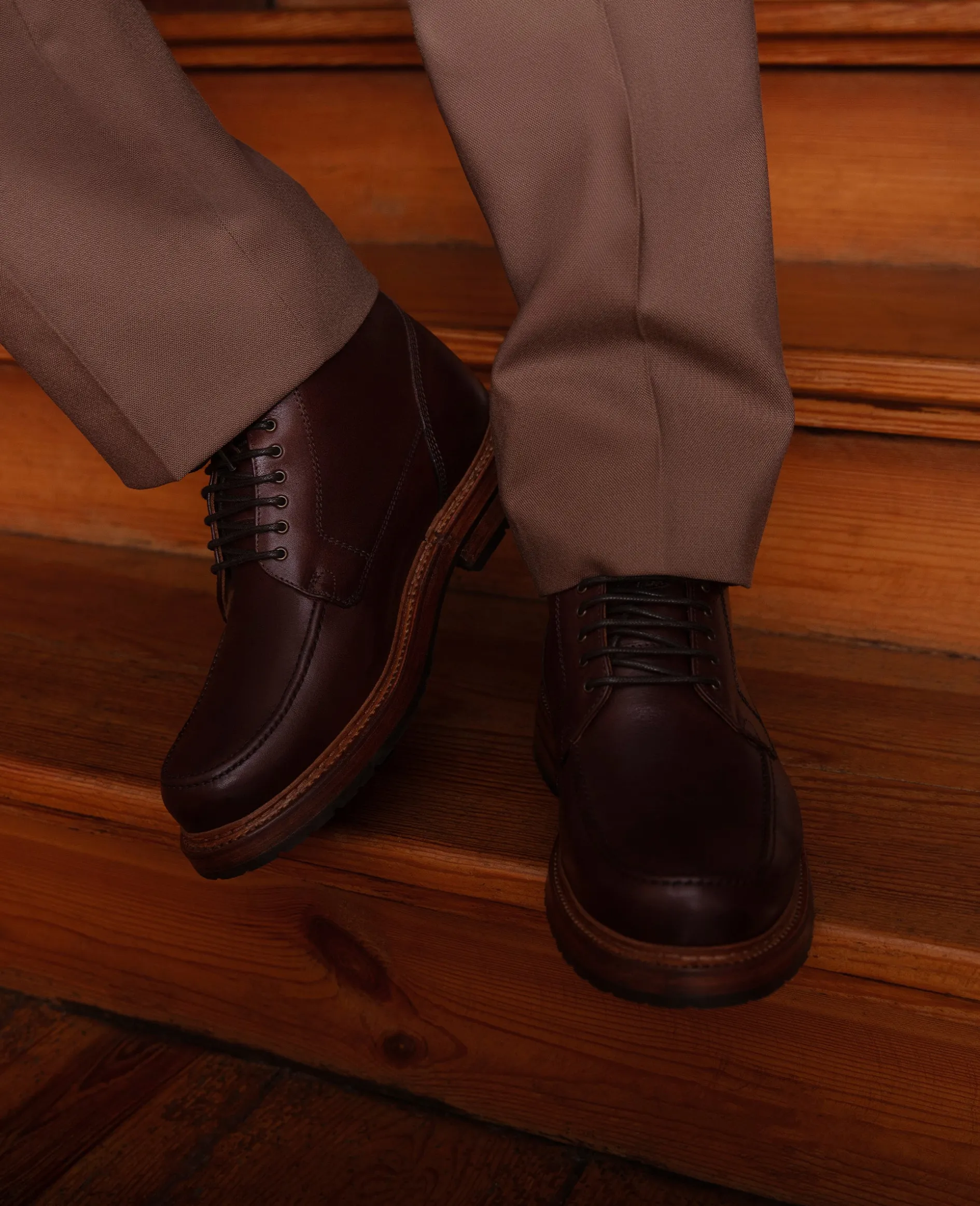 Ein Modell, das in seinem Design an die Arbeitsschuhe von norwegischen Fischern erinnert. Charakteristisch ist seine auf dem Vorderblatt parallel zum Sohlenrand verlaufende Naht nebst Teilung an der Spitze. Für den hohen Spann geeignet