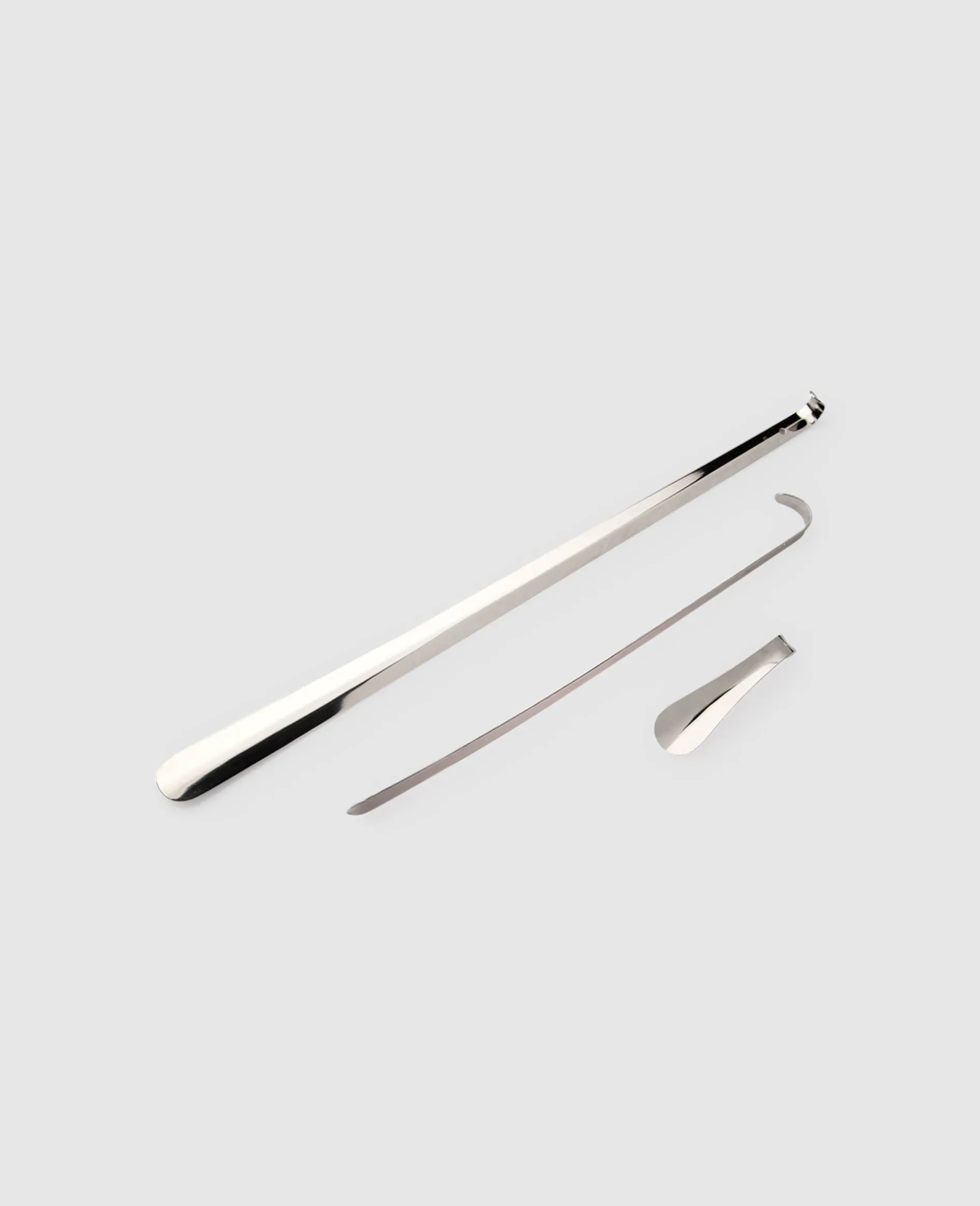 Anmutig glänzend, aus feinstem Edelstahl. Die Schuhlöffel sind in drei Längen erhältlich und garantieren einen leichten Einstieg, ohne dabei zu verbiegen.