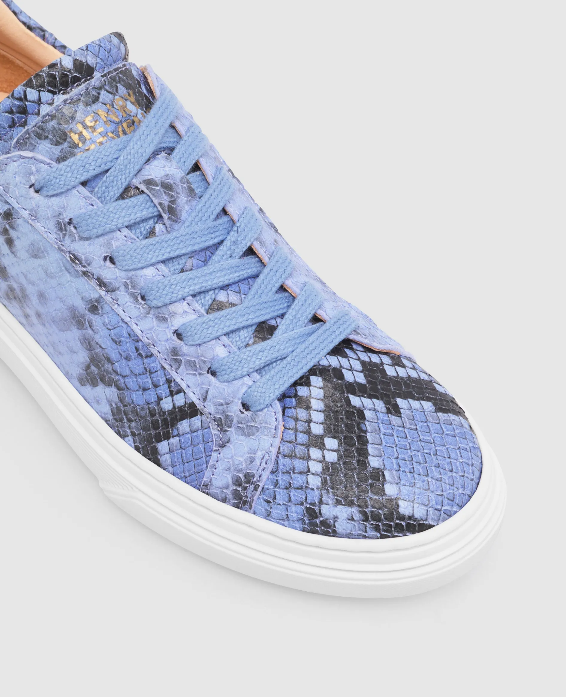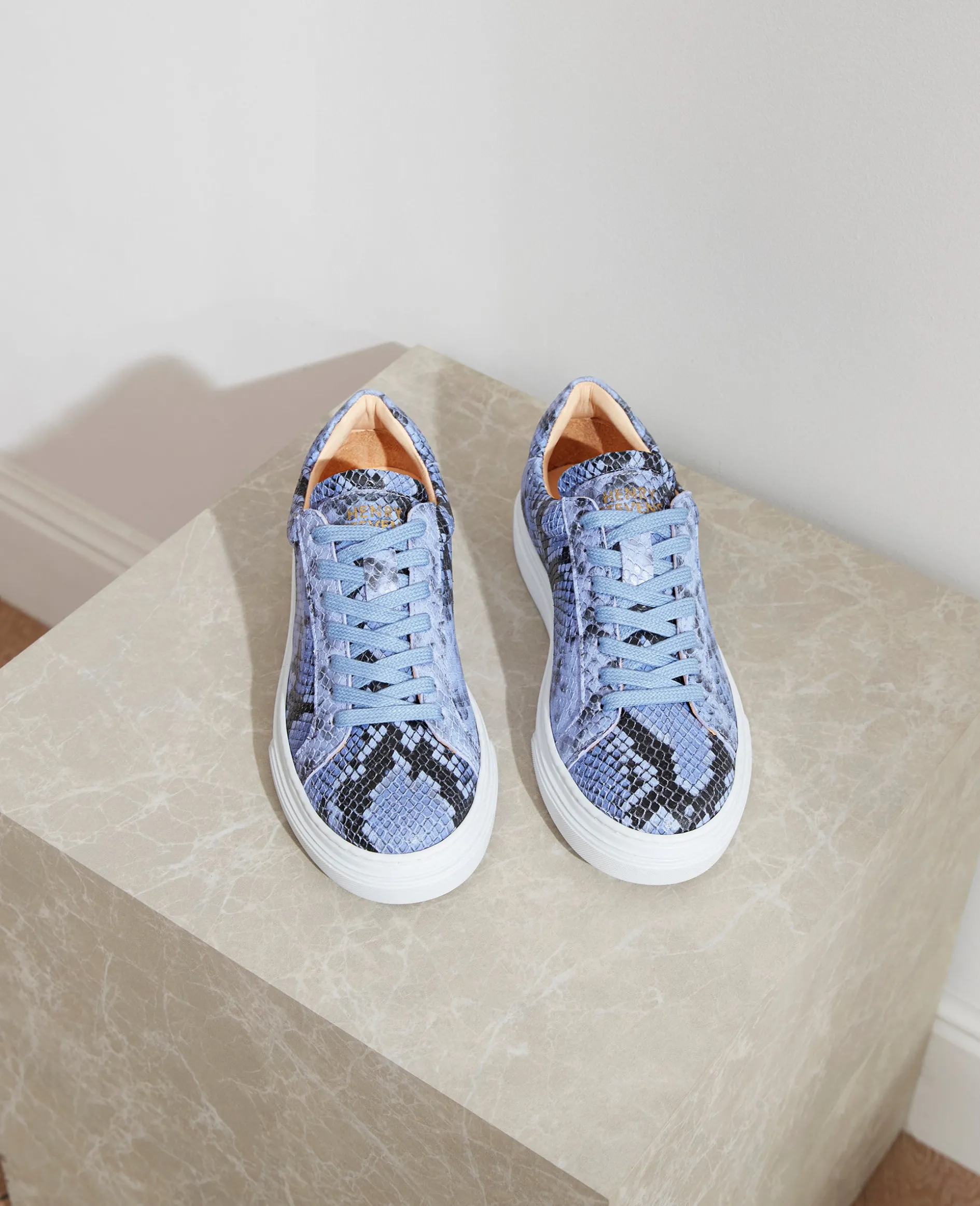 Ein modisches Statement aus Kalbsleder mit edler Schlangen-Prägung, gefüttert mit nachhaltigem Bio-Leder. In einem tiefen, eleganten Lila fängt dieser Sneaker die Magie des Sonnenuntergangs ein – raffiniert und einzigartig. Zeitlose Eleganz mit einem Hauch von Sommerromantik.