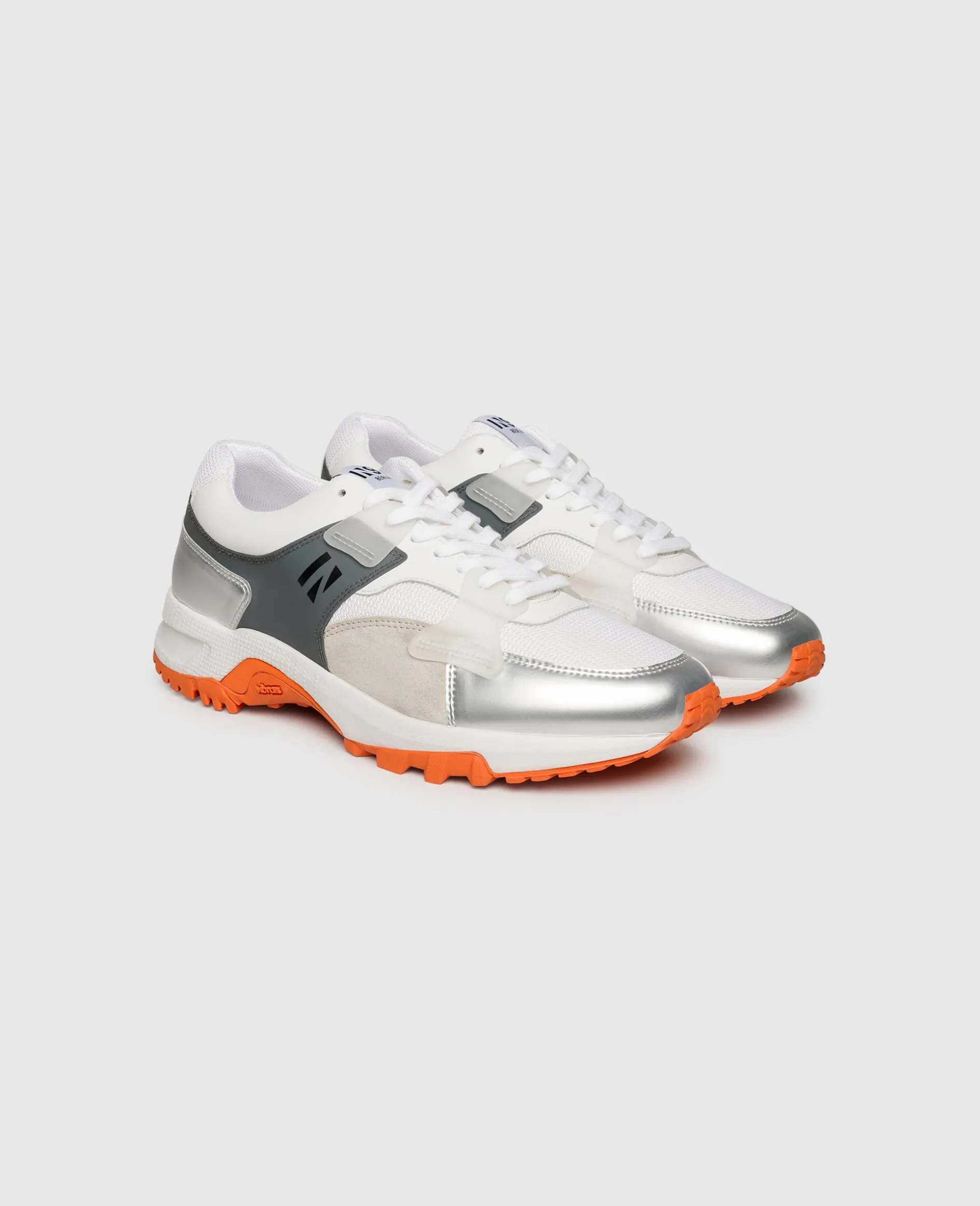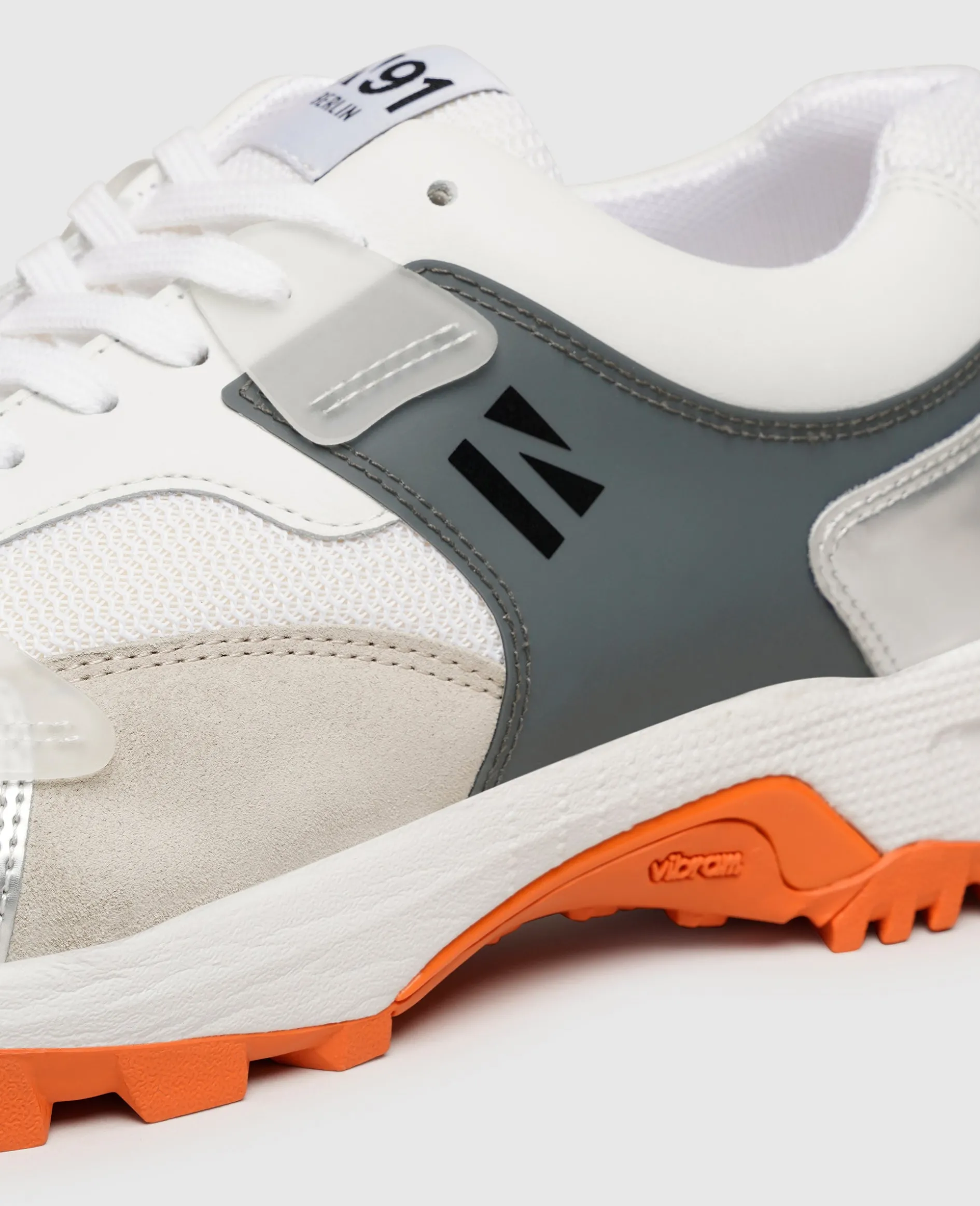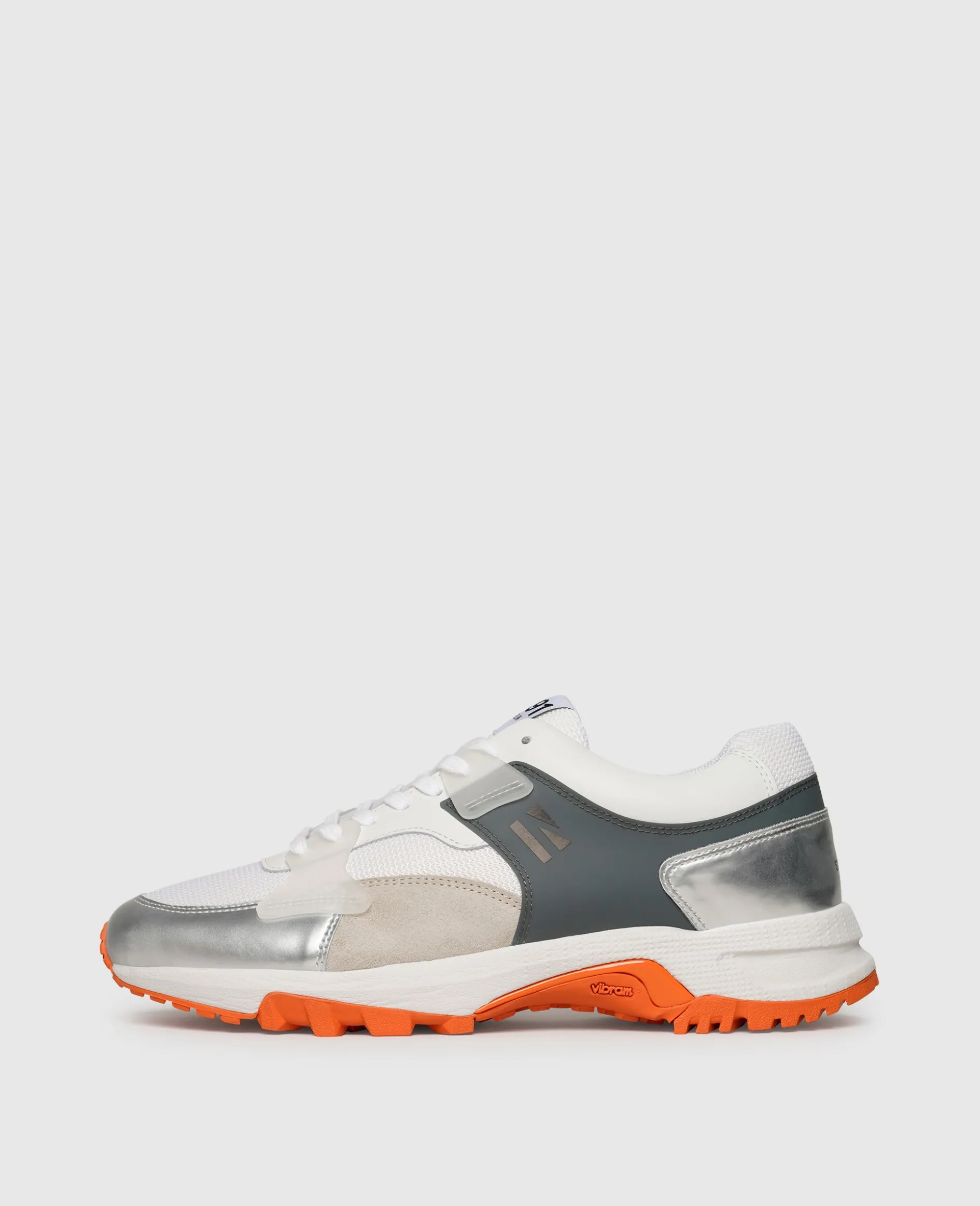 Dieser Runner des Berliner Labels N91 ist ein echter Allrounder, der Ihnen bei sportlichen Aktivitäten ebenso gute Dienste erweist wie als stylischer Freizeitbegleiter. Mit seiner stark profilierten Vibram-Sohle schenkt der Schuh Ihnen bei jedem Schritt ausreichend Halt und das sogar beim Joggen oder Wandern. Die Materialkombination vom Schaft aus Glatt- und Rauleder, Metallic-Partien an der Vorder- und Hinterkappe sowie funktionalem Mesh verleiht eine unverwechselbare Dynamik, während die Innensohle mit Memoryfoam-Effekt jedem Schritt Komfort verleiht.