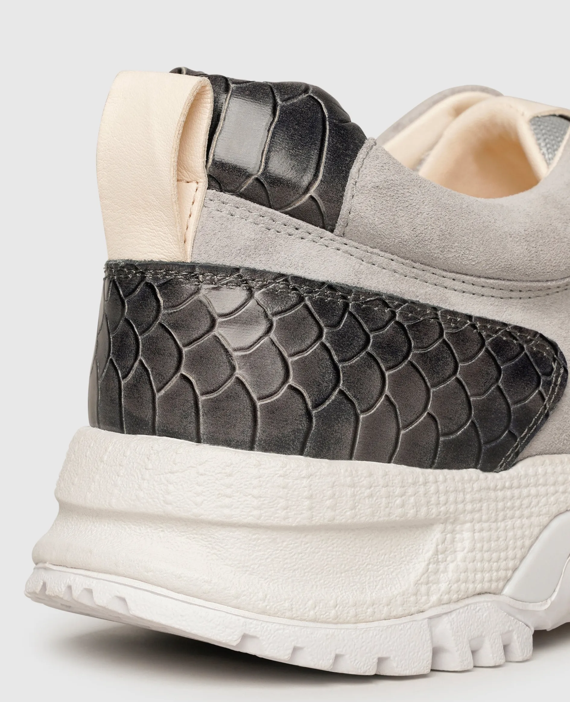 Dieser Runner aus dem Hause N91 ist das perfekte Zusammenspiel aus Leichtigkeit und klassischem Komfort. Im Inneren des in Portugal gefertigten Schuhs sorgen ein atmungsaktives Innenfutter aus Canvas sowie ein komfortables Wechselfußbett mit Memoryfoam für ein rundum komfortables Geherlebnis. Das graue Herrenmodell lässt sich mit einer 7-Loch Schnürung verschließen und die Materialkombination aus samtigem Kalbsvelours, robustem Textil sowie geprägtem Kalbsleder verleiht ihm eine unverwechselbare Dynamik. Durch die trittsichere Laufsohle aus Gummi muss man auch bei langen Fußwegen nicht an Komfort einbüßen. Dieser Schnürer erweist bei sportlichen Aktivitäten ebenso gute Dienste wie als stylischer Freizeitbegleiter.