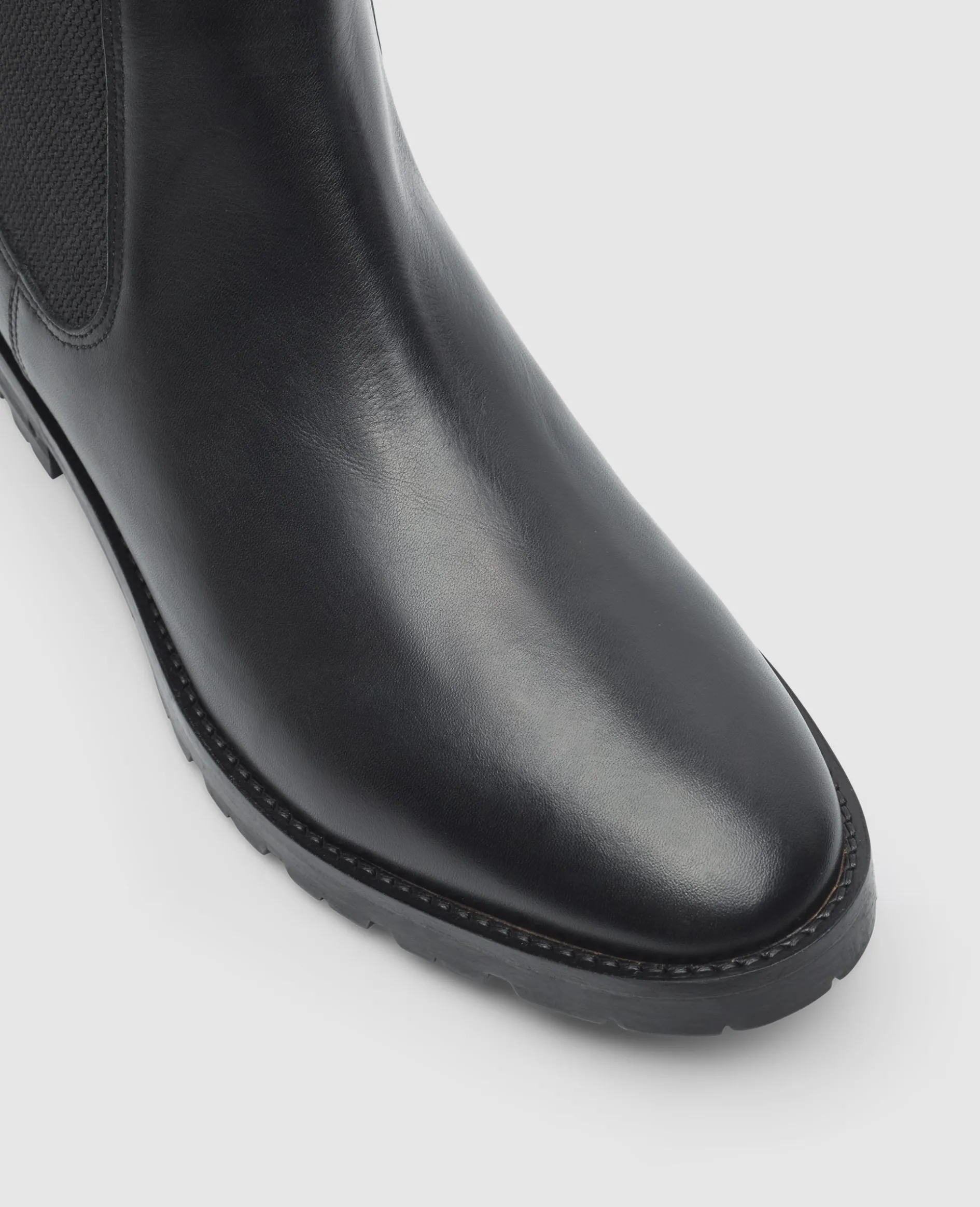 Ein Klassiker unter den Herrenstiefeln präsentiert Henry Stevens mit diesem Chelsea Boot in Schwarz als echtes Leichtgewicht mit besten Komforteigenschaften. Der Schaft aus glattem Kalbsleder wird um die definierenden Elastikeinsätze ergänzt, welche dem Träger einen besonders leichten Einstieg garantieren. Für maximalen Komfort sorgt das Lederfußbett mit integriertem Memoryfoam, das jeden Schritt zum Vergnügen macht.