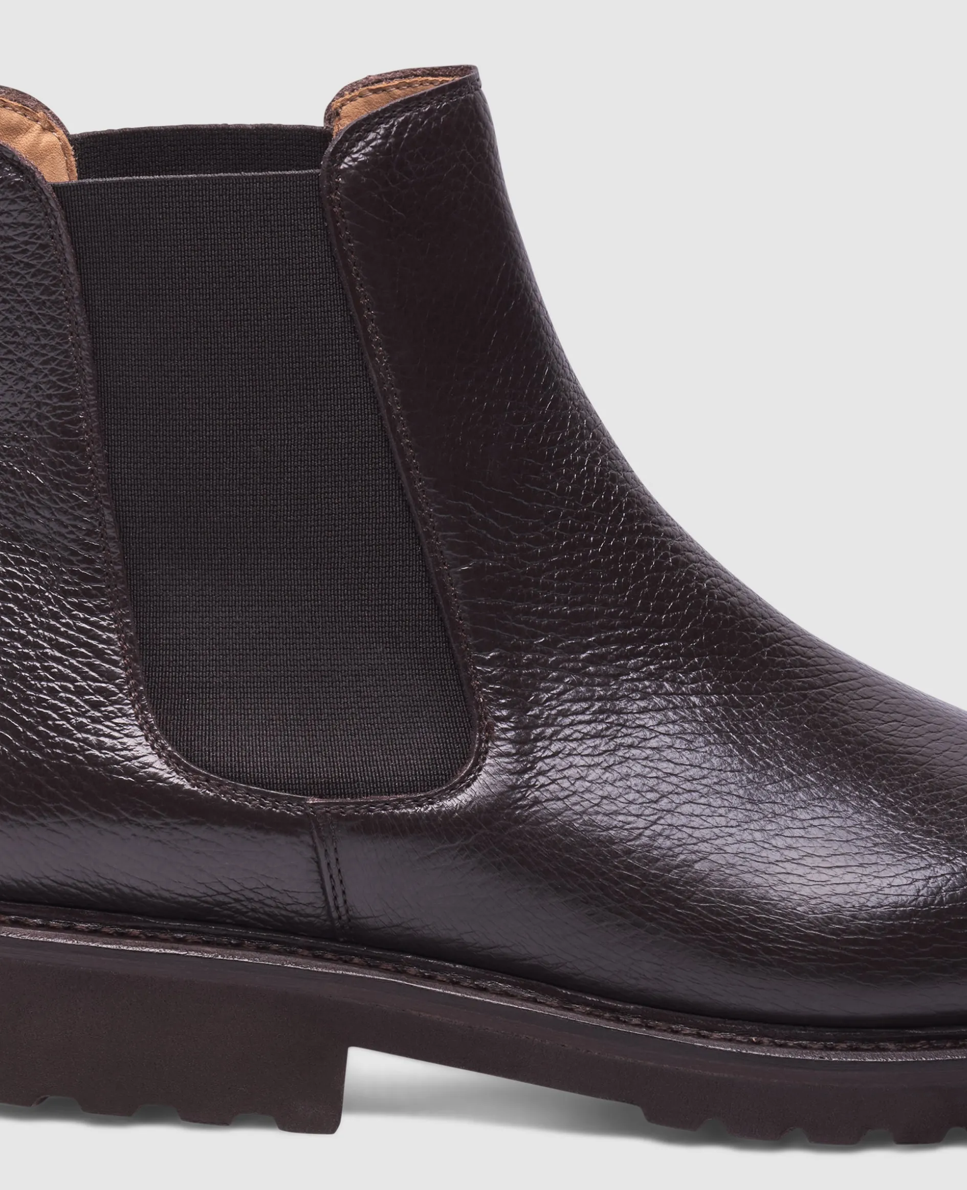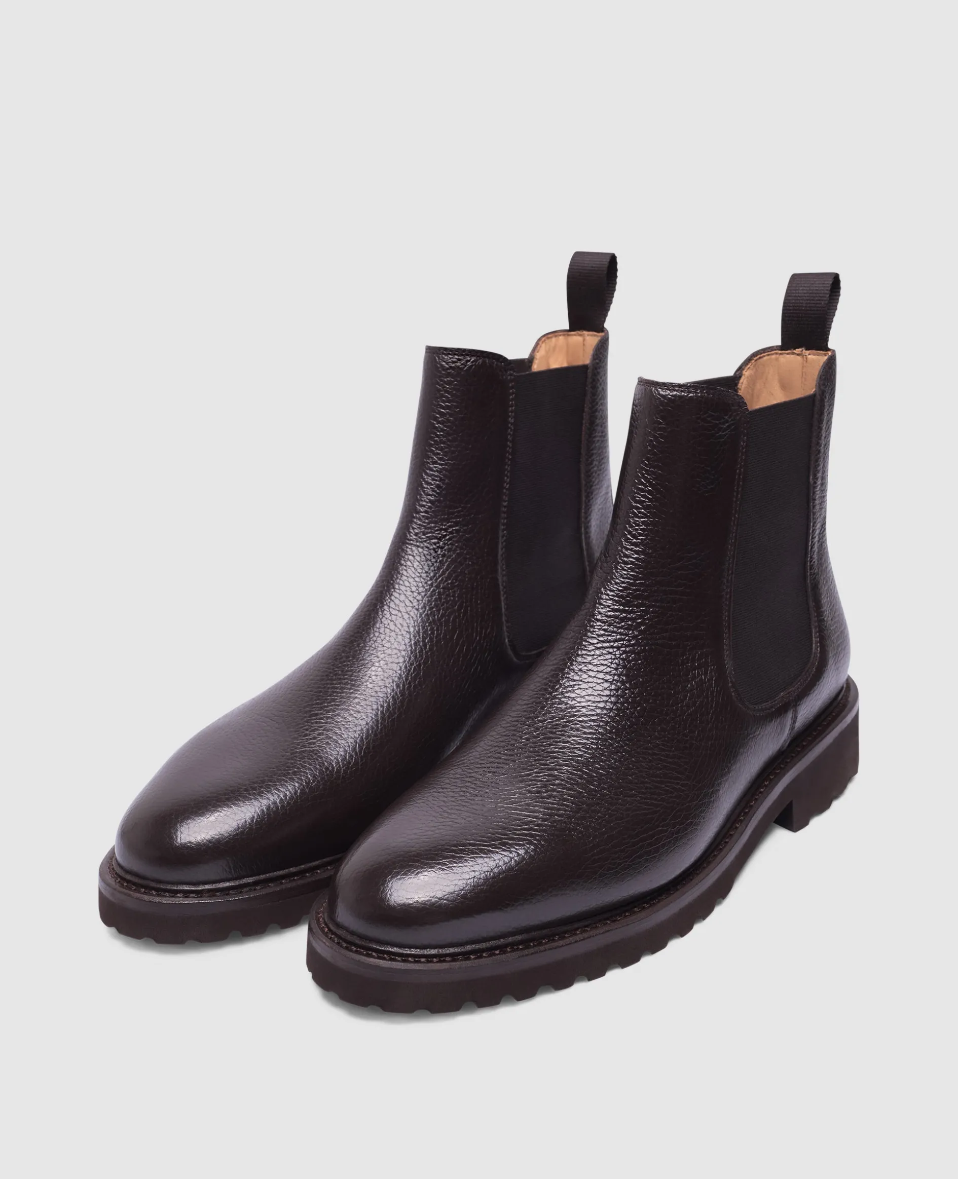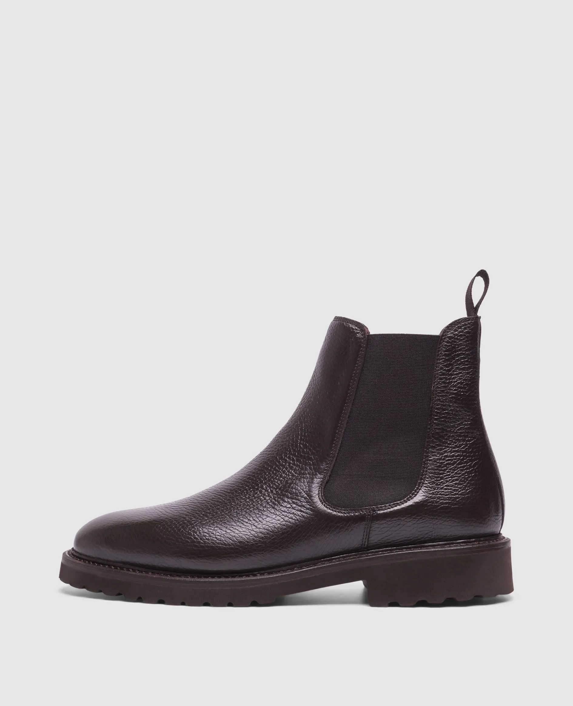 Der handgemachte Winston Chelsea Boot in Dunkelbraun ist aus geprägtem Kalbsleder und einem Innenmaterial aus vegetabil gegerbtem Leder gefertigt. Durch seine rahmengenähte Machart und die ultraleichte Gummisohle bietet er höchsten Komfort. Hergestellt in Spanien.