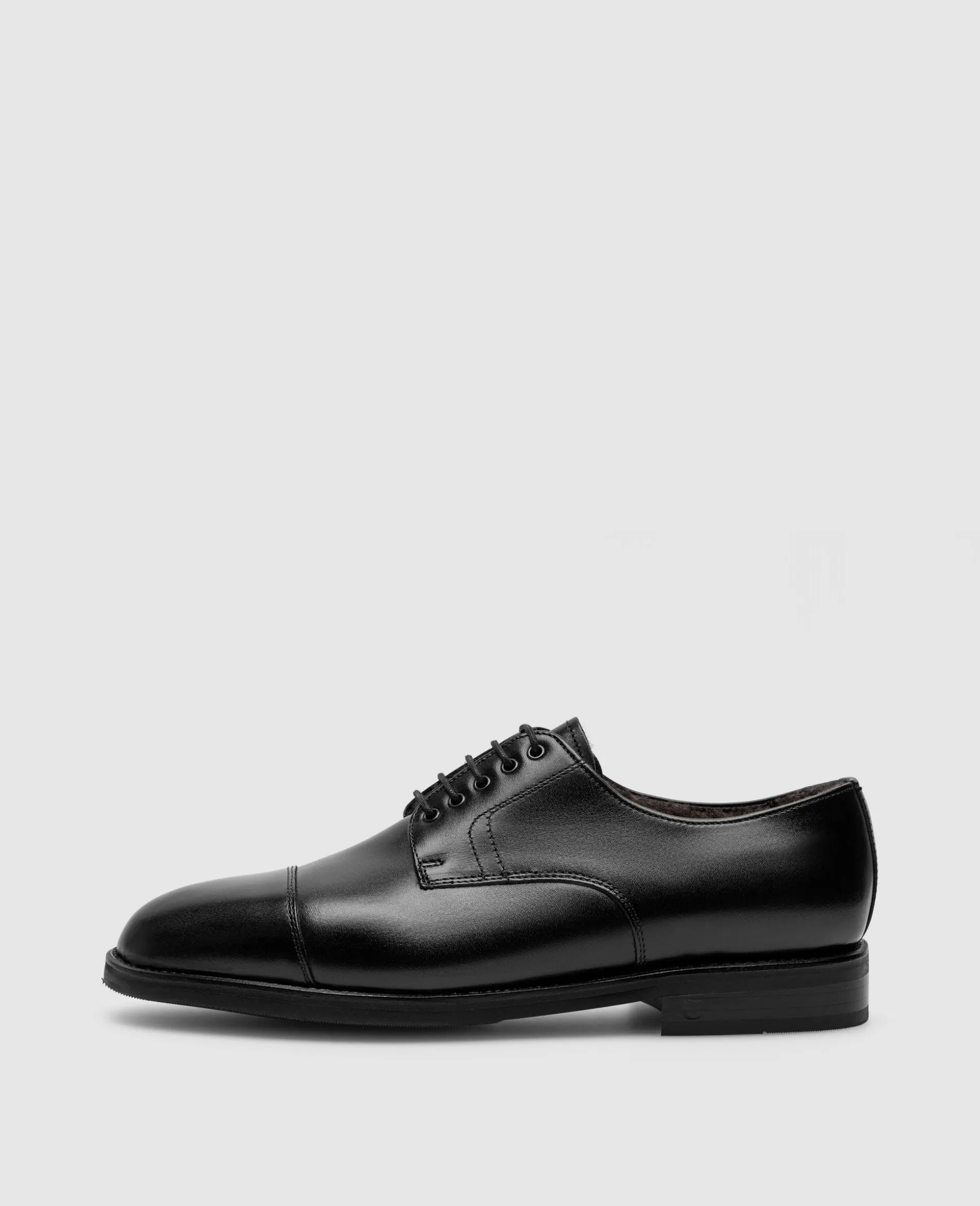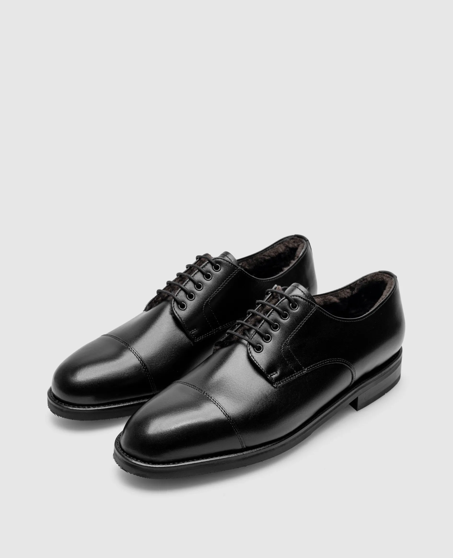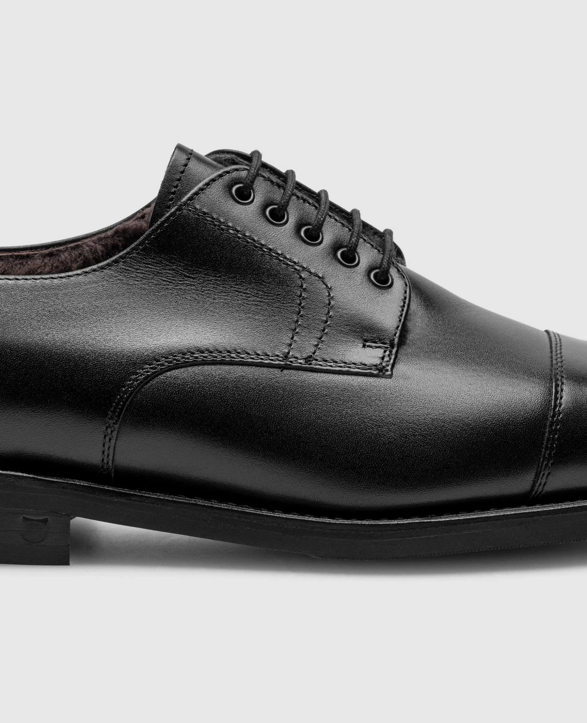 Der Winston Captoe Derby in Schwarz ist aus Kalbsleder gefertigt und bietet ein Innenmaterial aus luxuriösem Lammfell. In Kombination mit der rahmengenähten Profil-Gummisohle bietet dieser Klassiker Wetterbeständigkeit und Komfort im Winter. Hergestellt in Spanien.