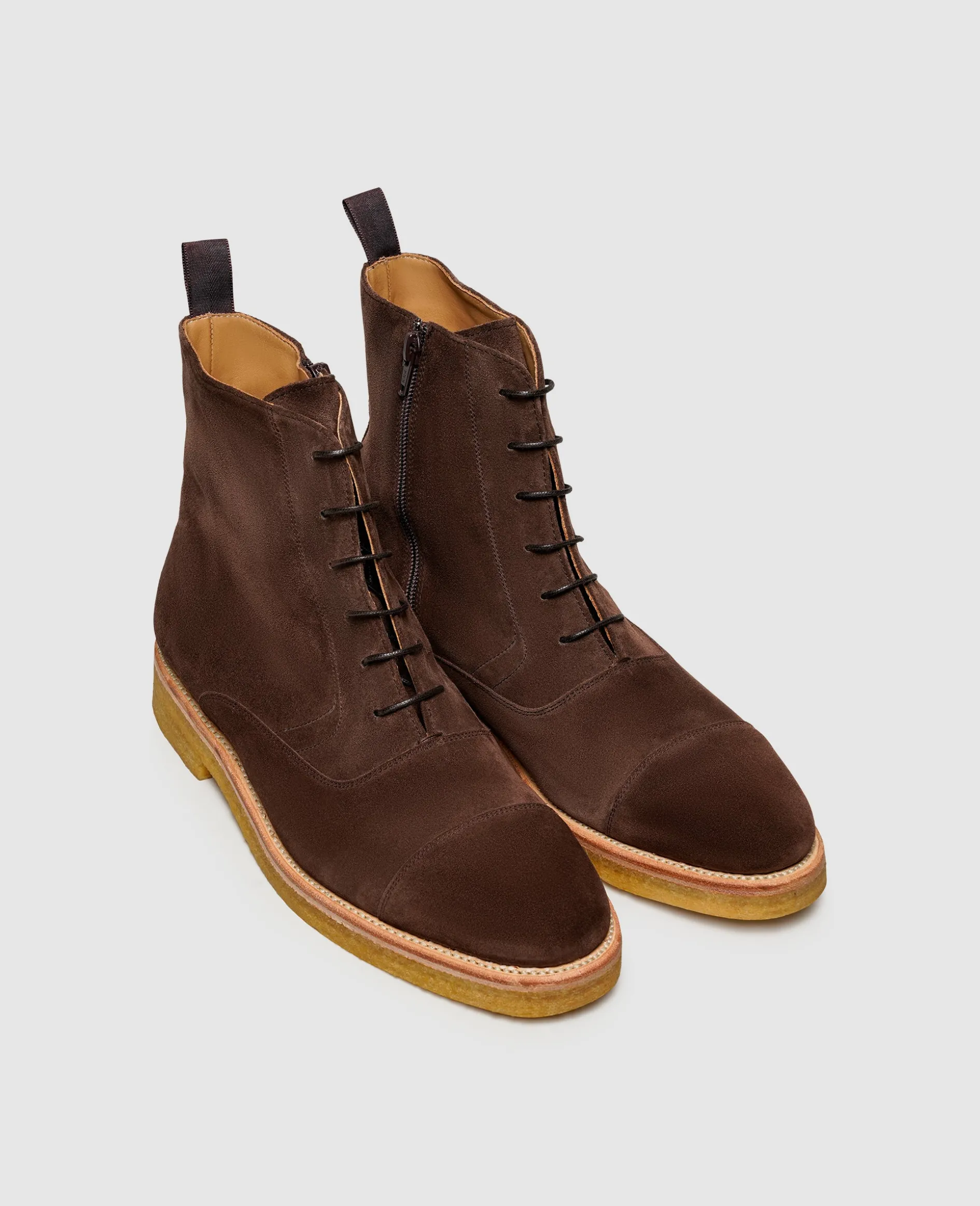 Ein Muss für jede abwechslungsreiche Garderobe sind Schnürboots aus Rauleder. Die handgefertigten Herren-Boots von Henry Stevens kombinieren traditionelles Design mit samtigem Velours-Leder zu einem vielseitig einsetzbaren Allrounder. Die Vorteile der rahmengenähten Machart versprechen eine anspruchsvolle Optik, höchsten Komfort und Langlebigkeit – die stabile Kreppsohle und der seitliche Zipper ergänzen die hervorragenden Trageeigenschaften.