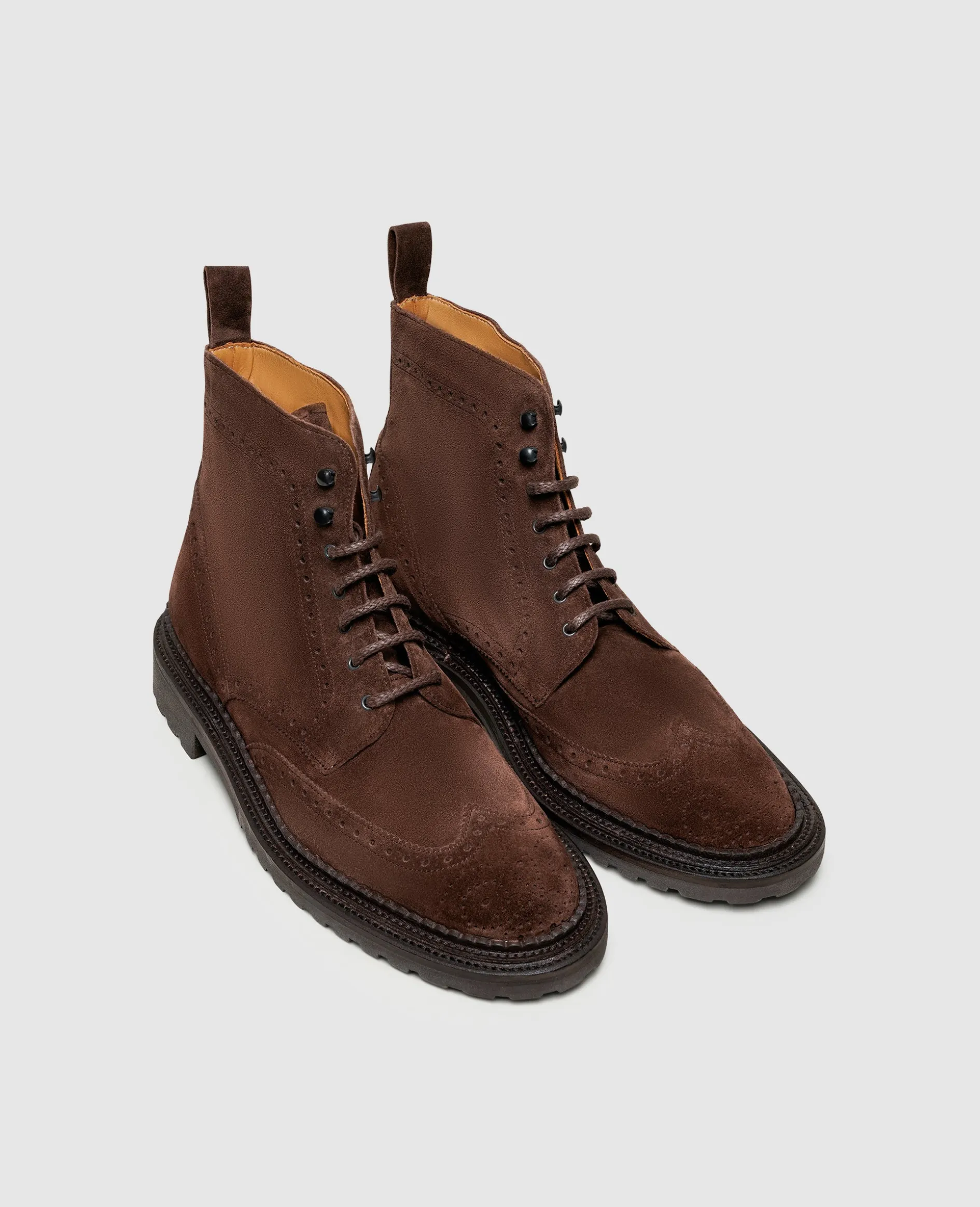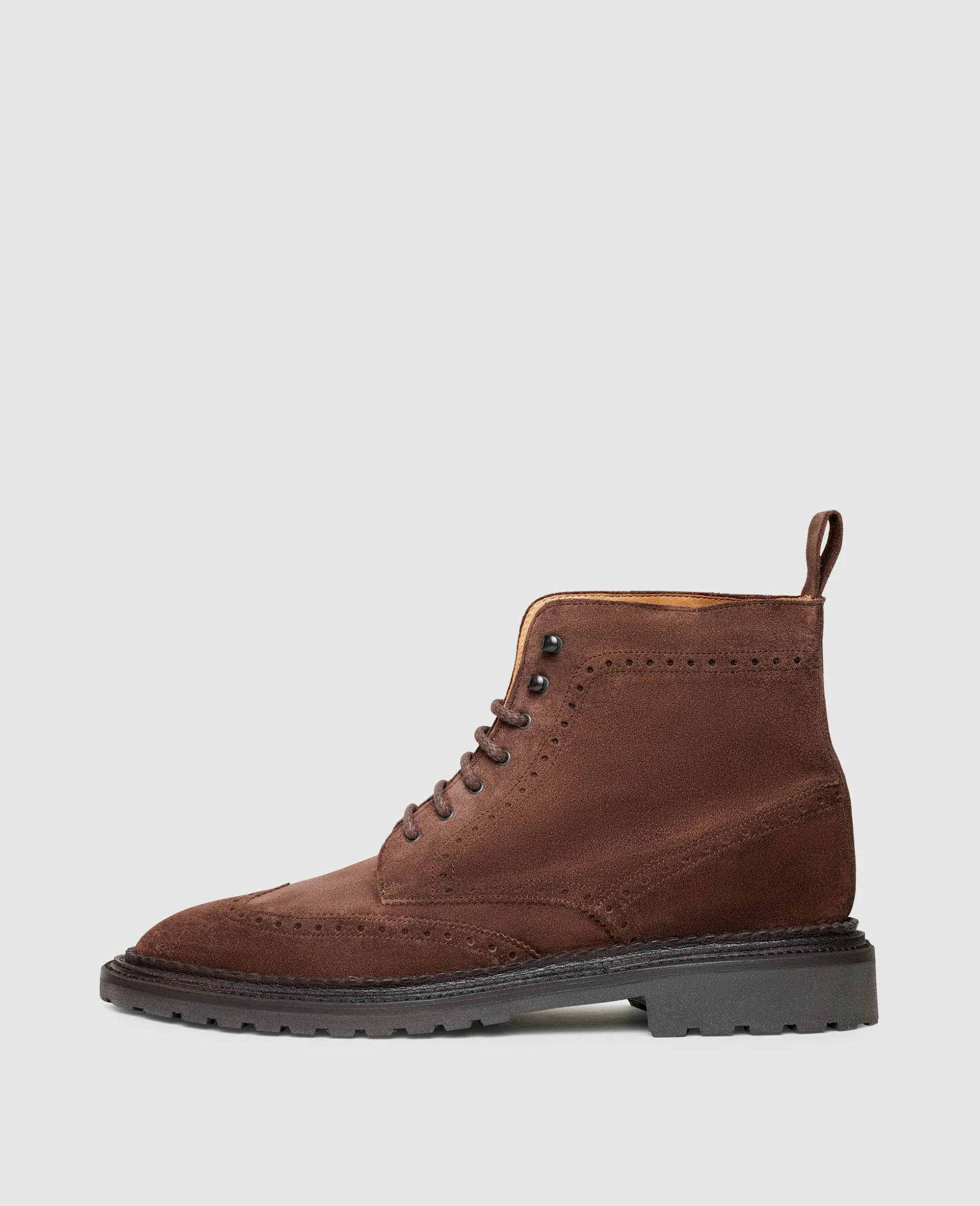 Mit einem außergewöhnlichen Detail verwandelt dieser rahmengenähte und handgefertigte Full-Brogue Derby Boot für Herren von Henry Stevens vielfältige Smart Casual Looks in etwas Besonderes. Ein aufwendiger Dreifachrahmen, auch als Triple Welt bekannt, verleiht dem opulent verzierten Herrenstiefel eine markante Souveränität. Das samtige Velours-Leder sorgt für Dynamik und findet mit der stabilen Gummiprofilsohle einen wetterfesten Abschluss.