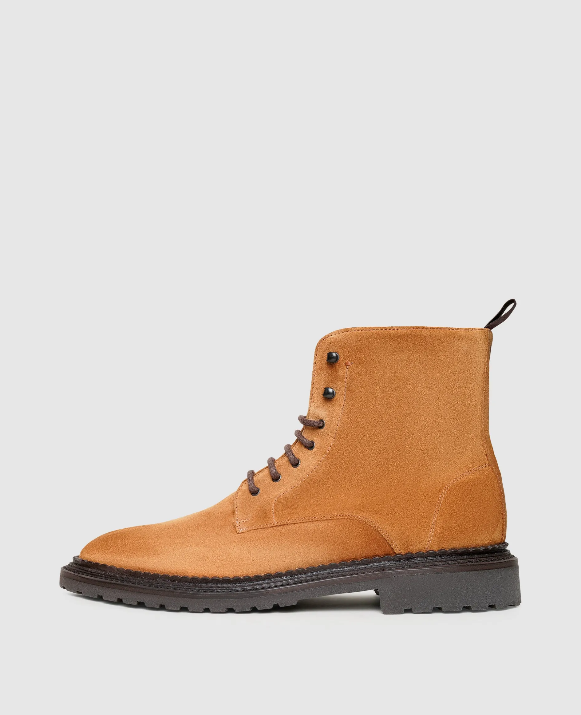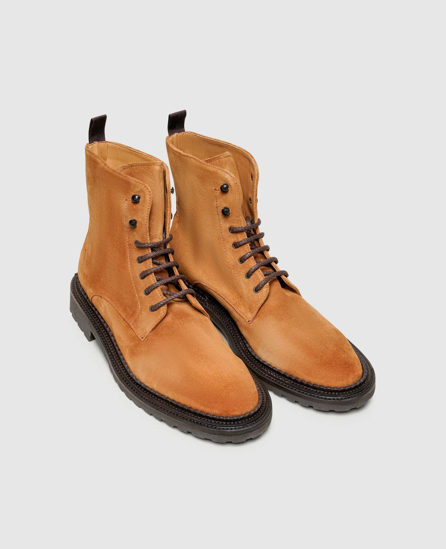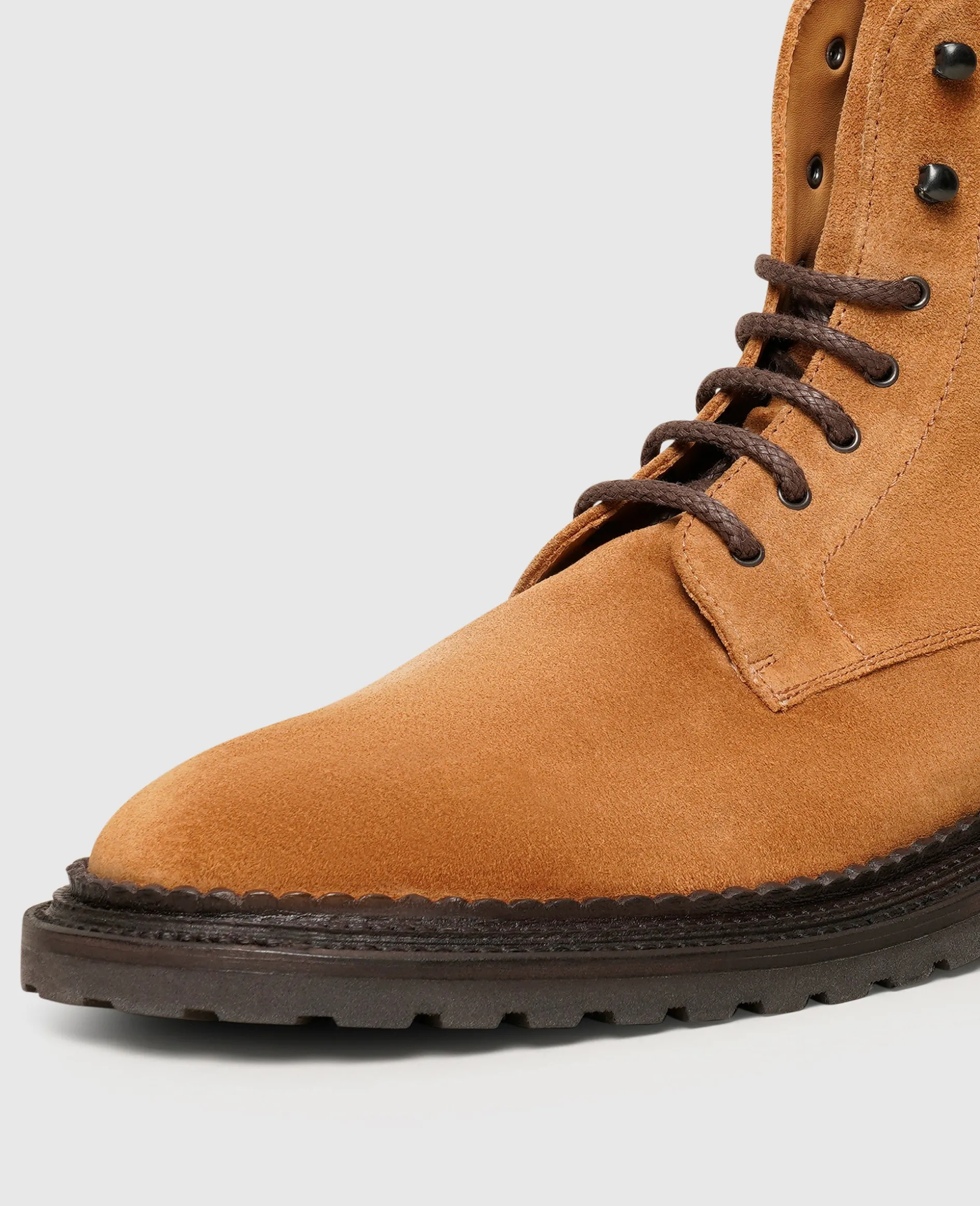 Dynamisch, selbstbewusst und anspruchsvoll präsentieren sich die handgefertigten Schnürboots für Herren aus der Kollektion von Henry Stevens. Ein aufwendiger Dreifachrahmen und pflegeleichtes Velours-Leder bestimmen die markante Erscheinung – eine stabile Gummiprofilsohle ergänzt den markanten Charme und sorgt für einen sicheren Stand bei Nässe und Glätte. Dank der rahmengenähten Machart überzeugt der edle Herrenstiefel mit Komfort und Langlebigkeit.