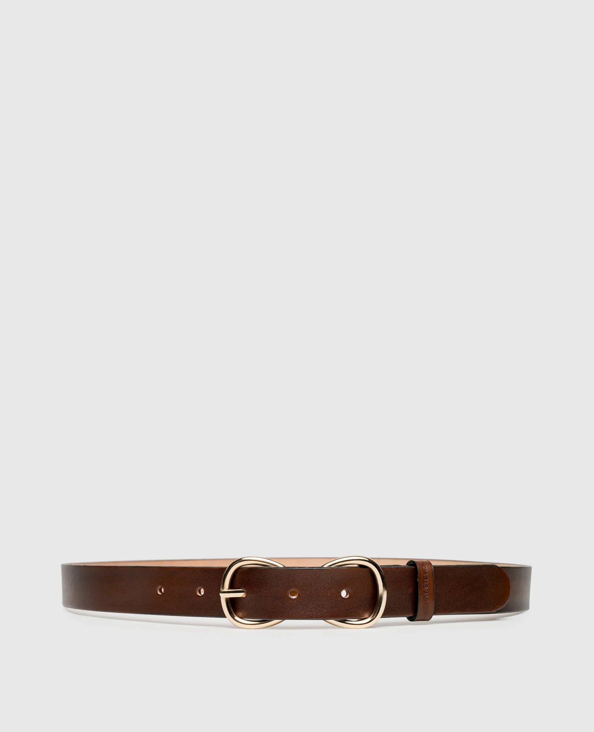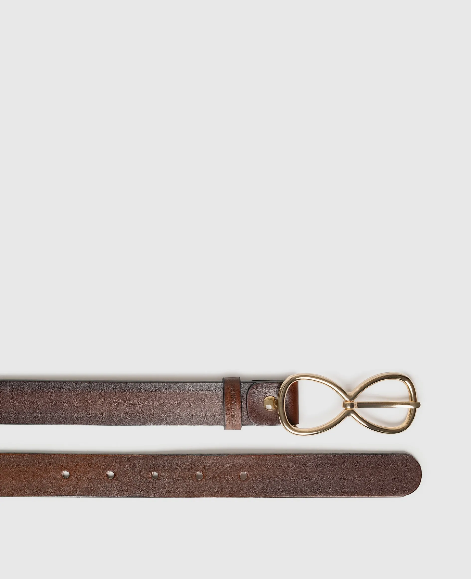 Mit einer elegant geschwungenen Doppelschnalle in Gold verleiht dieser handgefertigte Damengürtel von Henry Stevens jedem Outfit einen besonderen Akzent. Das erlesene Glattleder präsentiert auf der Außenseite faszinierende Hell-Dunkel-Schattierungen – die Innenseite des zweilagig vernähten Vollleder-Gürtels besteht aus naturbelassenem Kalbsleder. Mit einer Gürtelbreite von 25 mm erweist sich der Damengürtel als filigranes Accessoire.