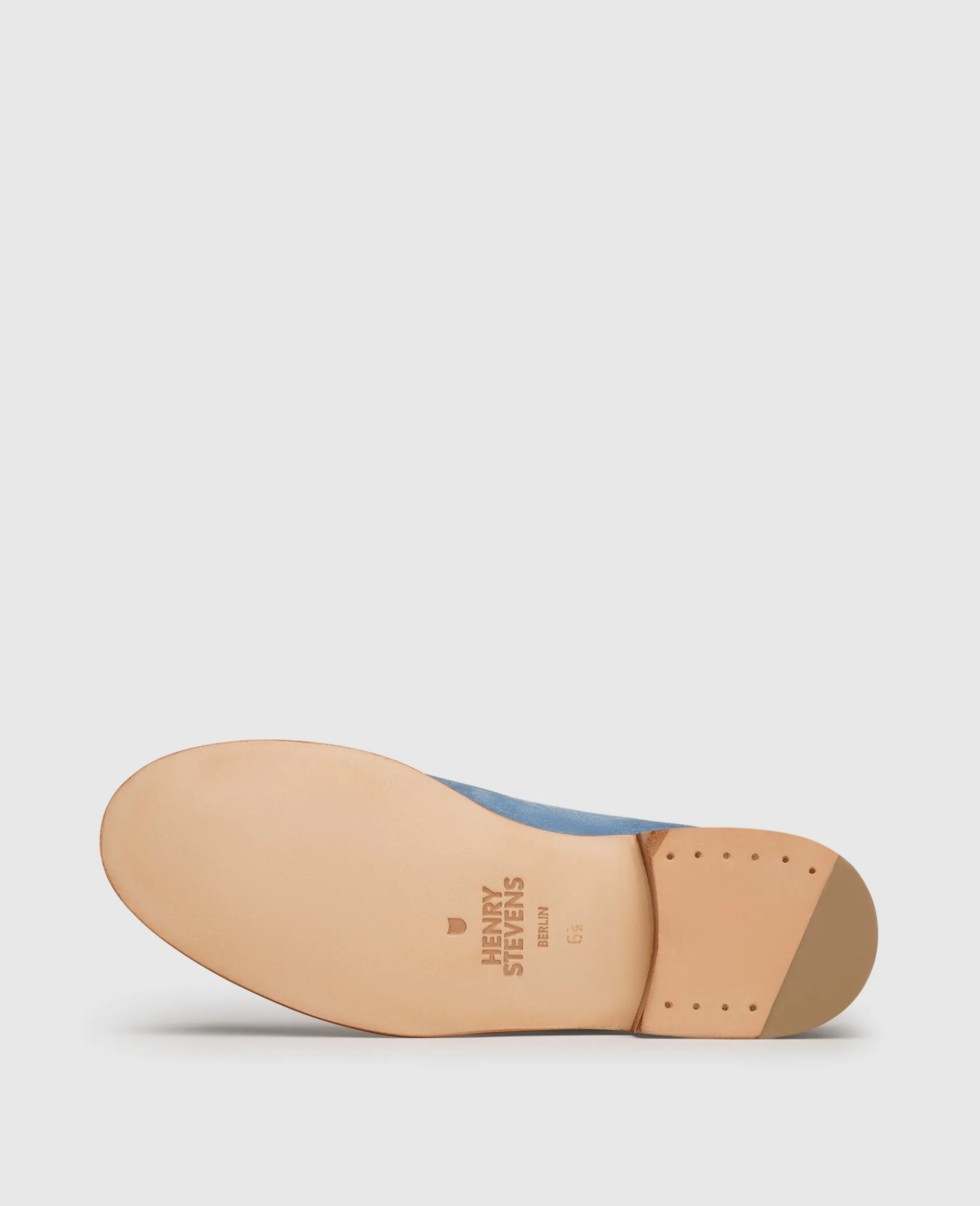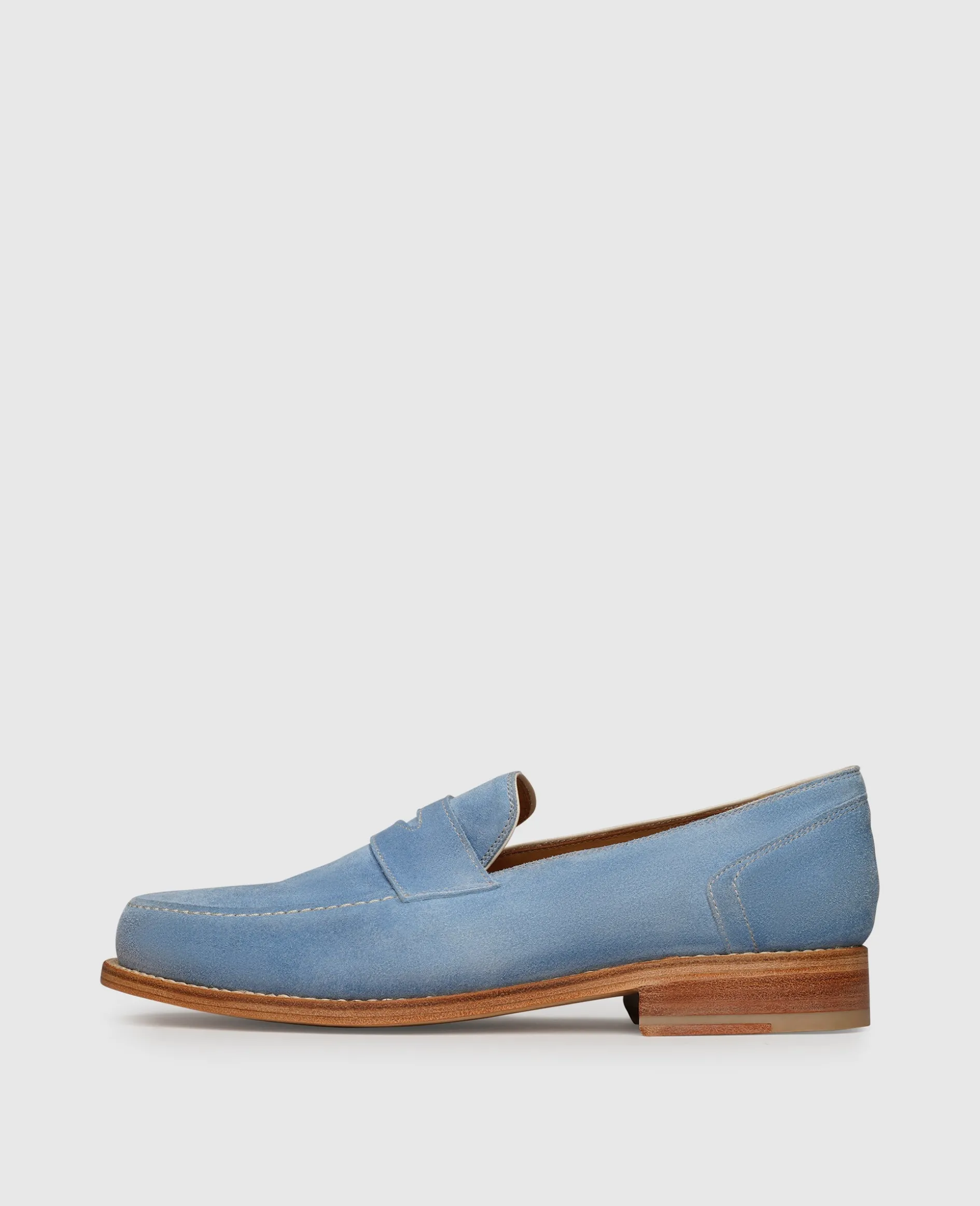 Die unverwechselbare Anmutung dieser Penny Loafer zieht jede Betrachterin in ihren Bann. Die feminine Silhouette der sanft gerundeten Leistenform erhält eine zusätzliche Akzentuierung durch das samtige Velours, welches den gesamten Schaft sowie die Applikation quer über dem Ristbogen ziert. Die moderne Farbgebung der Penny Loafer garantiert zudem die Komplettierung eines jeden Freizeit- oder Businesslooks.