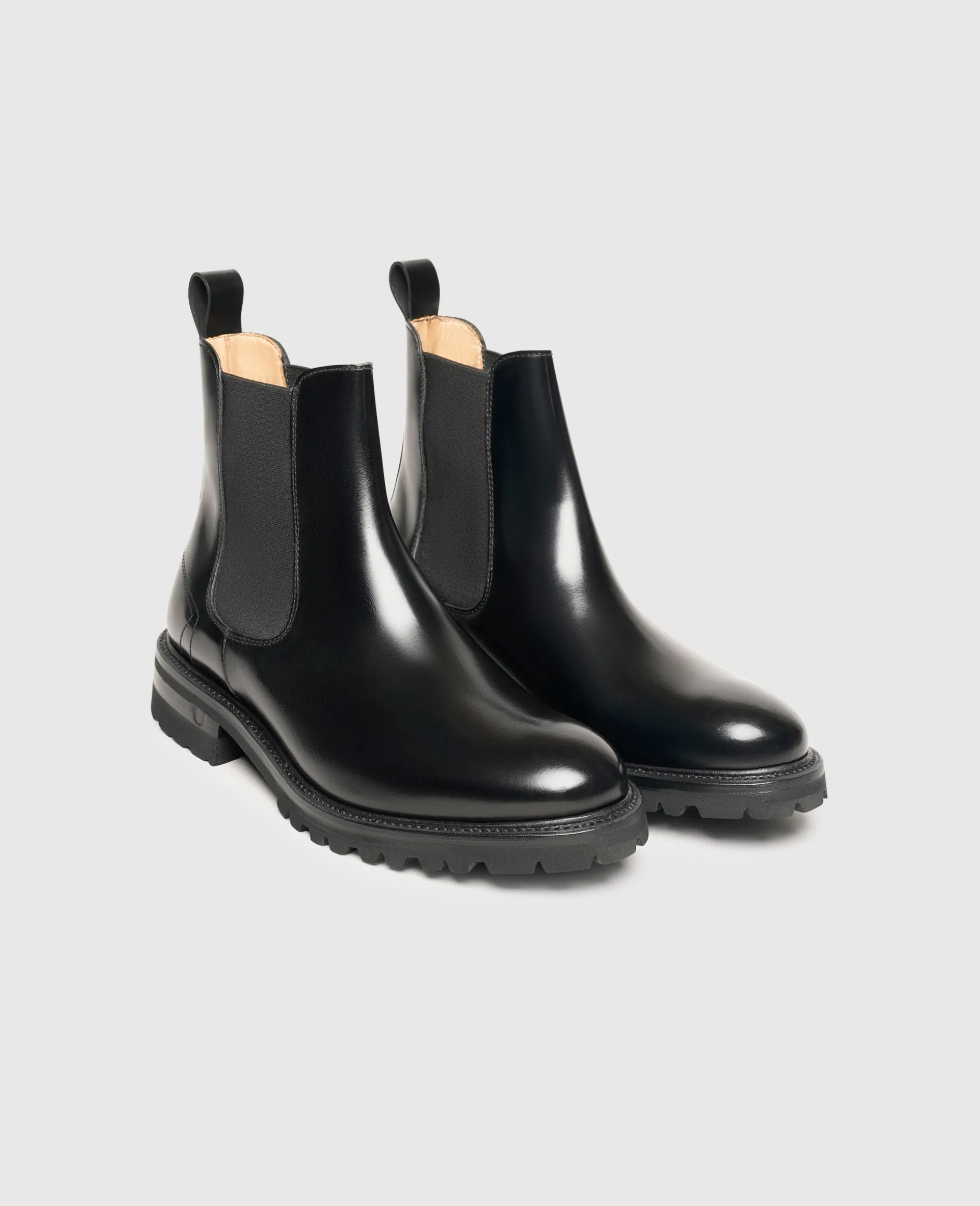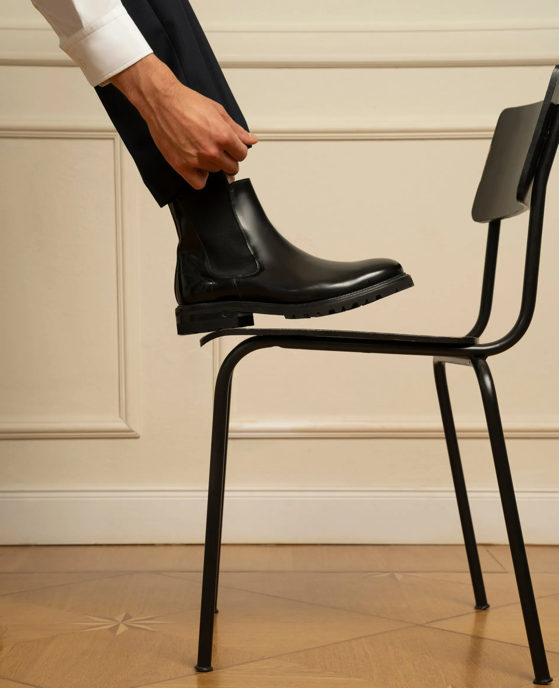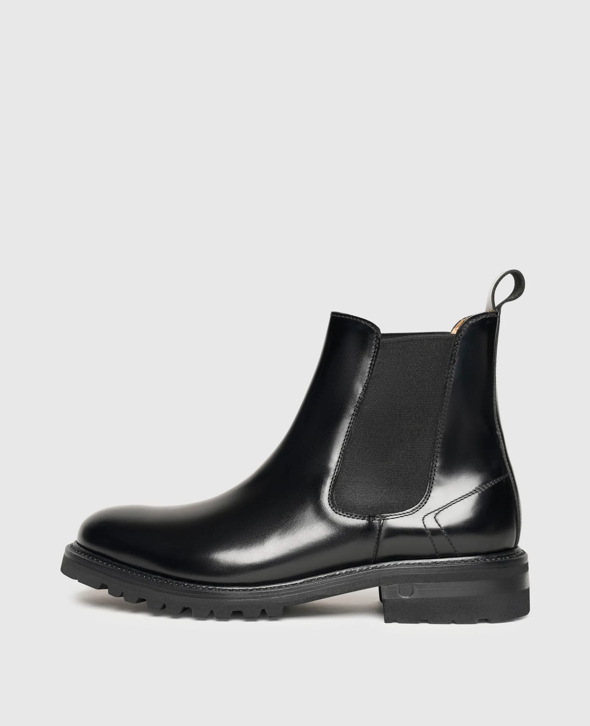 Charakteristisch für den Chelsea Boot sind eine Zuglasche und die beidseitig vorhandenen Elastik-Einsätze, die vor allem das An- und Ausziehen vereinfachen. Das schlichte Design verleiht dem Chelsea Boot einen avantgardistischen Touch.