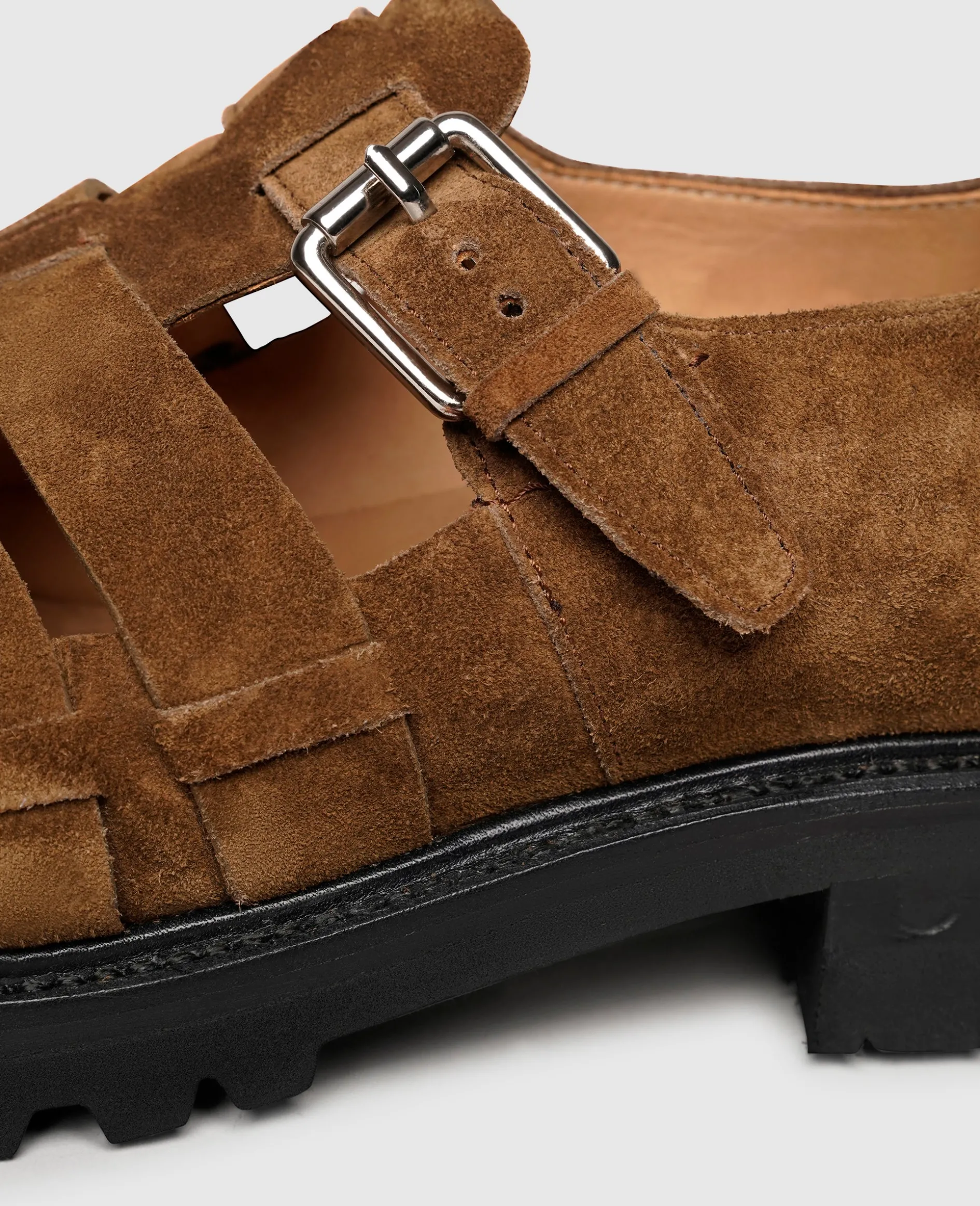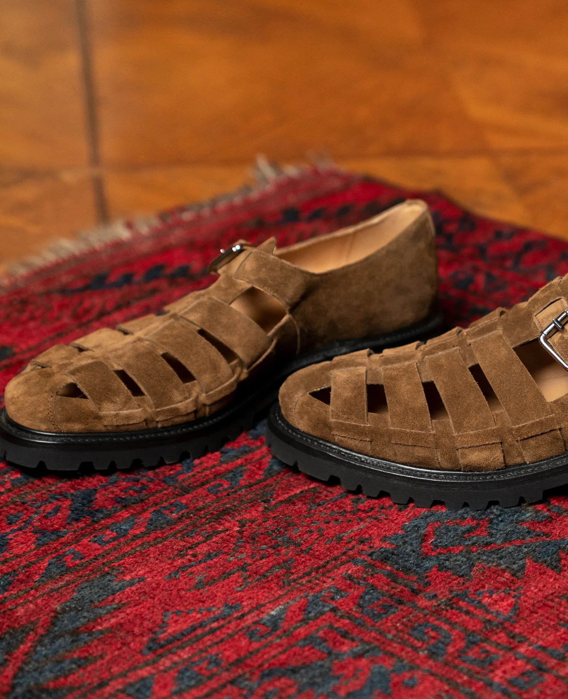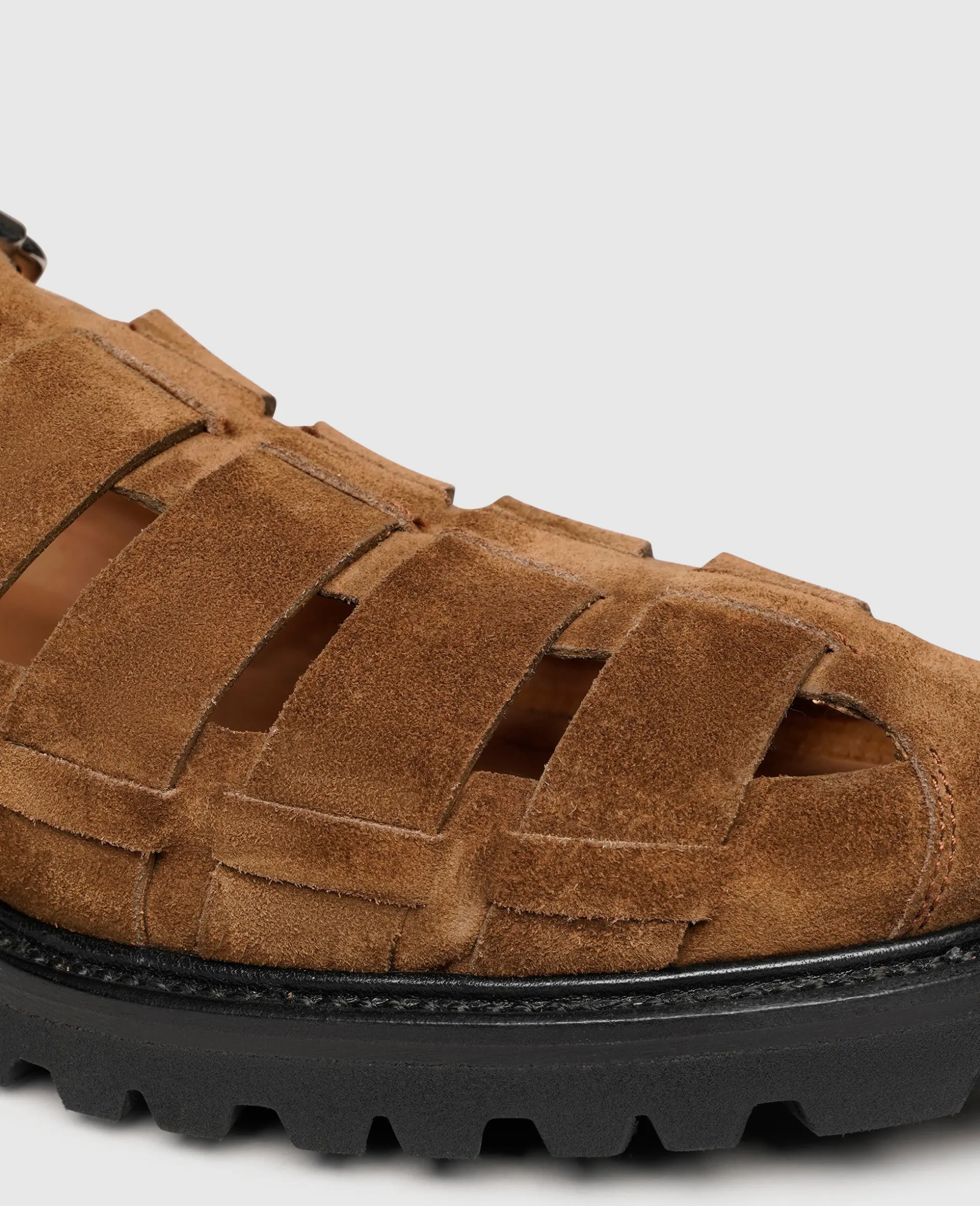 Ein angesagter und vielseitiger Schuh für die sommerlichen Tage im Jahr, das ist diese rahmengenähte Sandale von Henry Stevens. Im Schuhinneren des in Spanien handgefertigten Schuhs unterstützen das vegetabil gegerbte Innenfutter und das gemütliche Fußbett aus Leder ein Tragegefühl auf höchstem Niveau. Die Riemen des braunen Herrenmodells sind aus rauem und samtigem Kalbsvelours und die Weite reguliert sich durch eine Schnalle. Ausgestattet mit einer rutschfesten Laufsohle aus Gummi gehören müde Füße selbst nach einem langen und laufintensiven Tag der Vergangenheit an. Lässig und vielseitig kombinierbar überzeugen diese Freizeitsandalen!