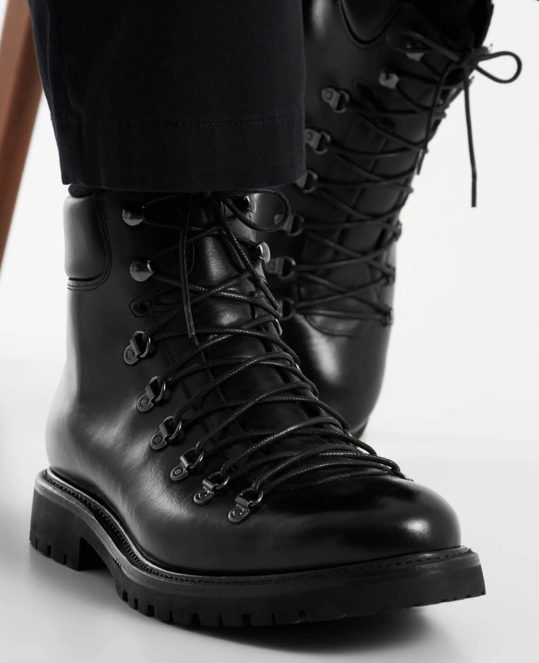 Der Barkley Hiking Boot in Schwarz ist handgefertigt und rahmengenäht mit einem Innenmaterial aus Lammfell. Durch das Obermaterial aus gefettetem Kalbsleder und die robuste Gummisohle mit Profil bietet er optimalen Tragekomfort und Wetterbeständigkeit. Hergestellt in Spanien.