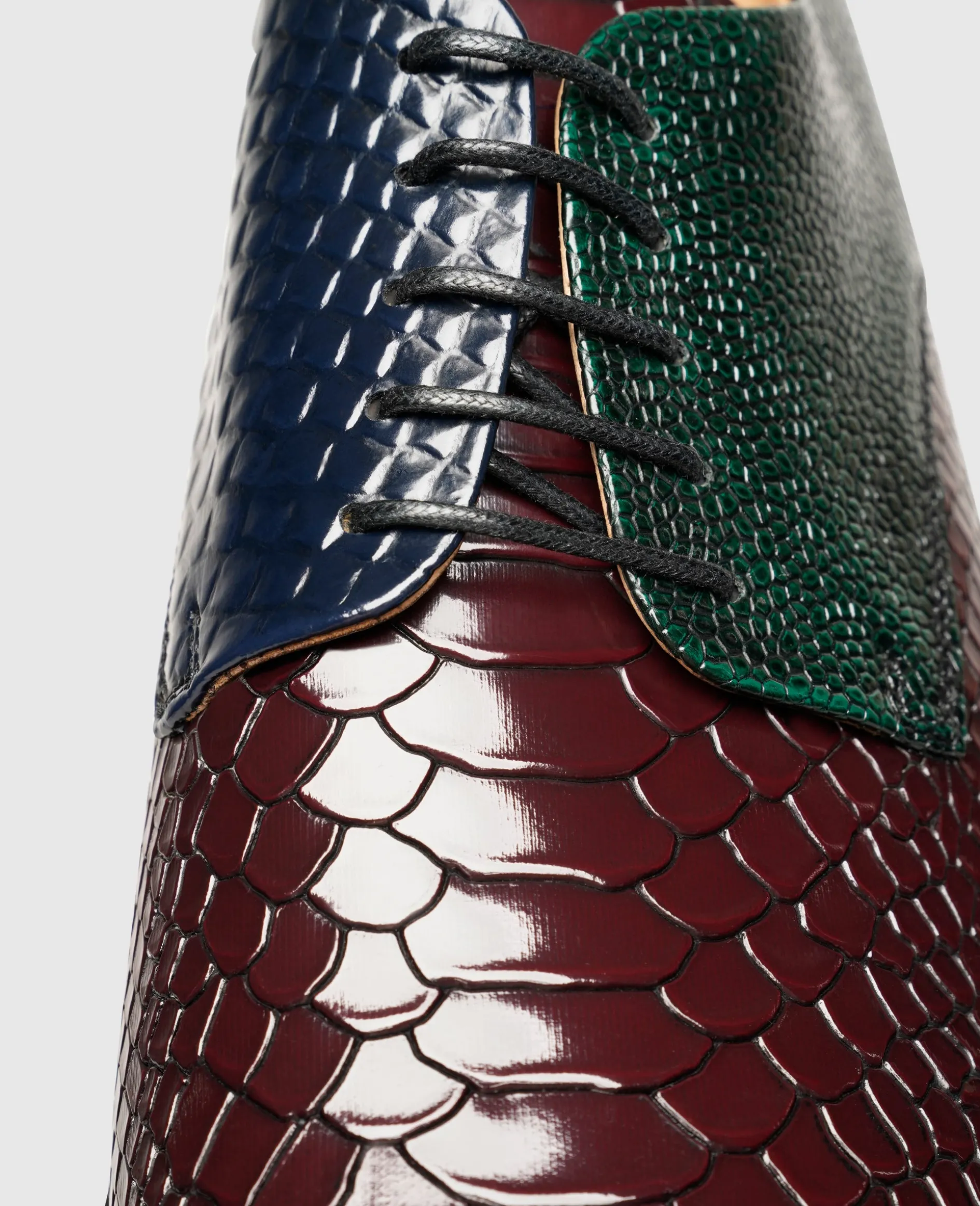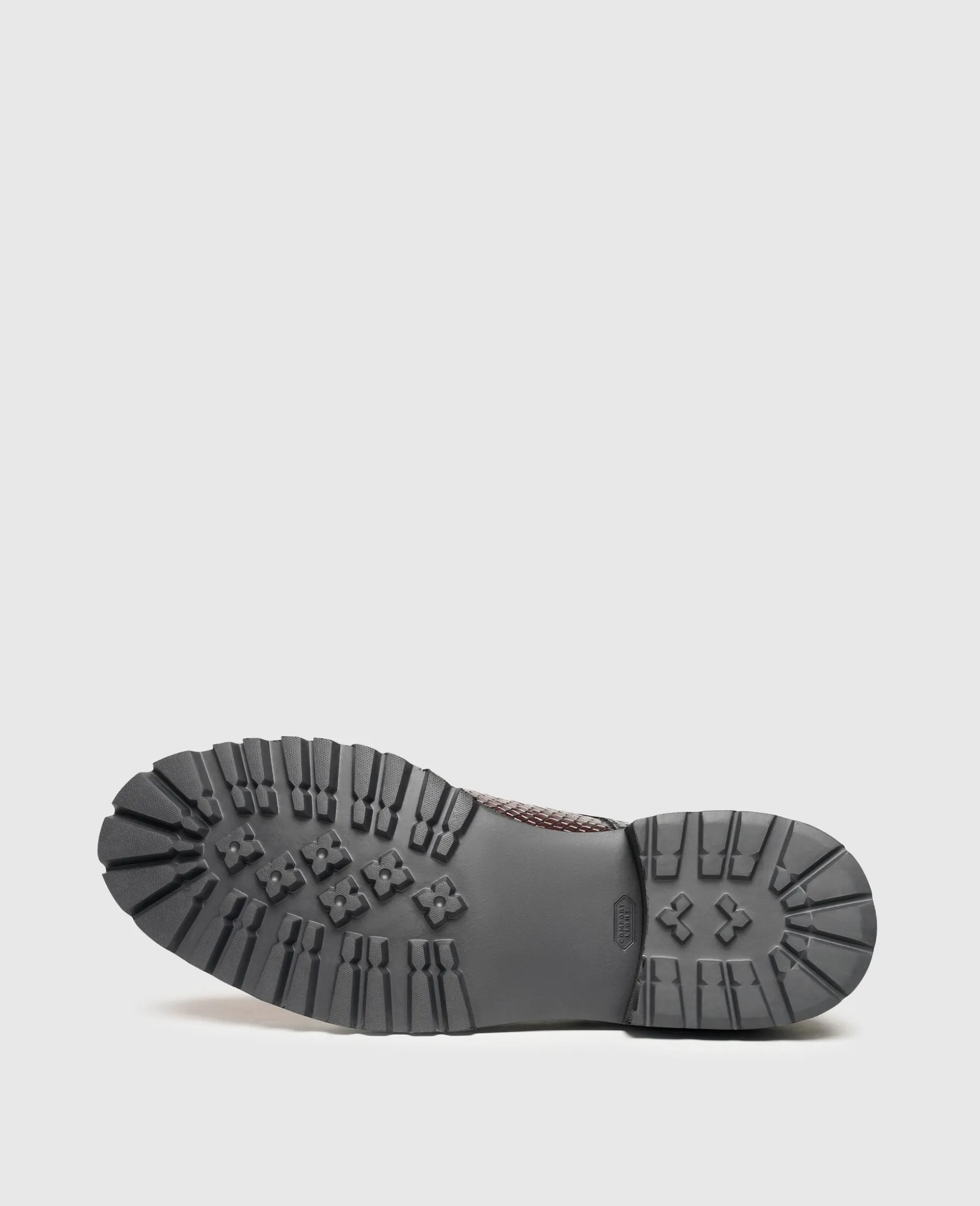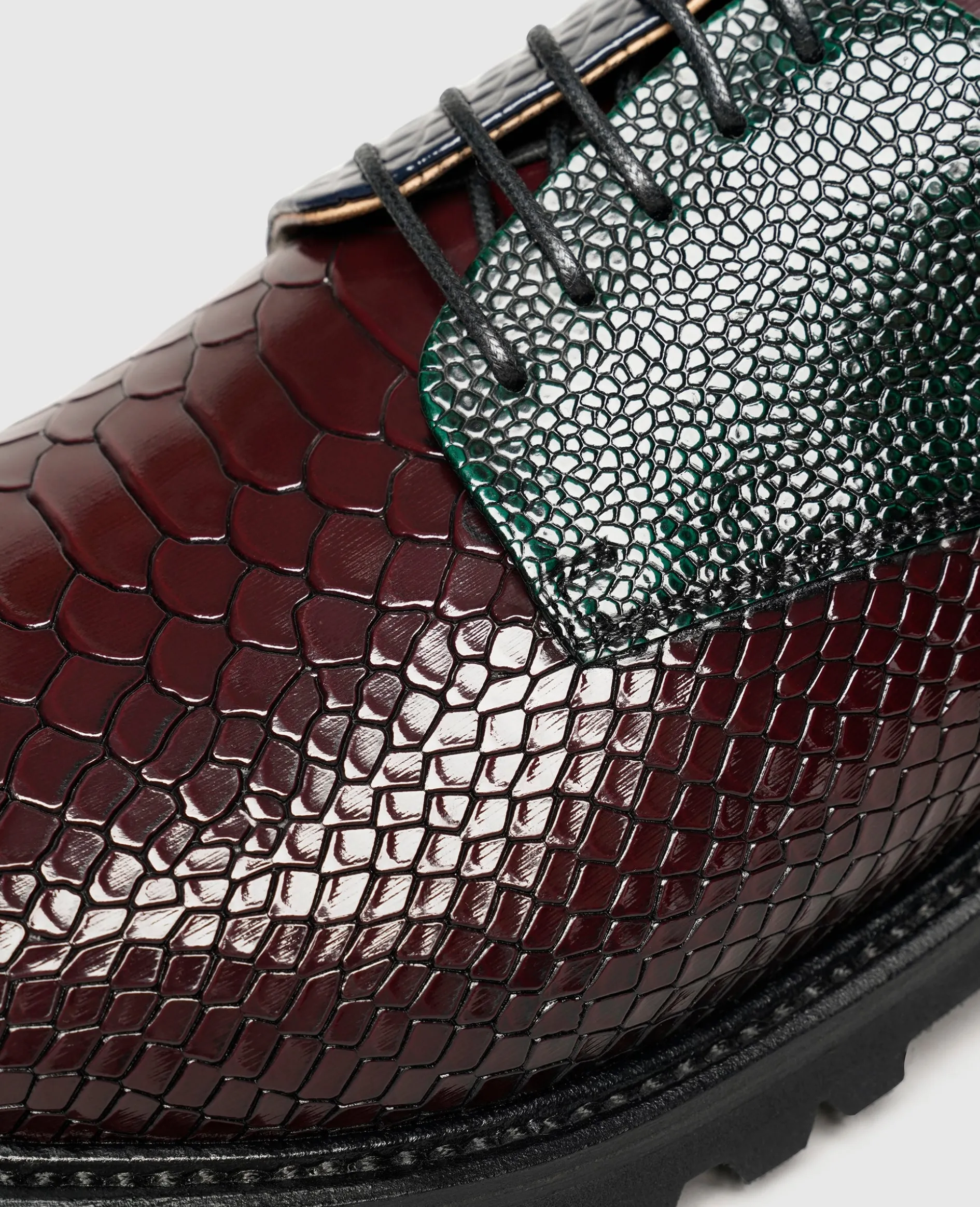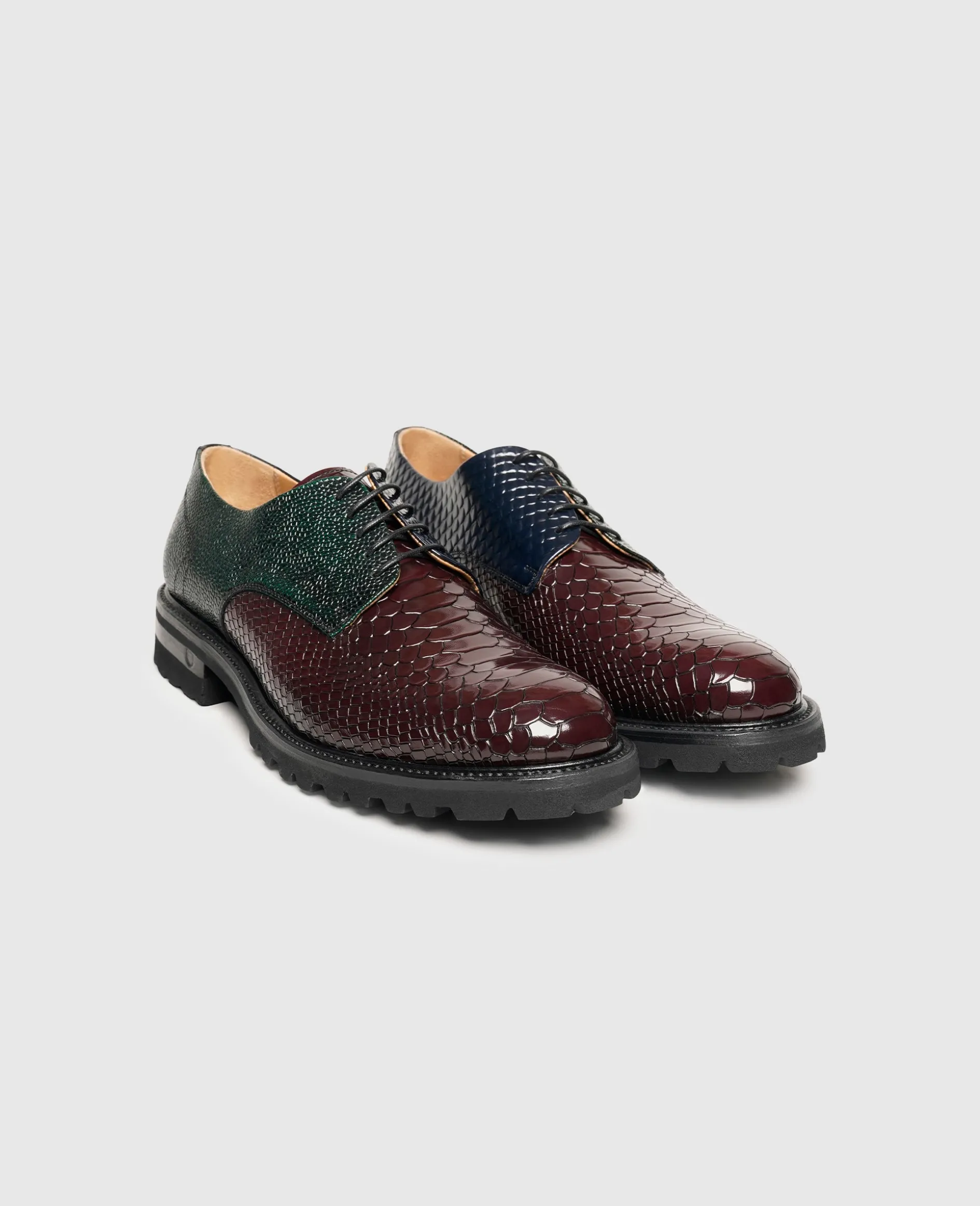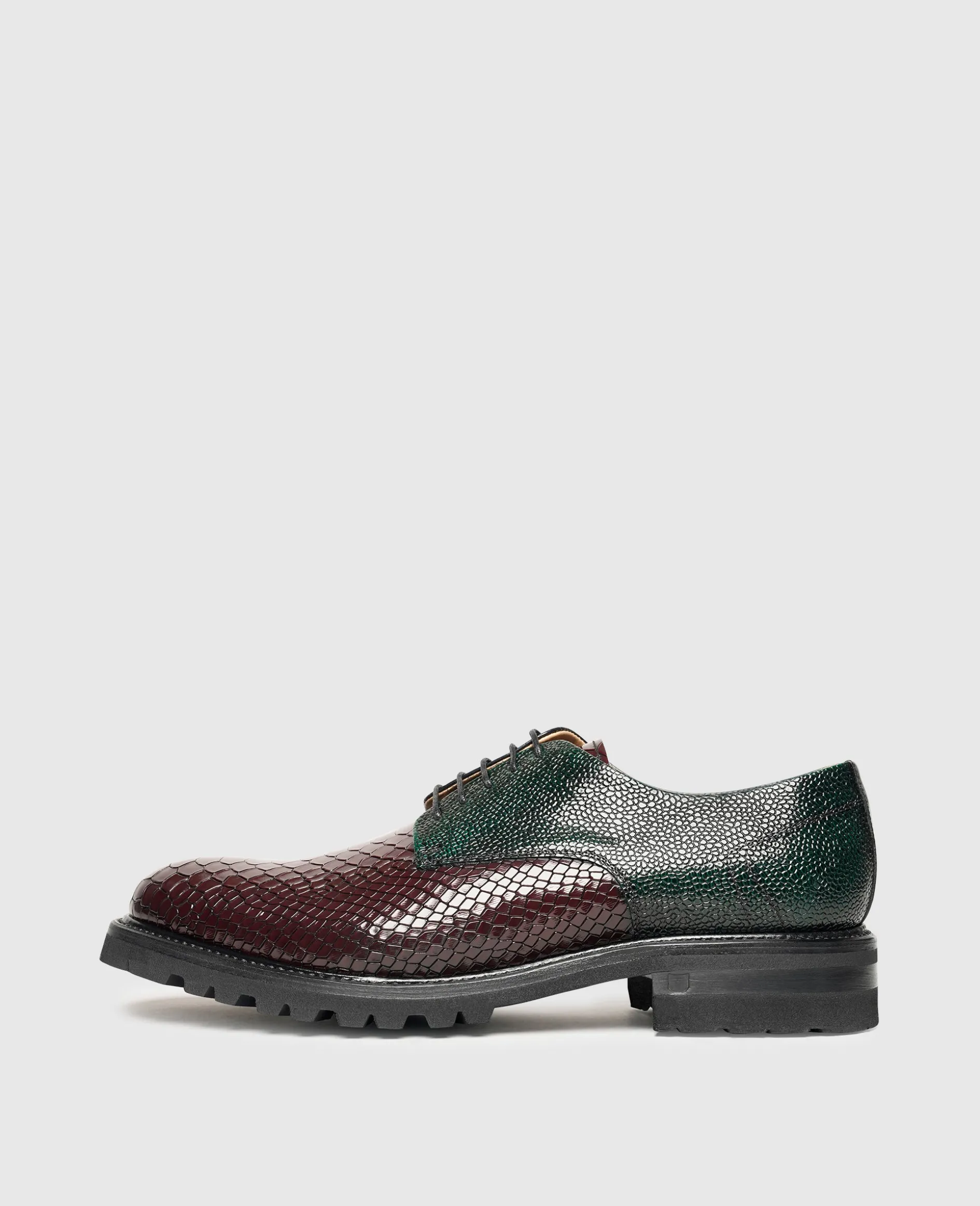 Alles andere als klassisch präsentiert sich der rahmengenähte und handgefertigte Plain Derby in der Linie »Industrial Image« von Henry Stevens. Der weltweit beliebte Herrenschnürschuh überrascht in einer modernen Interpretation mit unterschiedlich geprägten Lederpartien und einem mehrfarbigen Design. Die zeitgemäße Optik wird von einer breiten Laufsohle mit markantem Gummiprofil unterstützt. Letztere sorgt auch bei widrigen Witterungsbedingungen für Standfestigkeit. Insgesamt setzt der außergewöhnliche Herrenschuh überall dort willkommene Akzente, wo es weniger formell zugeht und lässt sich vielseitig im Rahmen von Smart Casual kombinieren.