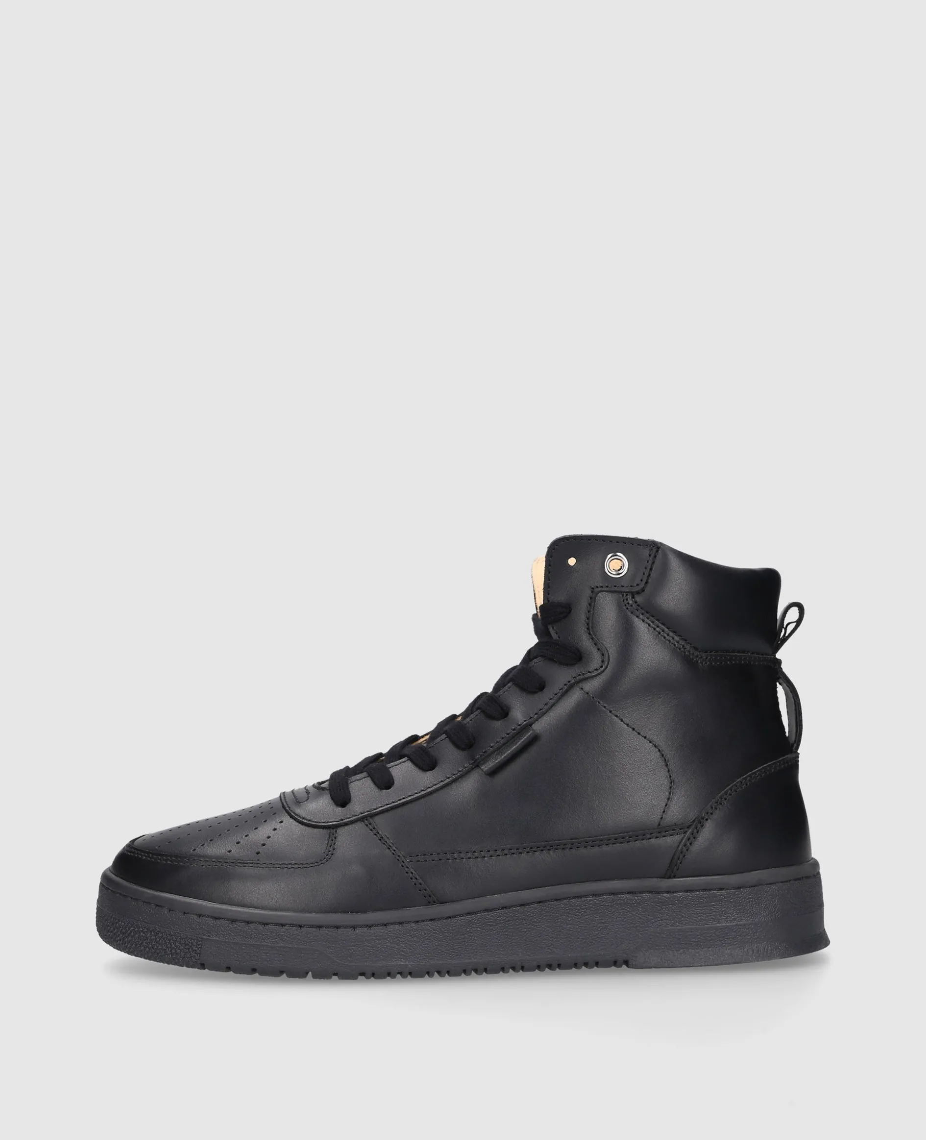 Der Bball Hi M AB High Top in Schwarz besteht aus softem Kalbsveloursleder und ist mit einem Innenfutter aus Bio-Kalbsleder ausgestattet. Die rutschfeste, flexible Gummisohle sorgt für sicheren Halt und hohen Tragekomfort – perfekt für die kälteren Tage. Ein moderner Sneaker mit elegant-matten Finish. Gefertigt in Portugal.