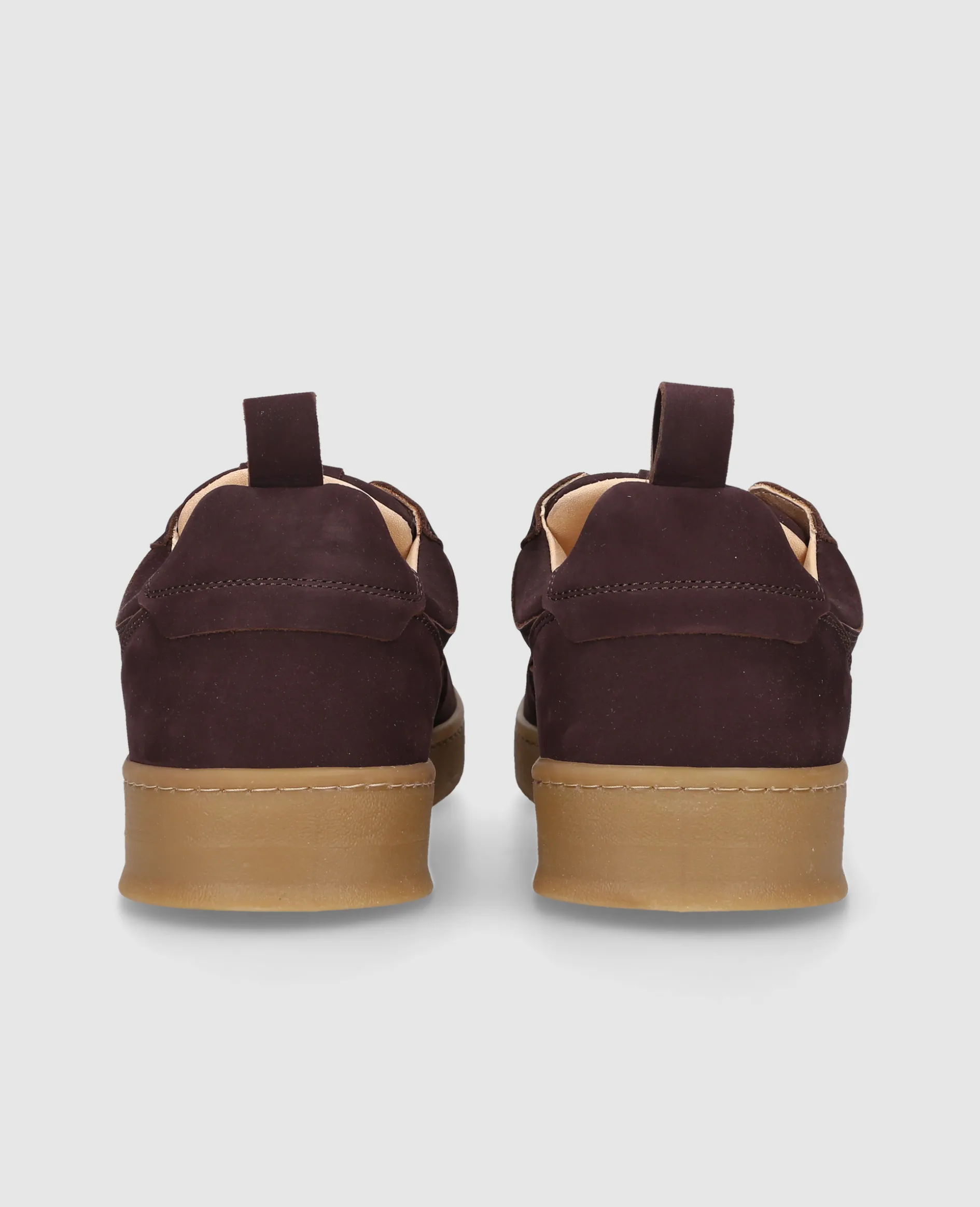 Der klassische Bball Sneaker in Dunkelbraun überzeugt durch weiches Kalbsnubuk und ein Innenfutter aus Bio-Leder. Die honigfarbene, profilierte Gummisohle bietet sicheren Halt bei jedem Schritt. Ideal für kühle Tage und ein zeitloser Look mit nachhaltigen Materialien. Gefertigt in Portugal.
