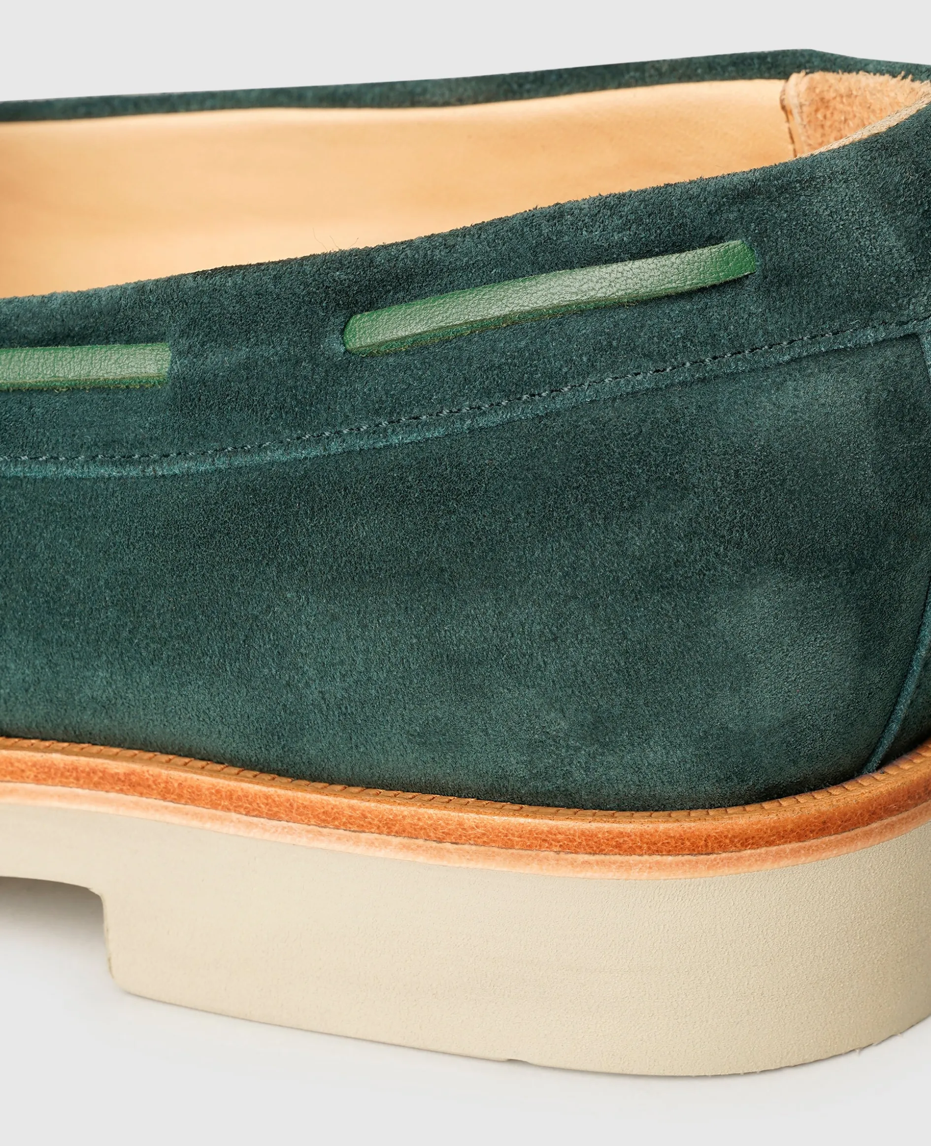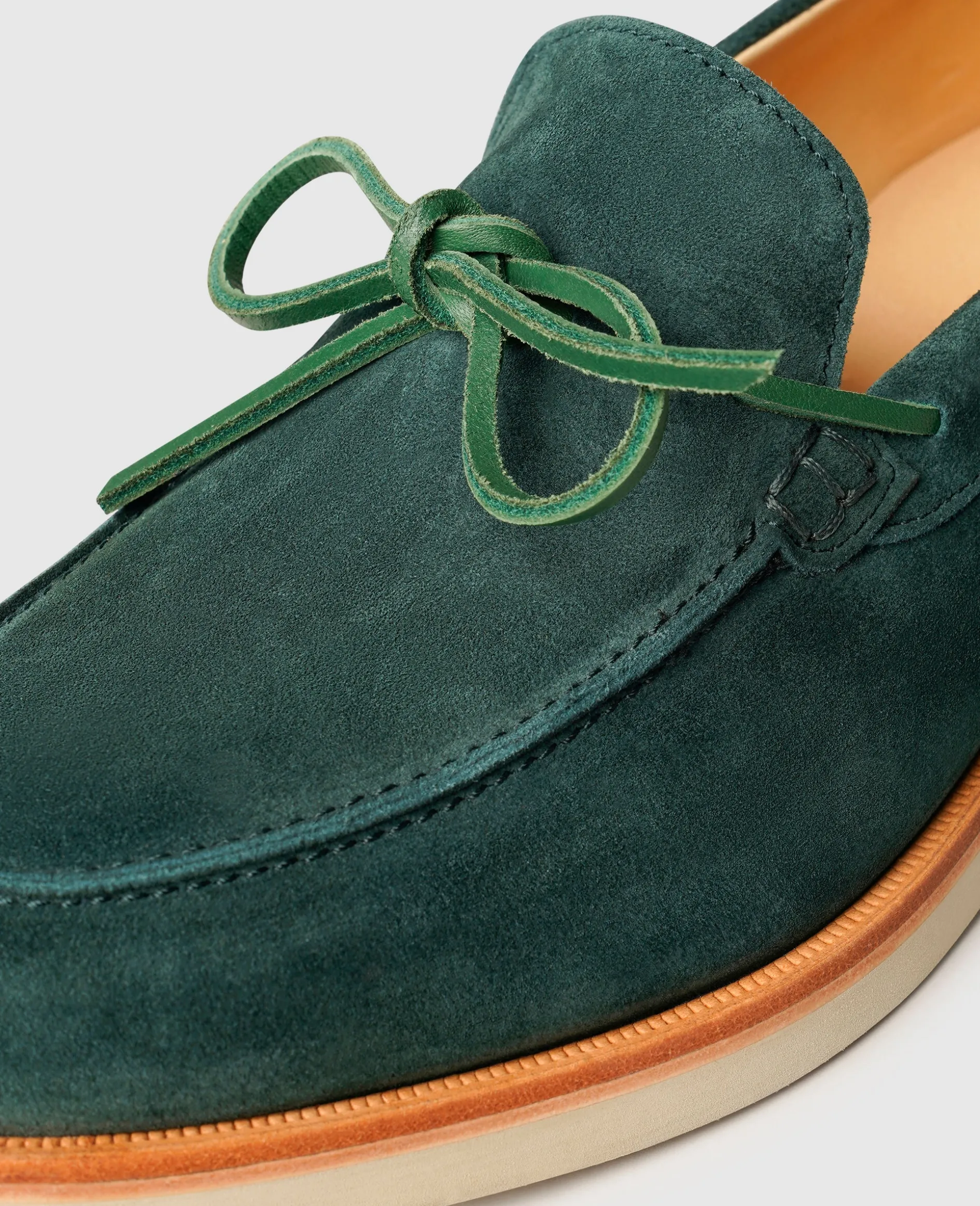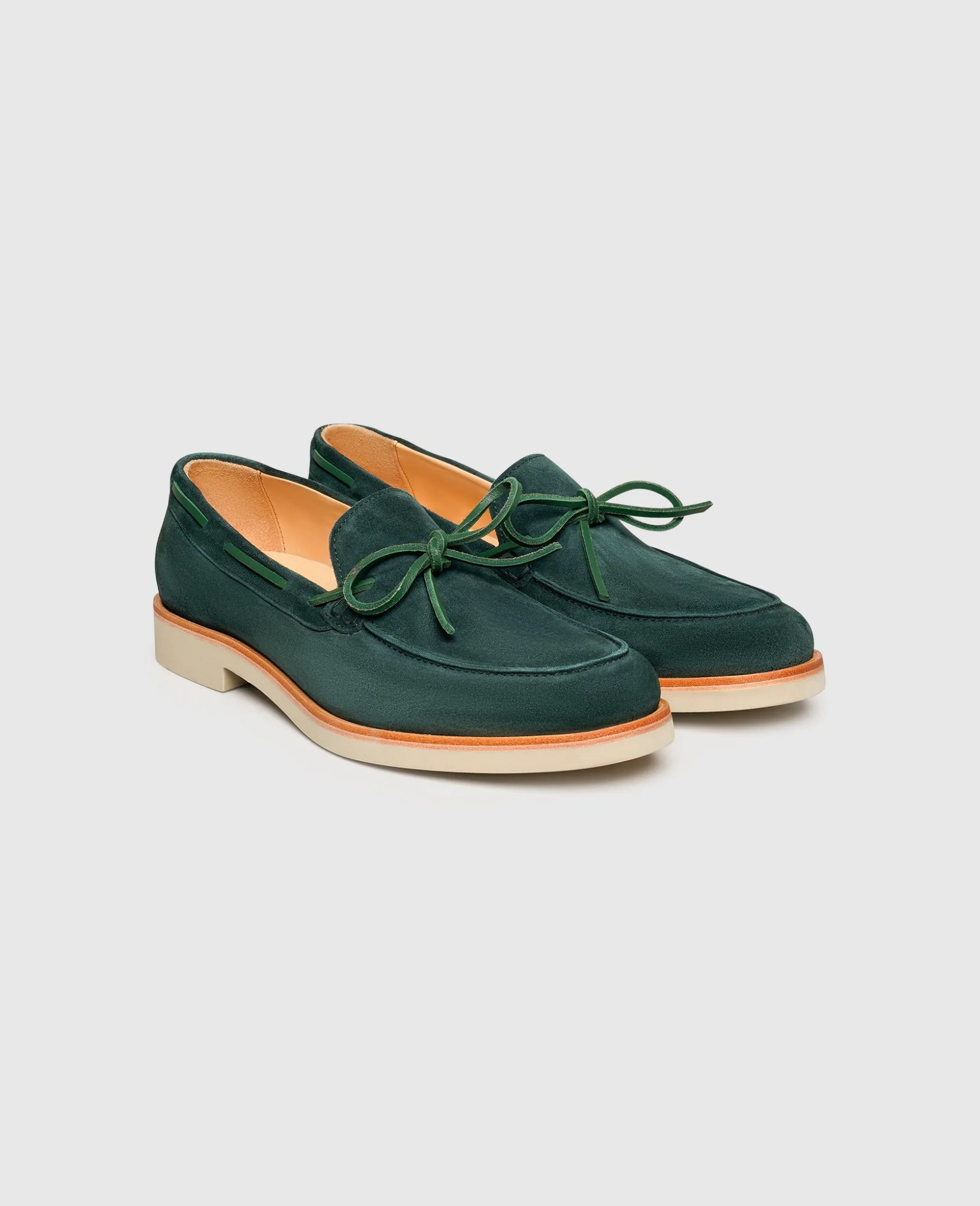 Luftig-leicht und höchst komfortabel verleben Sie sommerliche Tage in einem Paar dieser Bootsschuhe von Henry Stevens. Im Inneren des in Portugal gefertigten Schuhs sorgen ein vollständig kompostierbares und hautfreundliches Innenfutter aus Bio Leder sowie ein gemütliches Fußbett mit Memoryfoam für ein rundum komfortables Geherlebnis. Das grüne Herrenmodell wird Sie begeistern, vor allem durch sein raues und samtiges Kalbsvelours. Durch die trittsichere Laufsohle aus Gummi muss man auch bei langen Fußwegen nicht an Komfort einbüßen. Lässig und vielseitig kombinierbar überzeugen diese Freizeitschlupfschuhe!