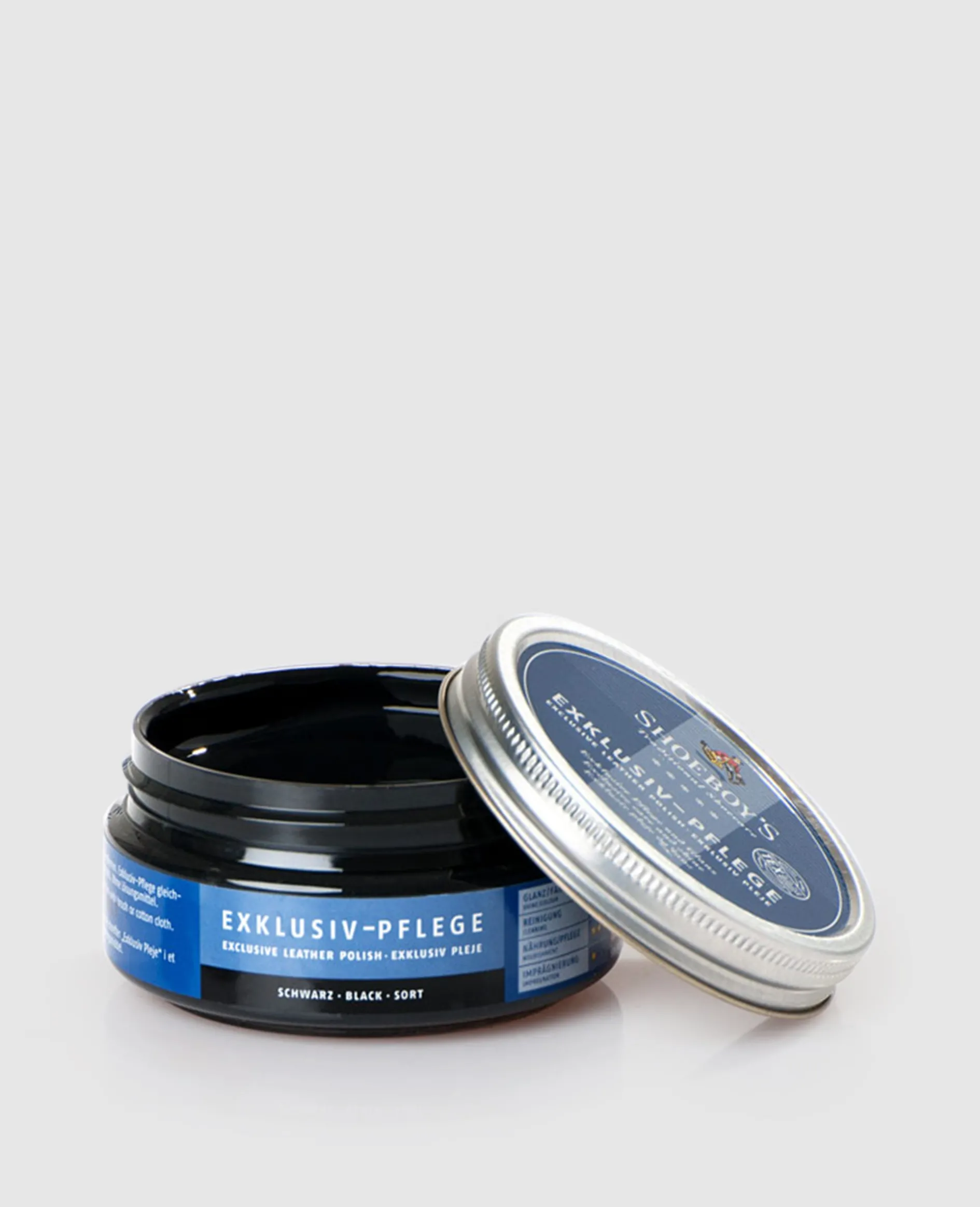 Die Shoeboys Exklusive Pflege ist eine gelartige Emulsionscreme mit Bienenwachs. Sie entfernt Verschmutzungen und wirkt farbauffrischend. Darüber hinaus nährt und imprägniert sie das Leder dank des enthaltenen Bienenwachses.