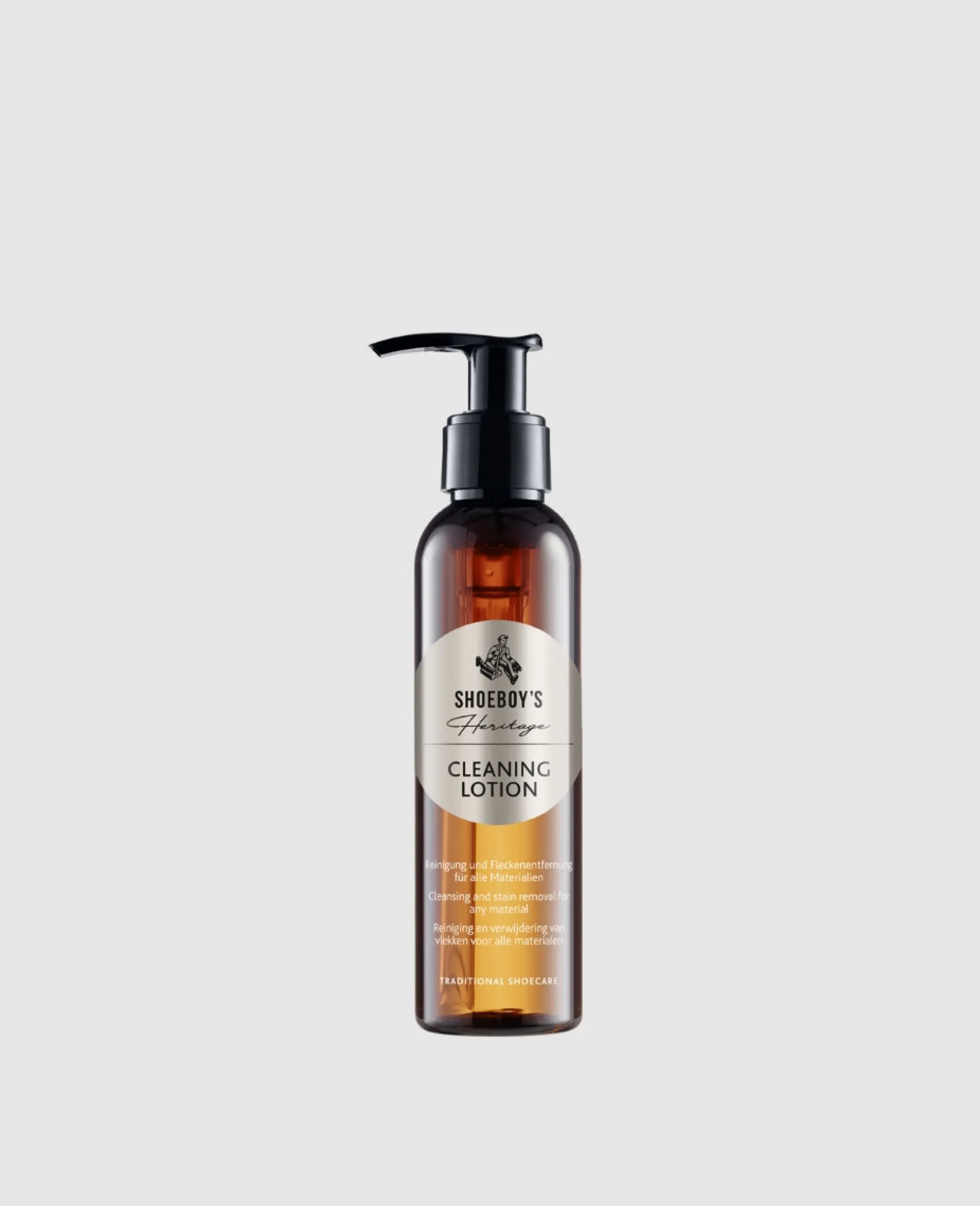 Die Reinigungs- und Pflegelotion von Shoeboy’s Heritage entfernt Schmutz, Flecken sowie Wasser- und Schneeränder von Glatt- und Raulederschuhen sowie Textilien. Dank der sanften Wirkung eignet sich die Cleaning Lotion auch für empfindliche Oberflächen. Verteilen Sie drei bis vier Spritzer der Lotion mit einem nassen Schwamm oder einer feuchten Bürste auf dem Material. Mögliche Schaumreste lassen sich problemlos mit einem feuchten Tuch entfernen – Inhalt: 140 ml.