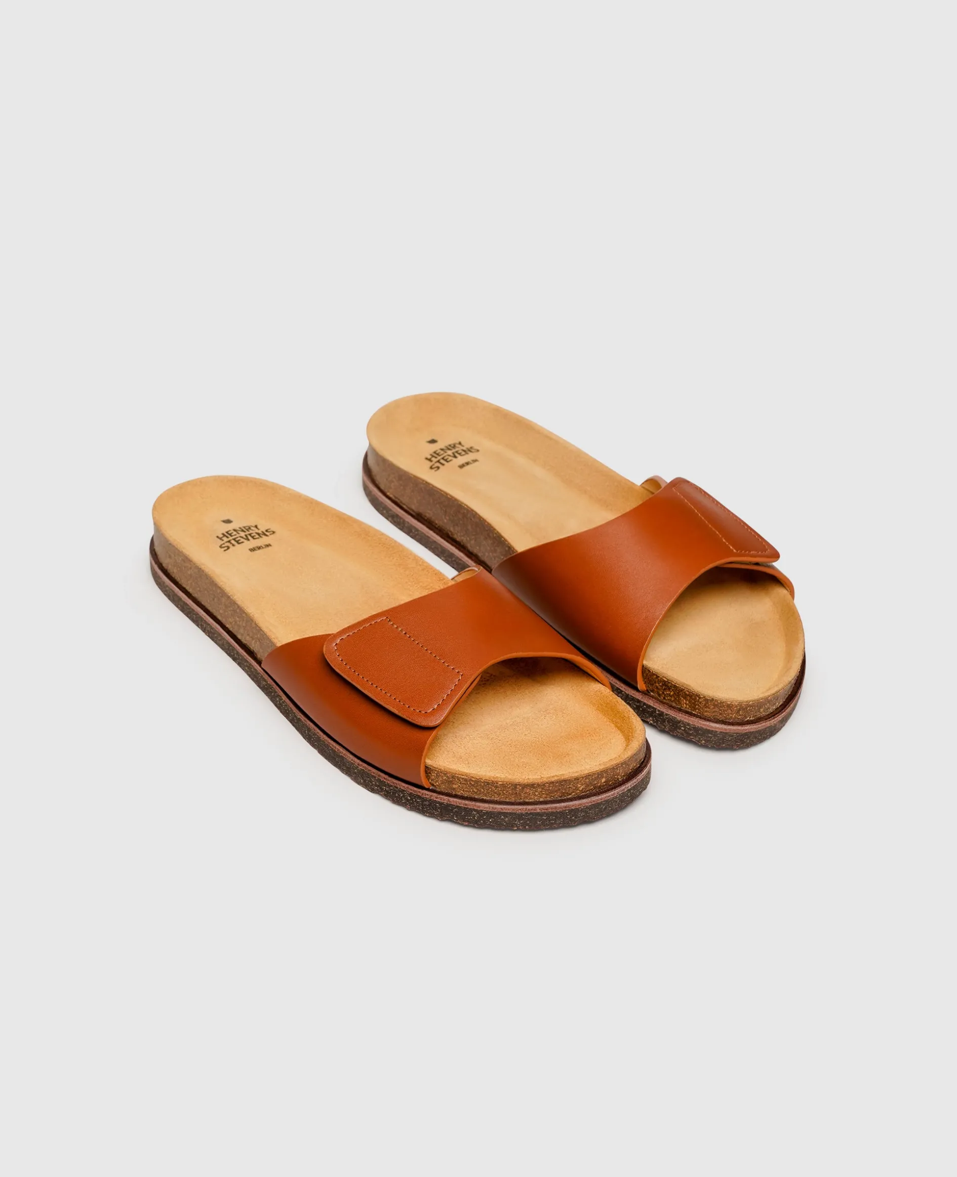 Luftig-leicht und höchst komfortabel verleben Sie sommerliche Tage in einem Paar dieser nachhaltigen Damen-Pantoletten von Henry Stevens. Den Vorderfußbereich ziert ein schlichter Riemen aus geschmeidigem Kalbsleder, dessen Weite durch einen Klettverschluss reguliert werden kann. Das gepolsterte Fußbett aus Naturkork macht jeden Schritt zu einem echten Geherlebnis, während die aufgesetzte Laufsohle aus Krepp für Rutschfestigkeit sorgt.