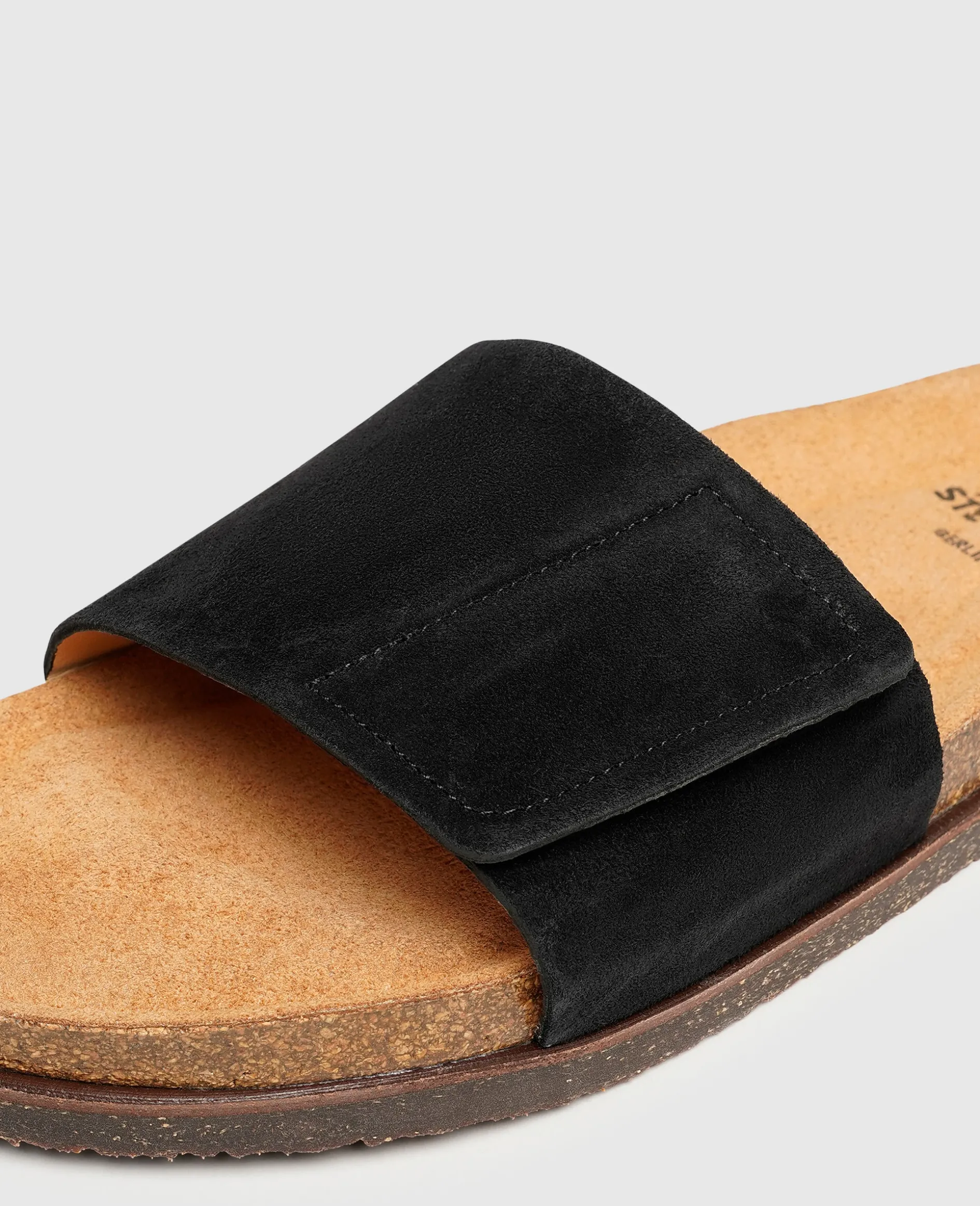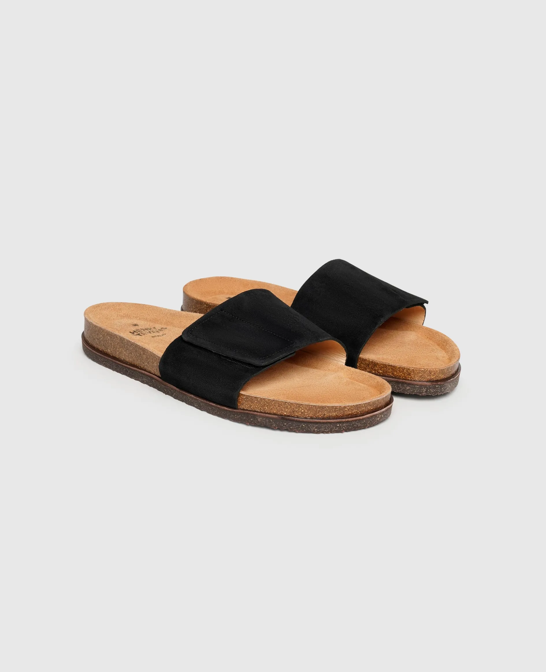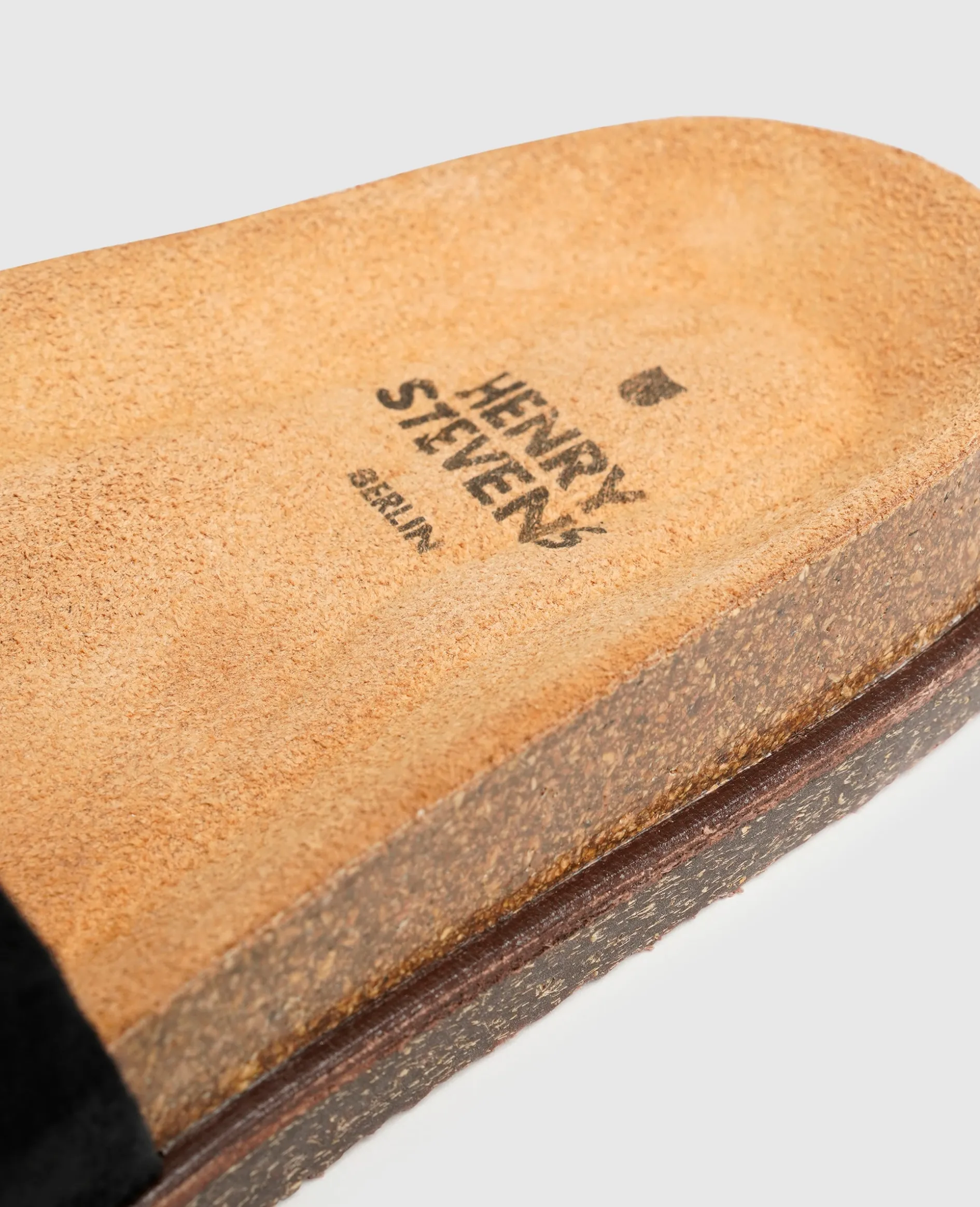 Luftig-leicht und höchst komfortabel verleben Sie sommerliche Tage in einem Paar dieser Sandalen von Henry Stevens. Der schwarze Schuh wird durch Riemen aus rauem und samtigem Kalbsvelours und einer Schnalle in der Weite reguliert. Im Inneren sorgt Bio-Leder nicht nur für ein angenehmes Schuhklima, es ist auch besonders hautfreundlich vollständig kompostierbar. Das weiche Fußbett aus Kork macht jeden Schritt zu einem echten Geherlebnis, während die aufgesetzte Laufsohle aus Krepp für Rutschfestigkeit sorgt. Die in Portugal gefertigten Sandalen sorgen für die perfekte Abrundung Ihrer Freizeitlooks.