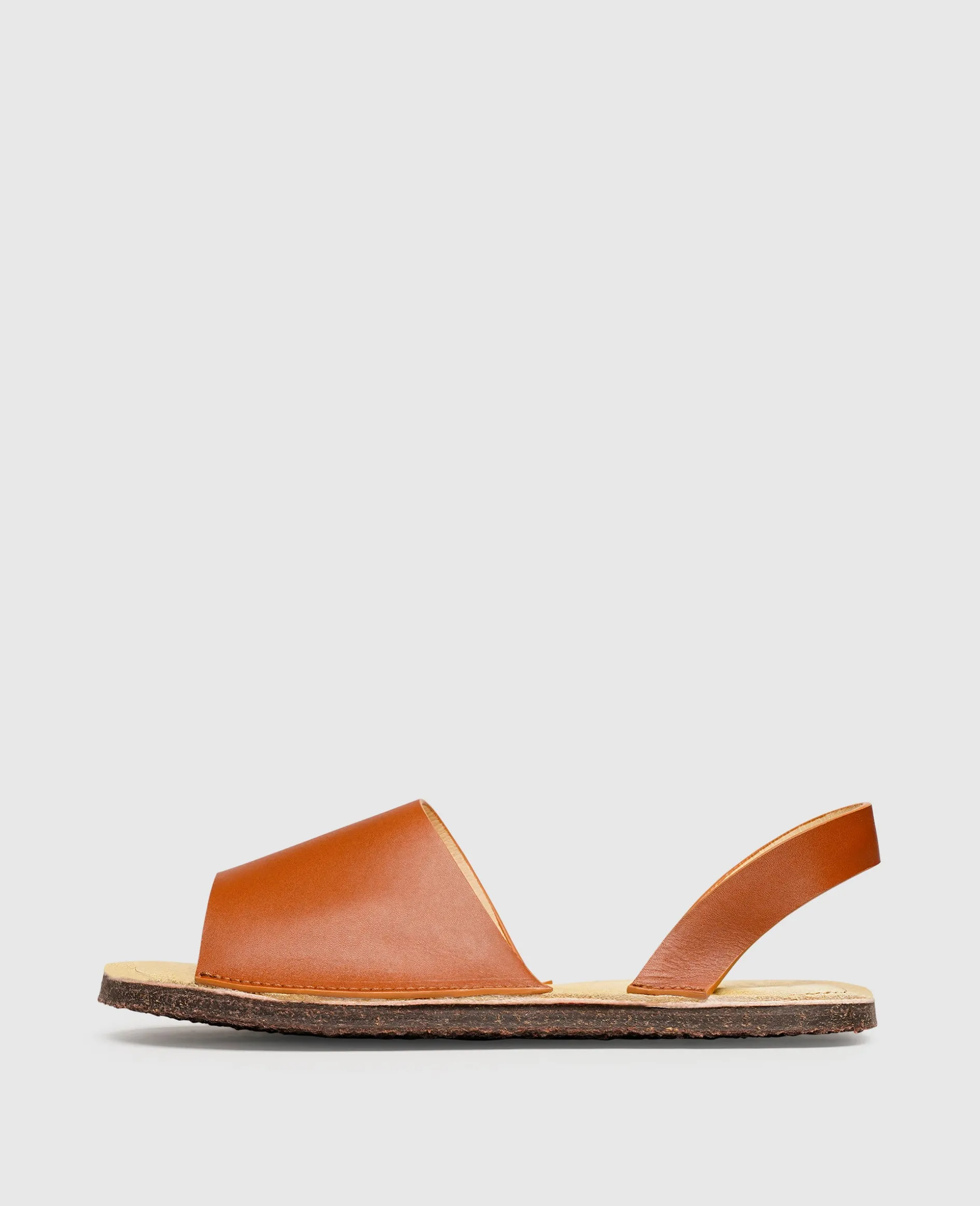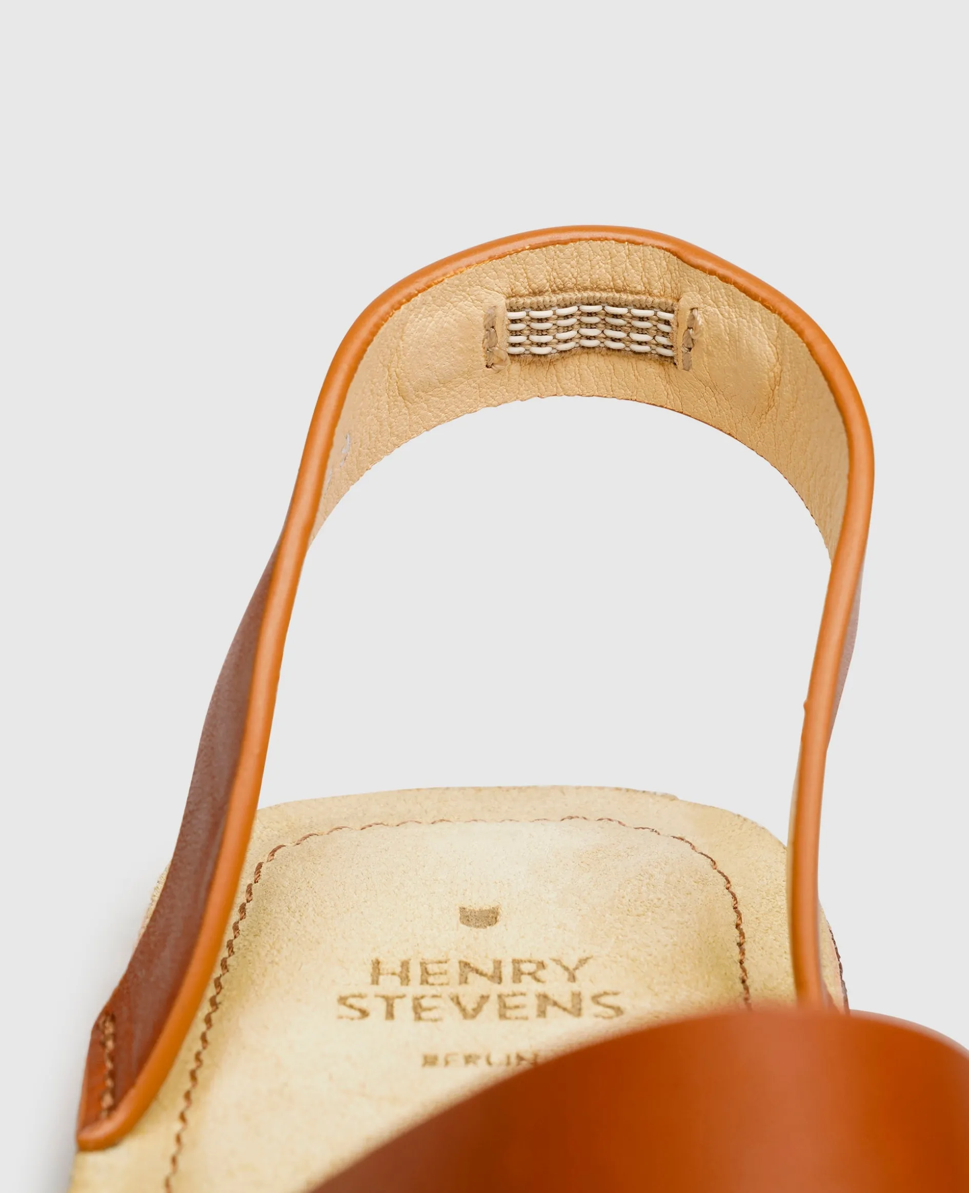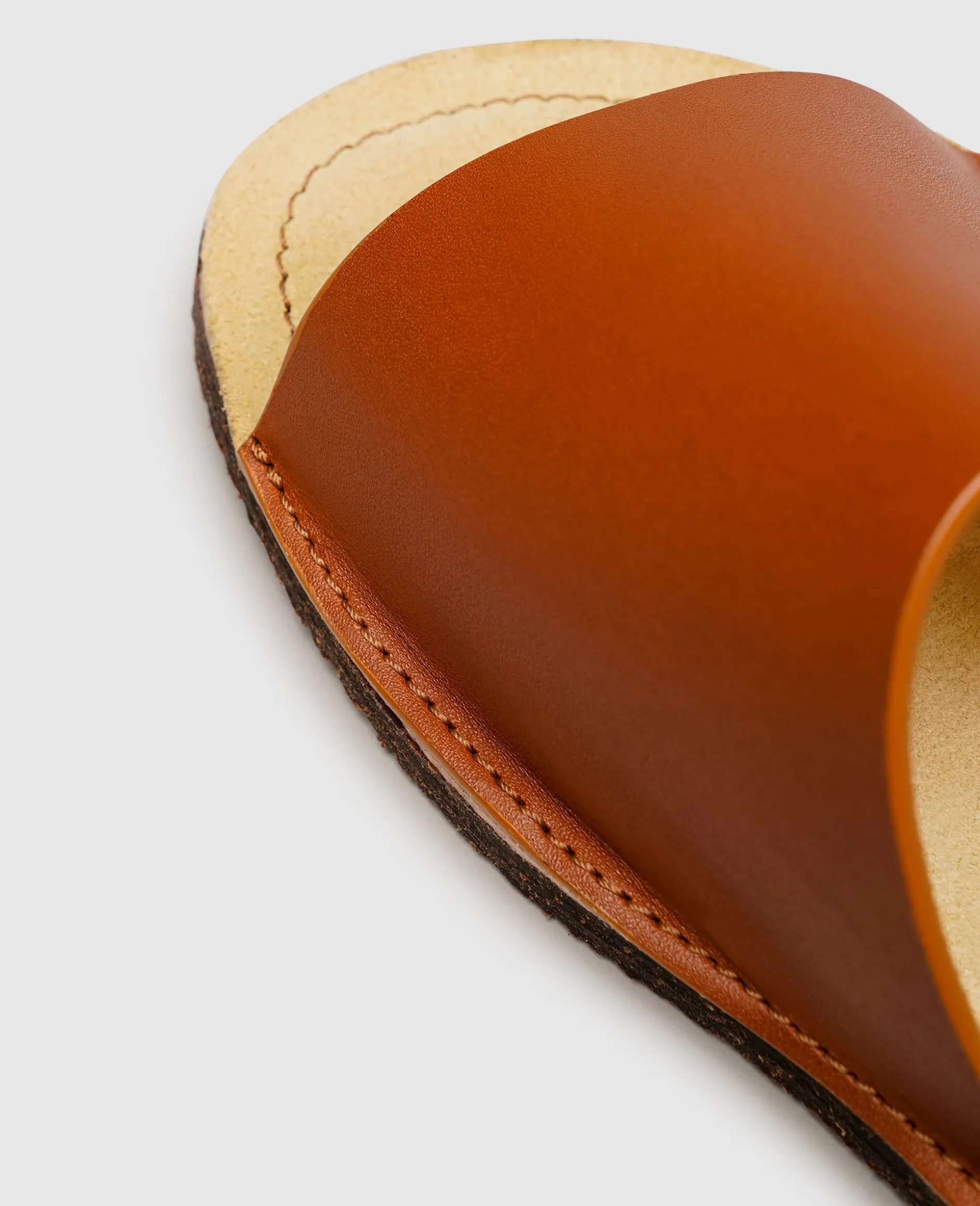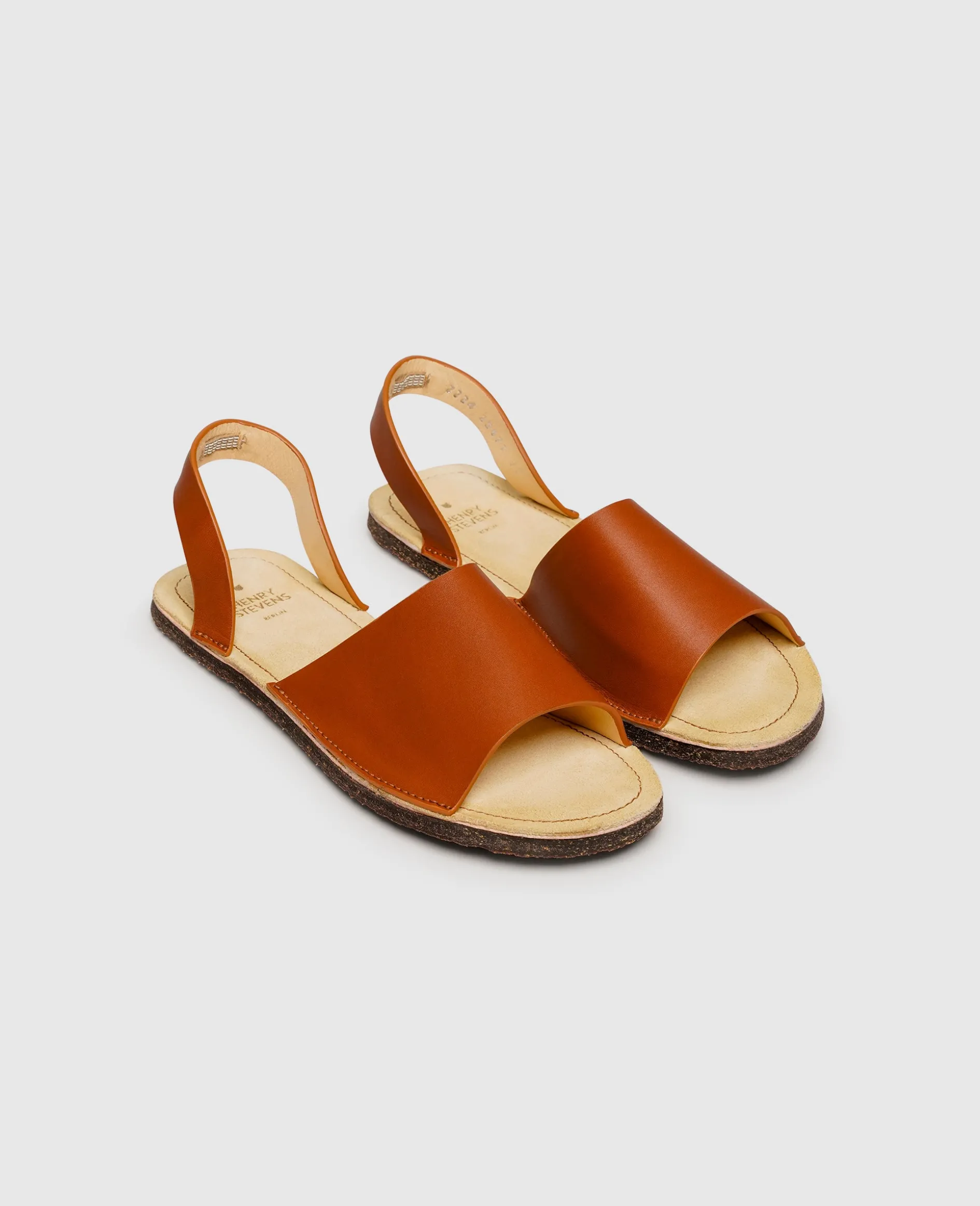 Kaum eine Sandalenform versprüht so viel mediterranes Flair wie die Mallorca-Sandale der Berliner Marke Henry Stevens. Den Vorderfußbereich kleidet ein breiter Riemen aus geschmeidigem Kalbsleder, durch welchen lediglich ein kleines Stück der vorderen Zehen hervorblitzt. Der schmale Riemen an der Fersenpartie spendet der Trägerin ausreichend Halt, während das gepolsterte Fußbett aus vegetabil gegerbtem Leder sowie die aufgesetzte Laufsohle aus Krepp ein Höchstmaß an Komfort verleihen.