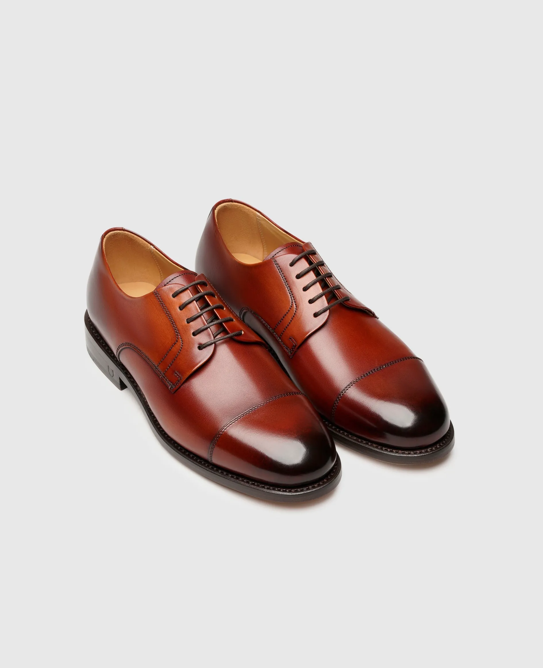 Ein einmaliges Handfinish auf dem Oberleder des Ella Captoe Derby zieht jede Betrachterin in seinen Bann. Doch sind es nicht nur die Farbchangierungen, die den rahmengenähten Klassiker zu einem besonderen Begleiter erheben. Im Inneren des Schuhs wird der Trägerin ausreichend Platz im Vorderfußbereich geboten, während Derby-Modelle den An- und Ausstieg dank der offenen Schnürung kinderleicht gestalten. Die sanft abgerundete Vorderfußpartie erhebt den Volllederschuh zu einem besonders zeitlosen Begleiter, der sich über jegliche Modeerscheinung hinwegsetzt und nahezu jedes Outfit komplettiert.