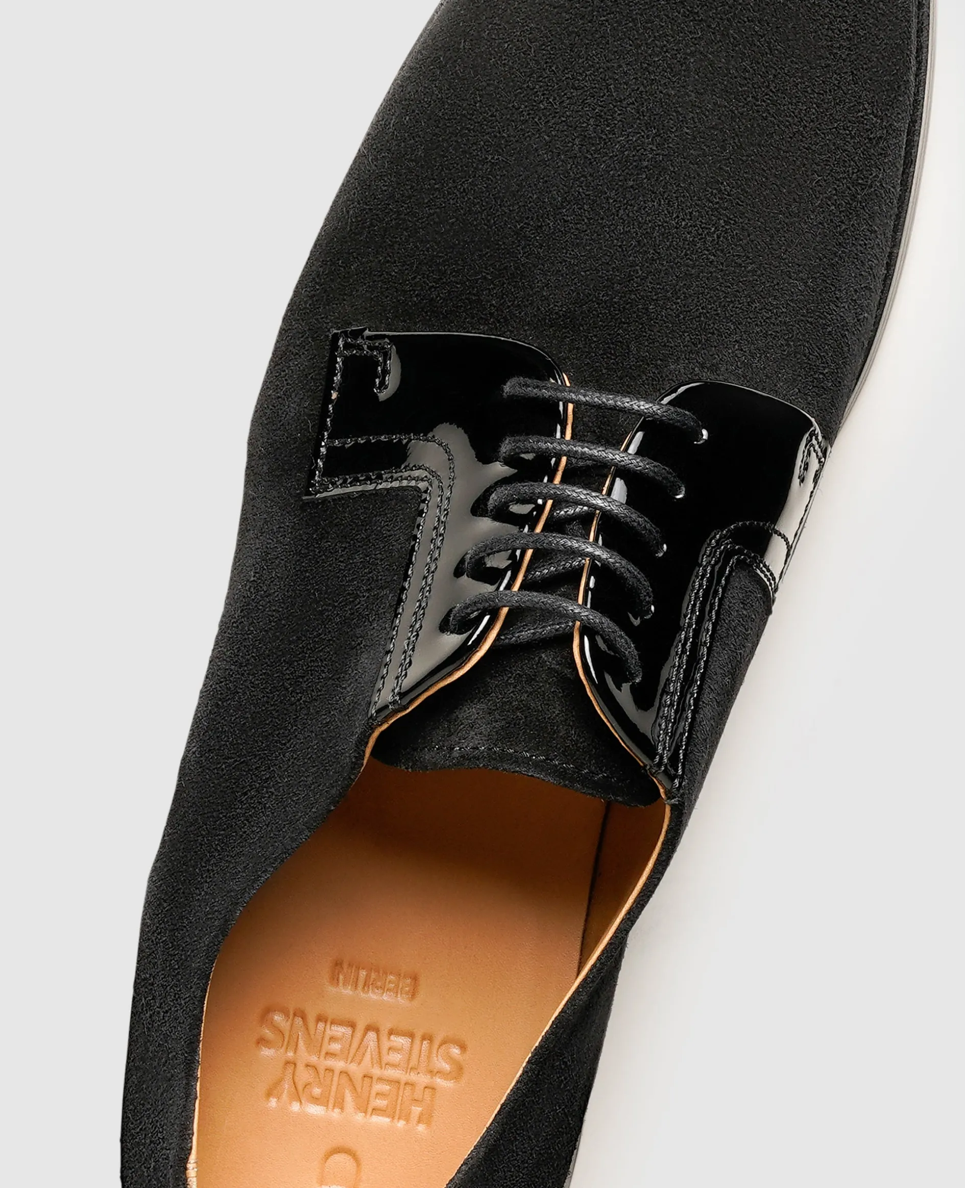 Anmutig und äußerst stilvoll erscheint der Ella Plain Blücher mit seiner femininen Silhouette und einer außergewöhnlichen Materialkombination. Für fabelhaften Glanz sorgen die Partien aus strapazierfähigem Leder vom Kalb mit einer aufgetragenen Lack-Schicht, während das samtige Velours dem klassischen Schnürschuh moderne Raffinesse verleiht. Dank seiner offenen Schnürung ermöglicht der Blücher seiner Trägerin einen leichten Ein- und Ausstieg.