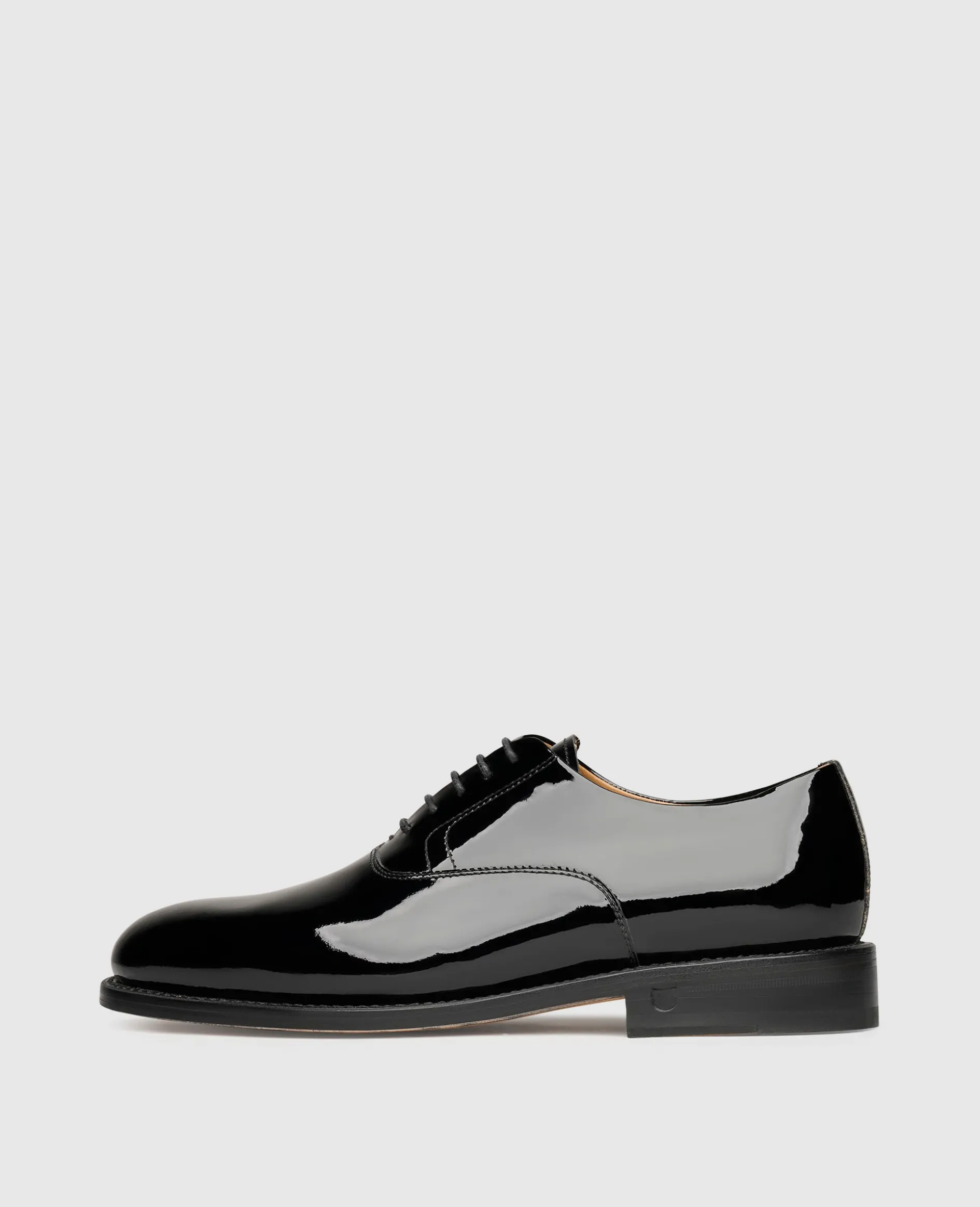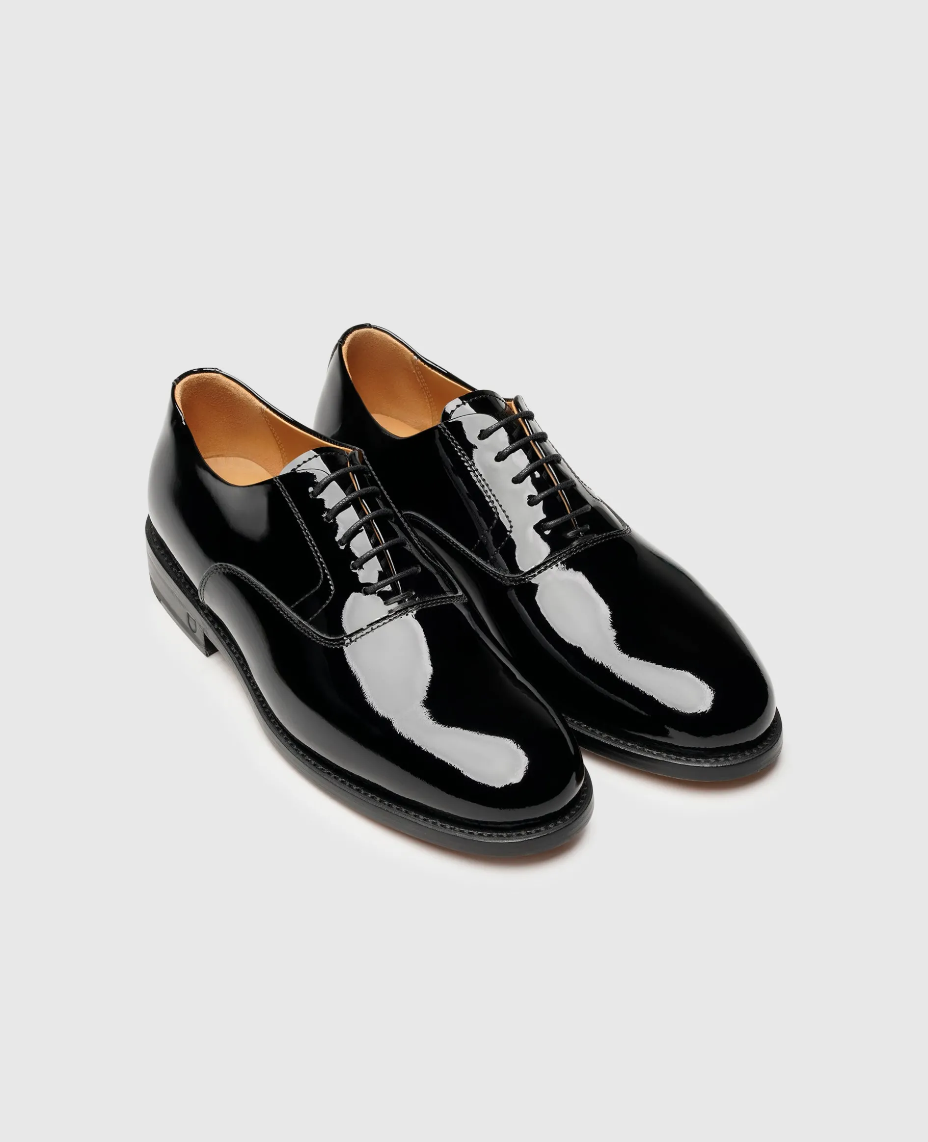 Glanzvolle Auftritte sind Ihnen mit diesen klassischen Schnürschuhen garantiert. Der klassische Oxford mit seiner geschlossenen Schnürung überzeugt mit einer wunderbaren Linienführung der sanft gerundeten Leistenform und der dadurch erzeugten femininen Optik. Der rahmengenähte Damenschuh besteht aus feinstem French Calf, welches durch den Polyurethan-Lack seine graziös glänzende Oberfläche erhält. Garantiert ein stilsicherer Begleiter mit Wow-Effekt.