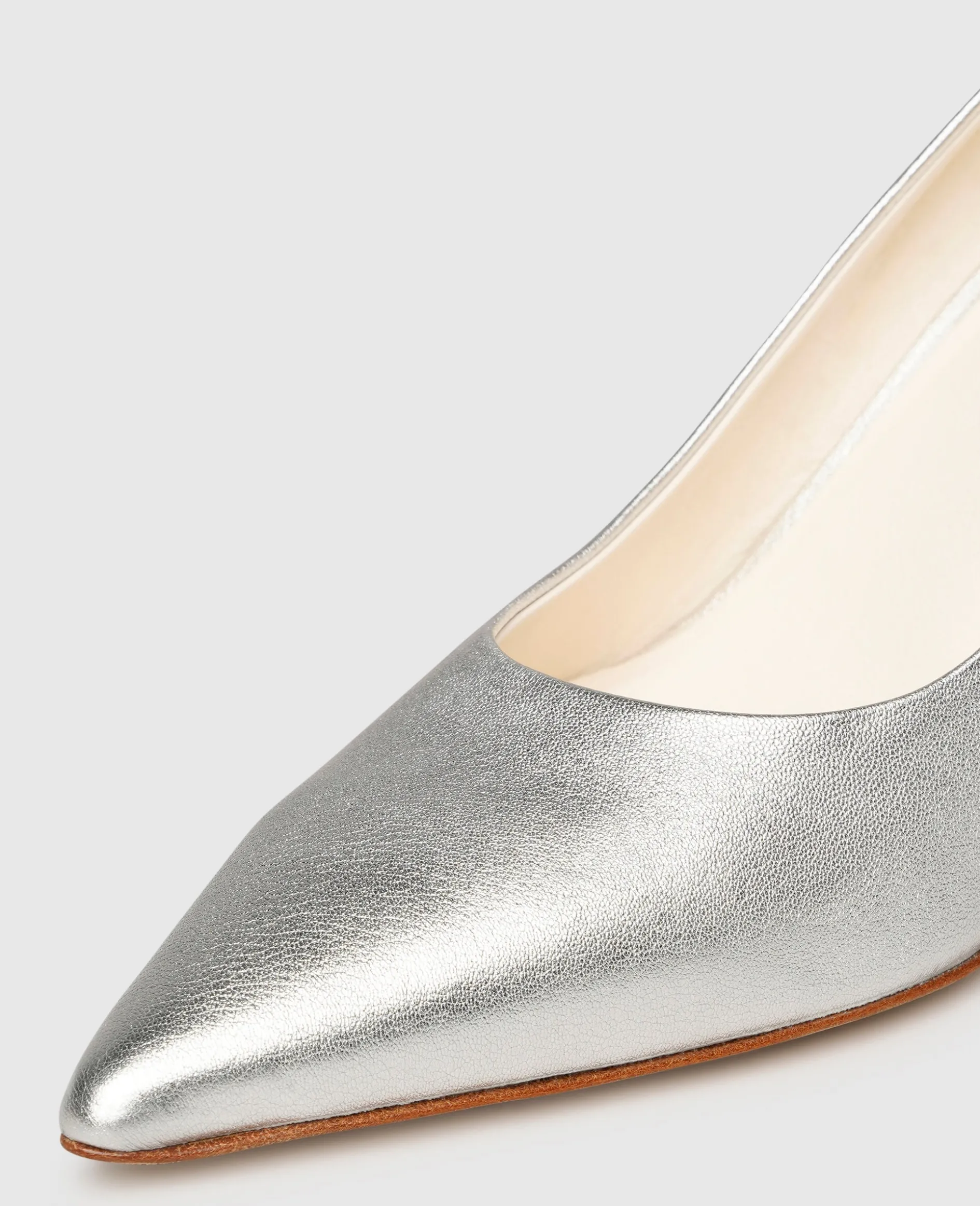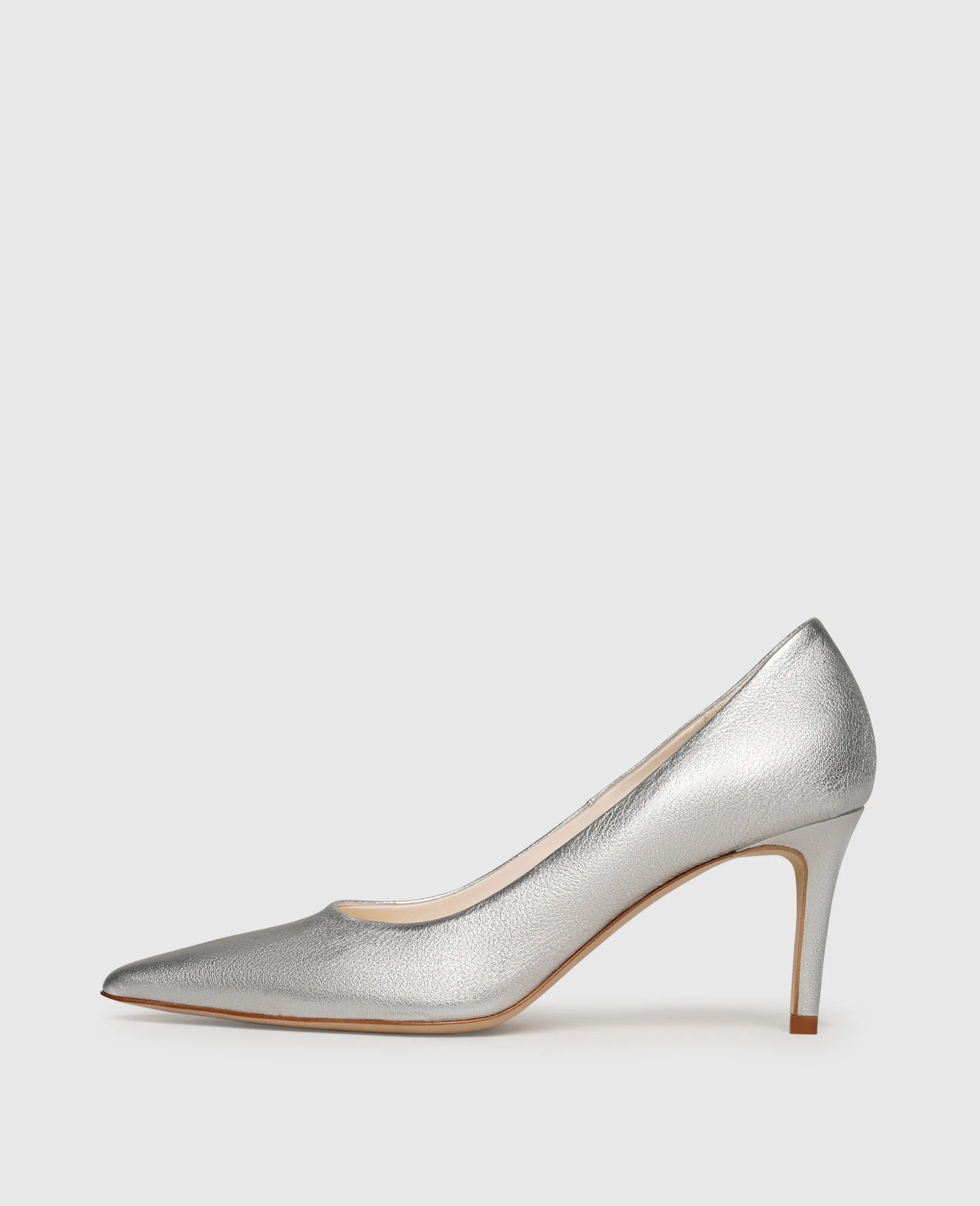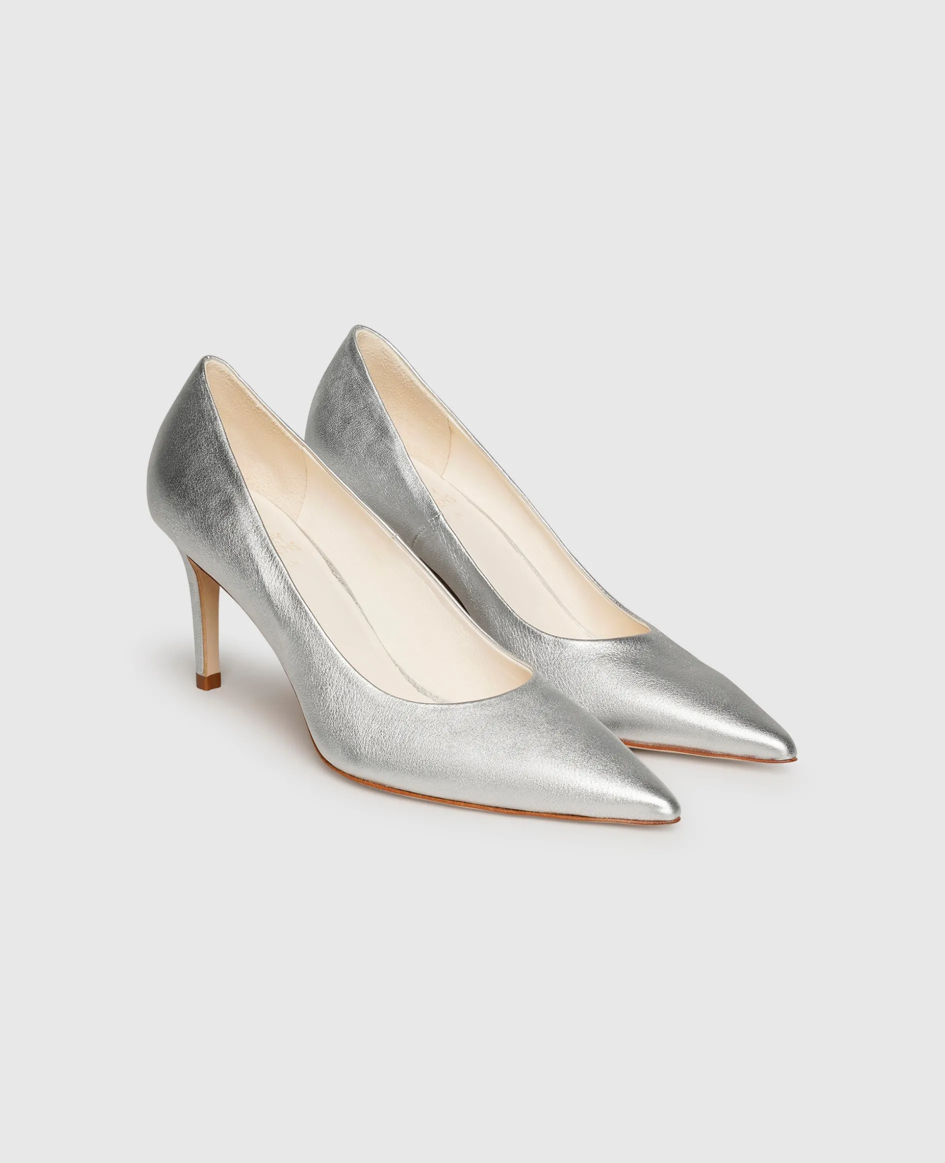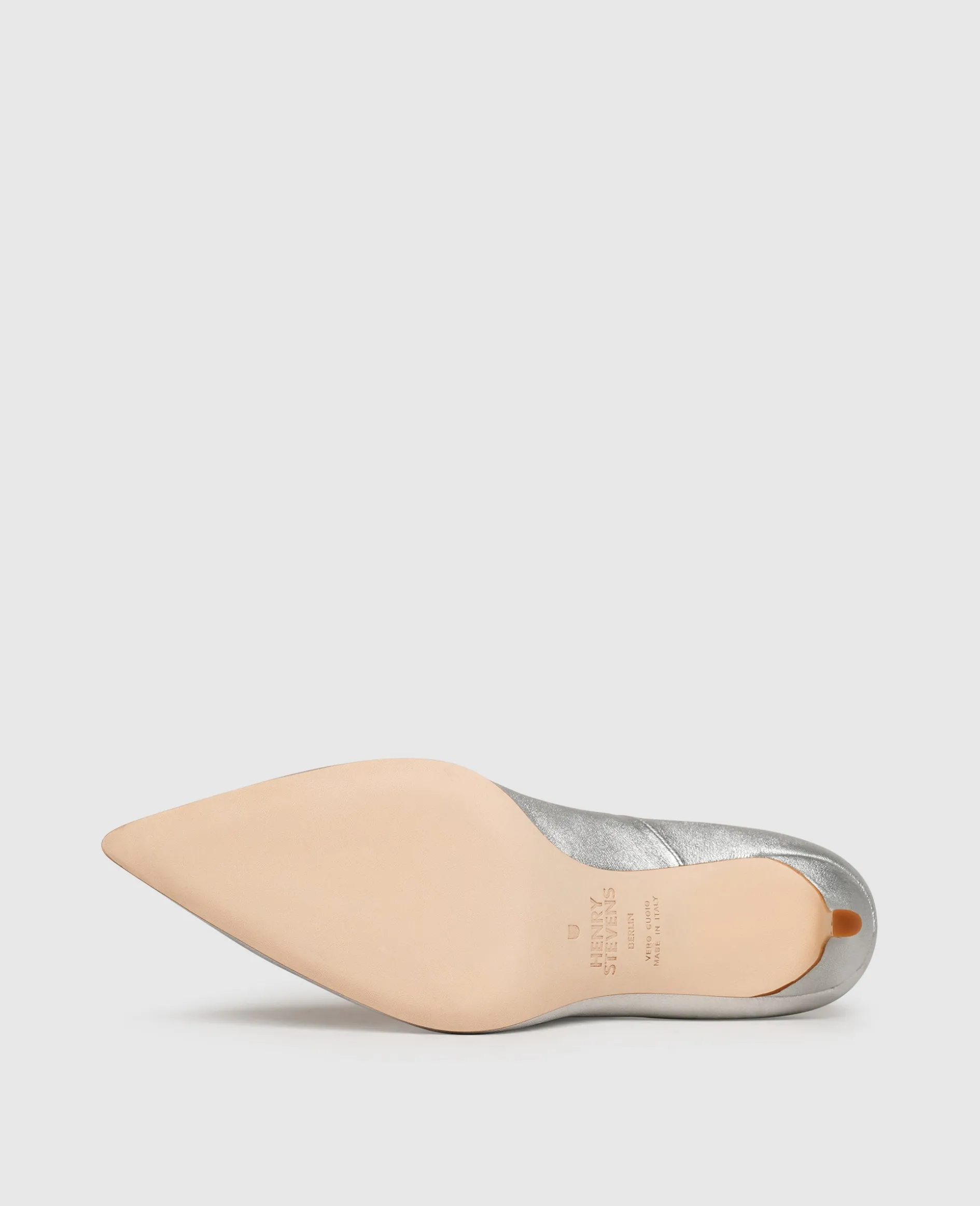 Mit diesen Pumps von Henry Stevens verleihen Sie jedem Look eine feminine und anmutige Note. Das silberne Modell für Damen ist aus glattem und elegantem Ziegennappa und hat einen 7 Zentimeter hohen Pfennigabsatz. Im Schuhinneren befindet sich pflanzlich gegerbtes und vollständig kompostierbares Bio-Leder. Ein außergewöhnlich hohes Maß an Komfort verleihen die edle Lederlaufsohle und ein bequemes Fußbett aus Leder mit Memoryfoam-Effekt. Dieser in Italien gefertigte Schlupfschuh eignet sich perfekt für klassische Business-Anlässe und festliche Feiern.
