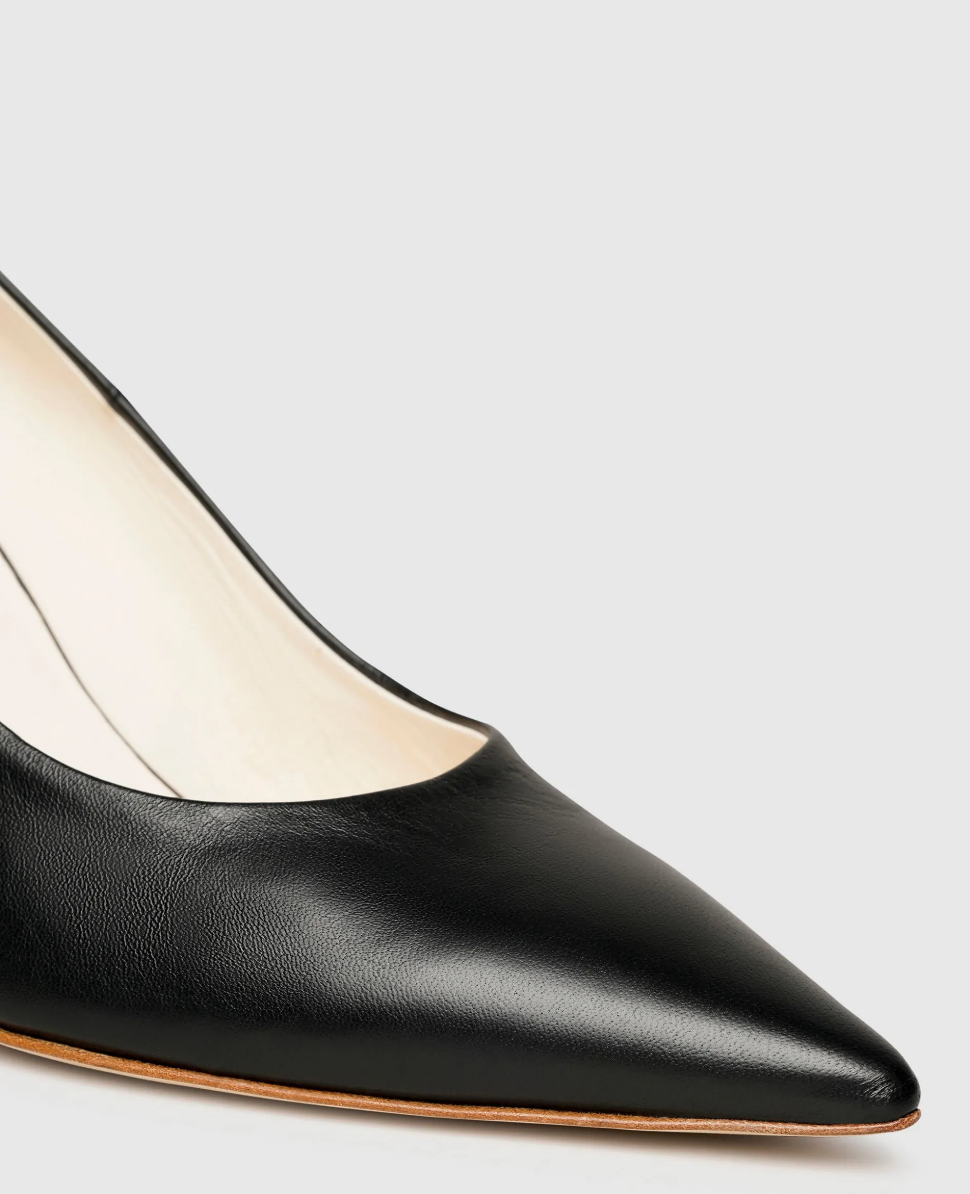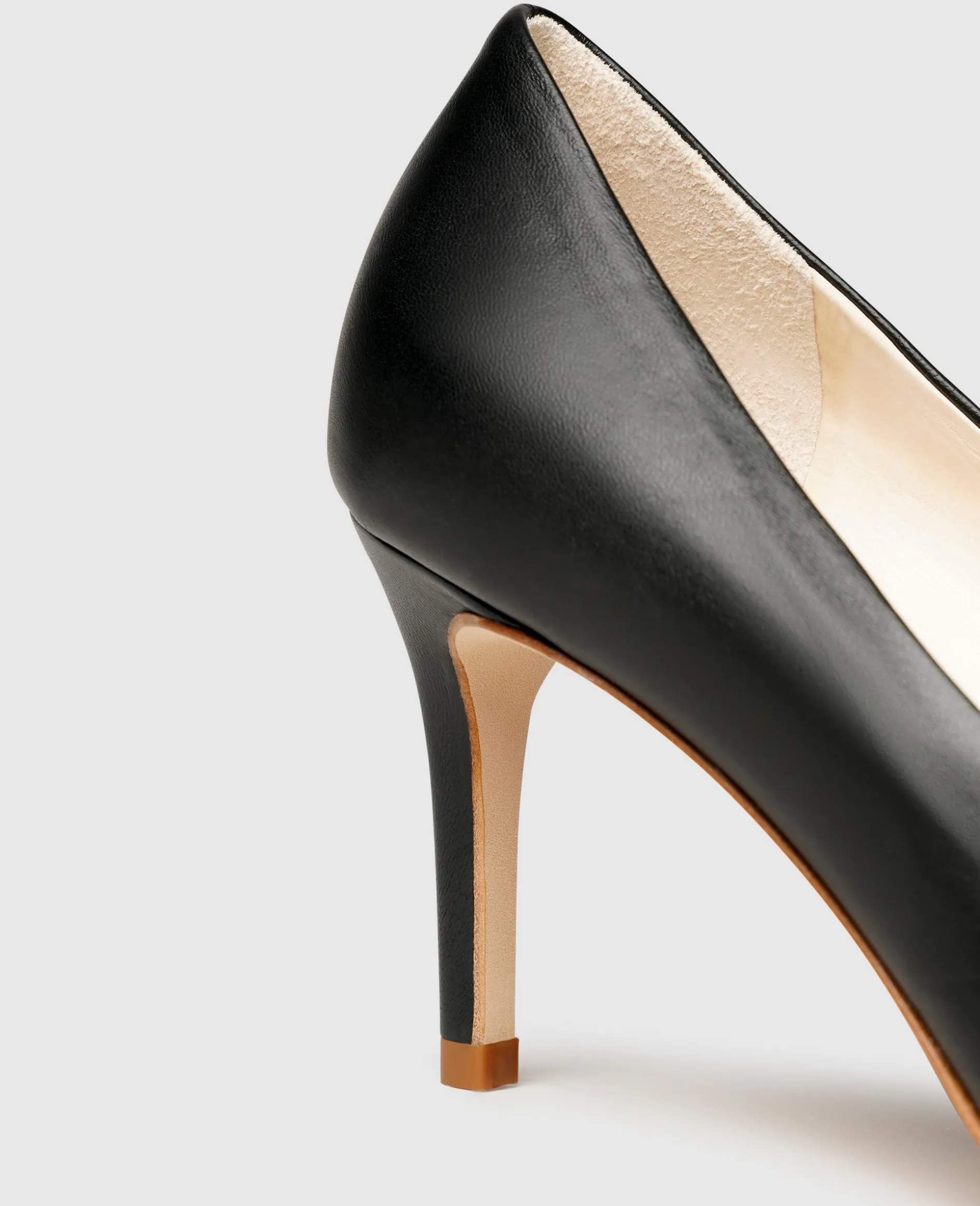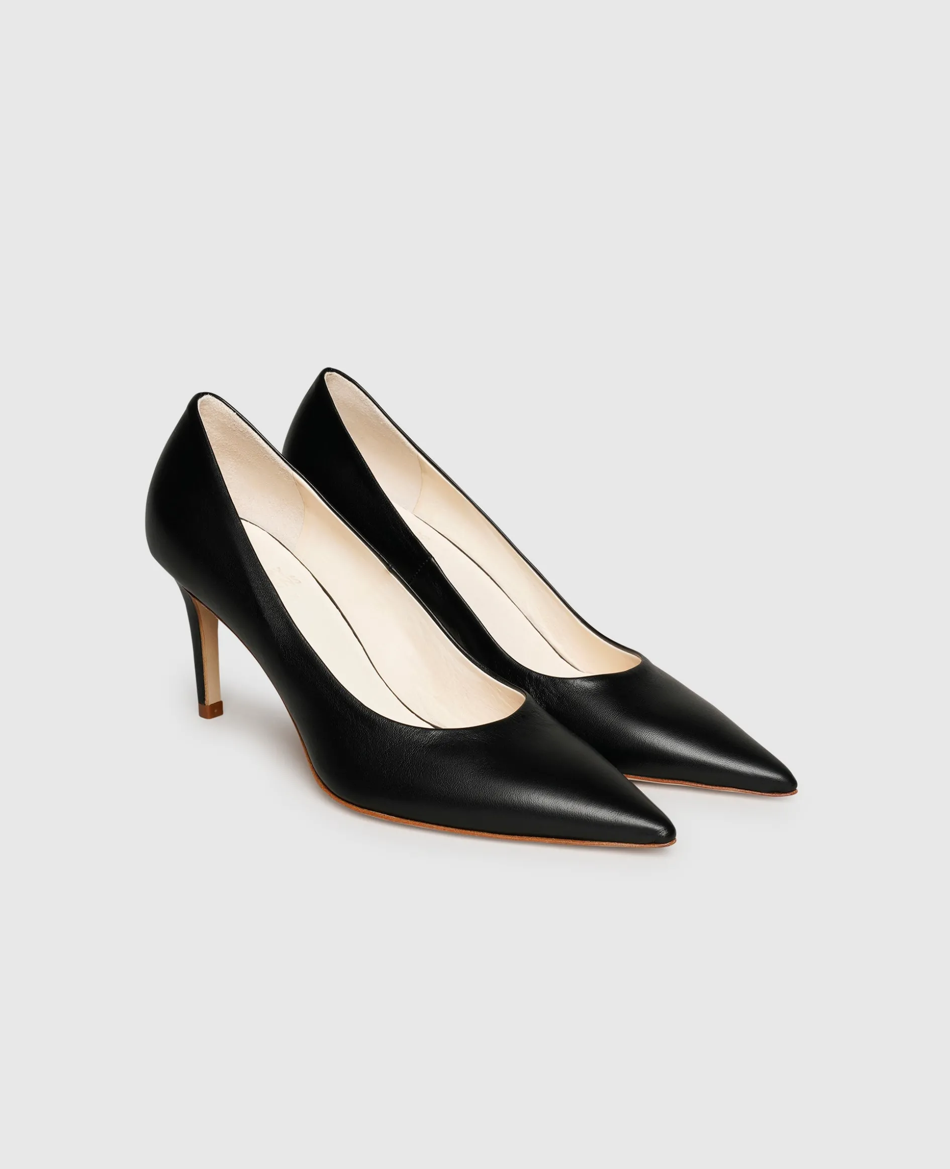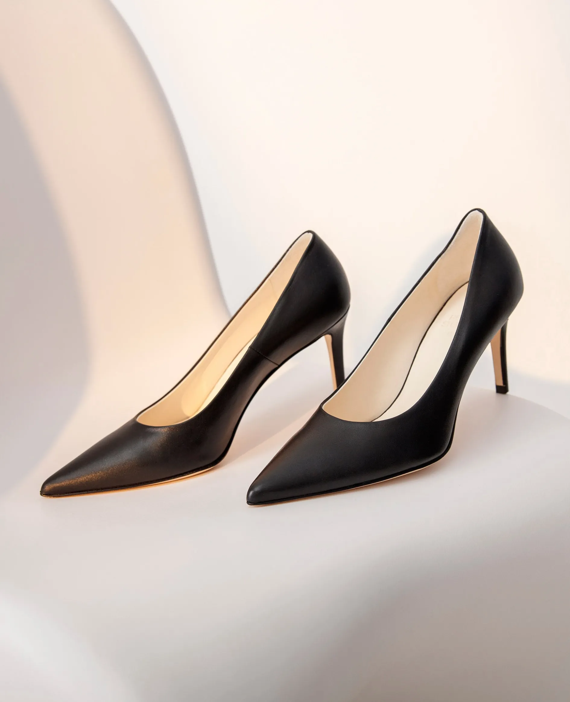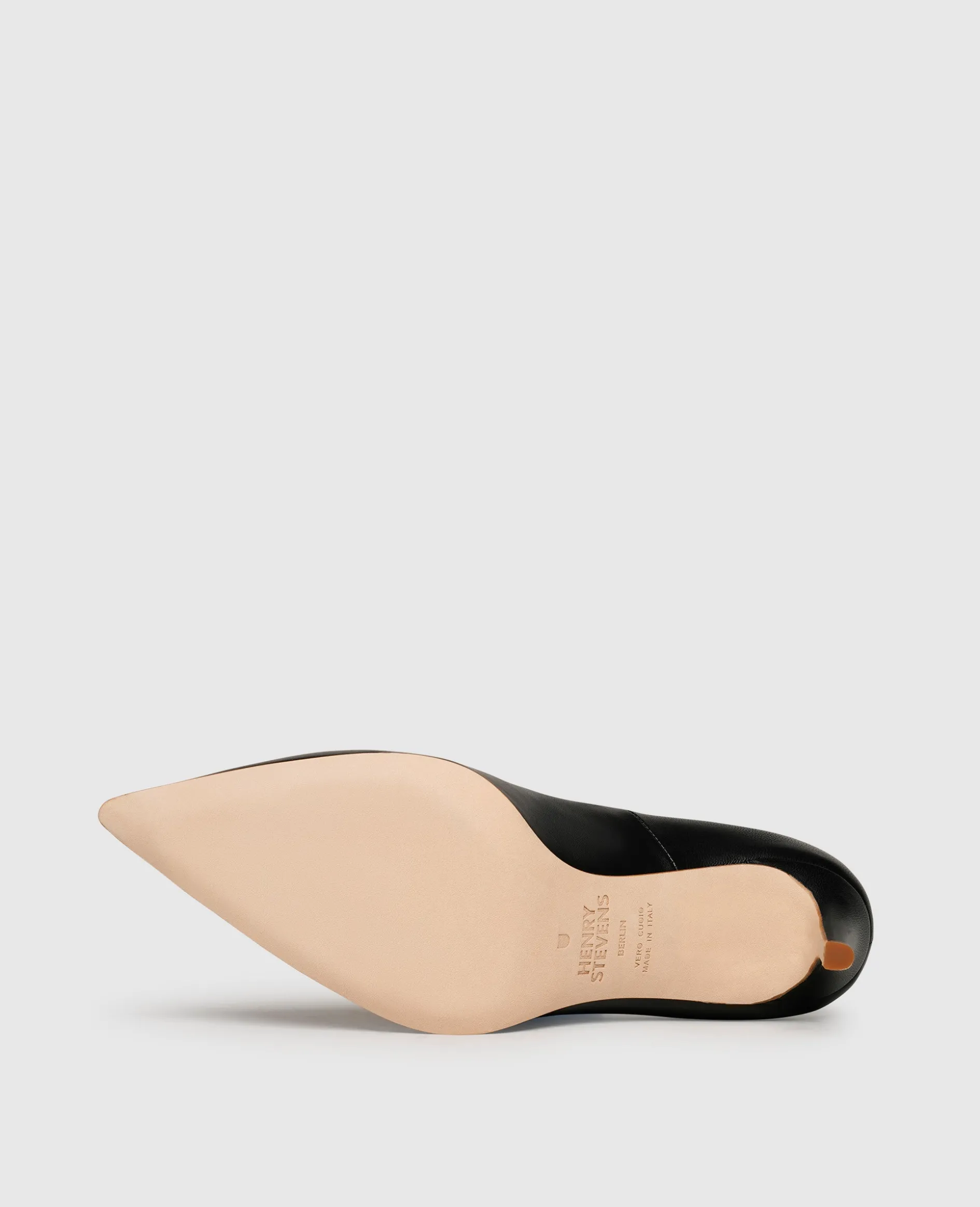 Diese Pumps von Henry Stevens sind die perfekte sommerliche Wahl für leichte und luftige Outfits. Ergänzt wird dieses schwarze Damenschuhmodell aus glattem und elegantem Ziegennappa durch einen Pfennigabsatz mit einer Höhe von 7 Zentimetern. Im Inneren sorgt Bio-Leder nicht nur für ein angenehmes Schuhklima, es ist auch besonders hautfreundlich vollständig kompostierbar. Durch die natürliche Lederlaufsohle und das gemütliche Fußbett aus Leder mit Memoryfoam-Effekt wird Ihnen ein besonders hohes Maß an Komfort geboten. Dieser in Italien gefertigte Schlupfschuh ist ein wahres Allroundtalent für die elegante Businessgarderobe, den feierlichen Anlass und geschmackvolle Freizeit-Kombinationen.