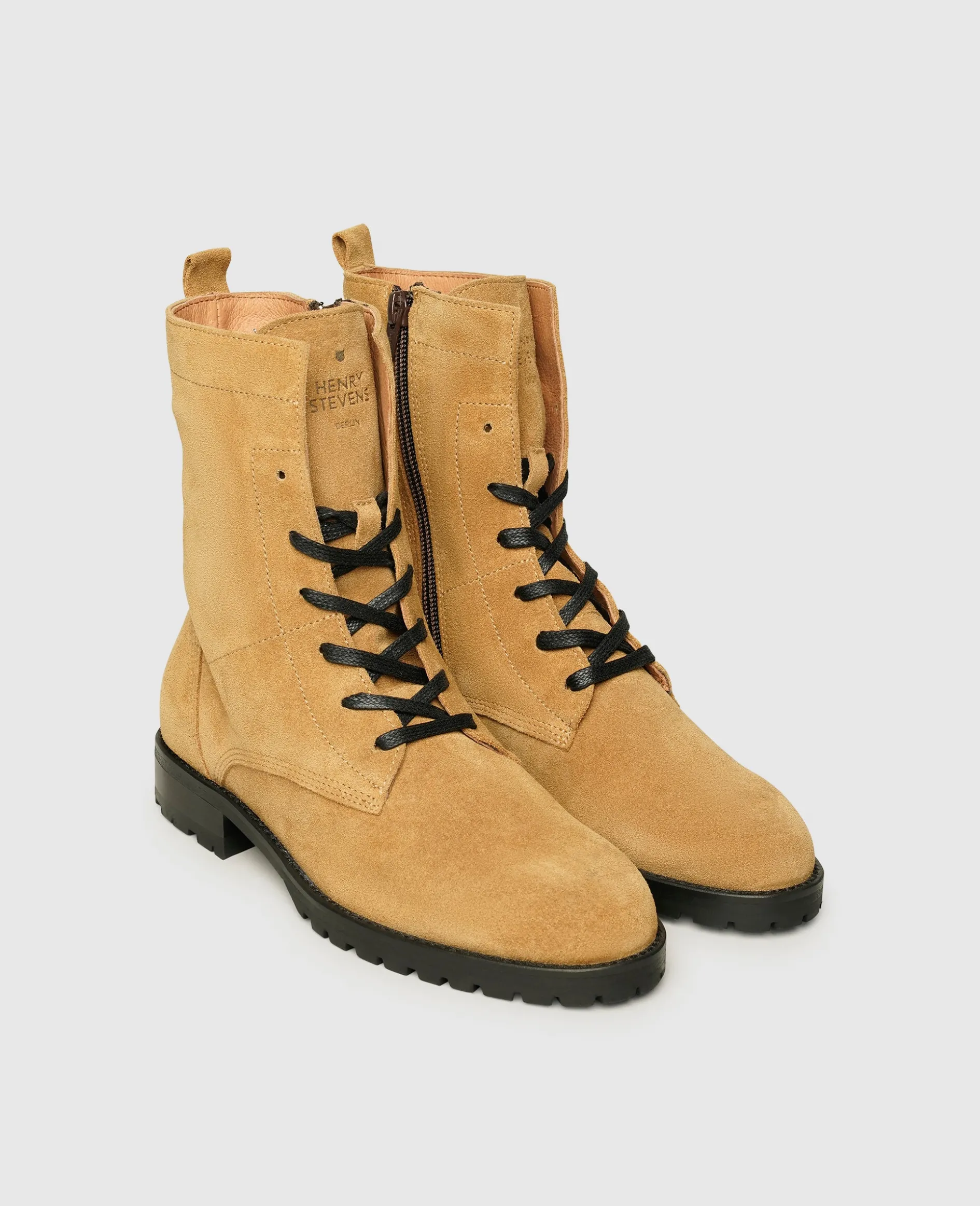 Bestens geschützt und garantiert gut gekleidet schreiten Damen durch die nasskalte Saison mit diesen Schnürstiefeln von Henry Stevens. Der mittelhohe Schaft der Damenstiefel ziert eine Schnürung mit breiten Bändern, welche allerdings nicht für jeden Ein- und Ausstieg bemüht werden müssen, da die Damenstiefel auf der Innenseite über praktische Reißverschlüsse verfügen. Die dynamische Optik des Veloursleders in Kombination mit der robusten Gummiprofilsohle runden die Erscheinung des vielseitigen Modells ab.