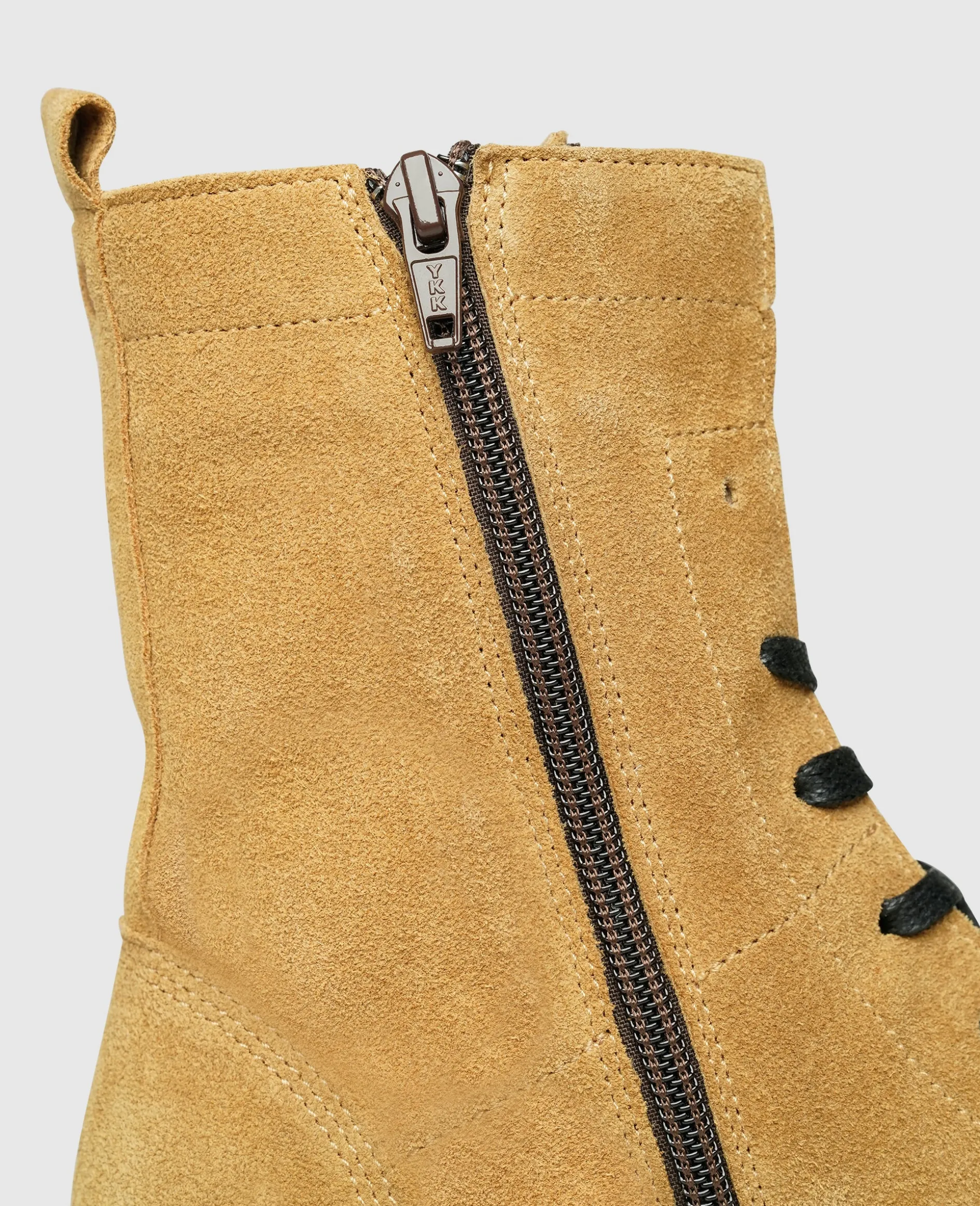 Das verarbeitete Velours-Leder ist ein besonders feines durchgefärbtes Rauleder mit kurzem Schliff, das von der Fleischseite gewonnen wird. Velours ist geschmeidig weich und resistent gegen Staub. Seine Pflege ist dementsprechend einfach. Regelmäßiges Ausbürsten mit einer Raulederbürste genügt.