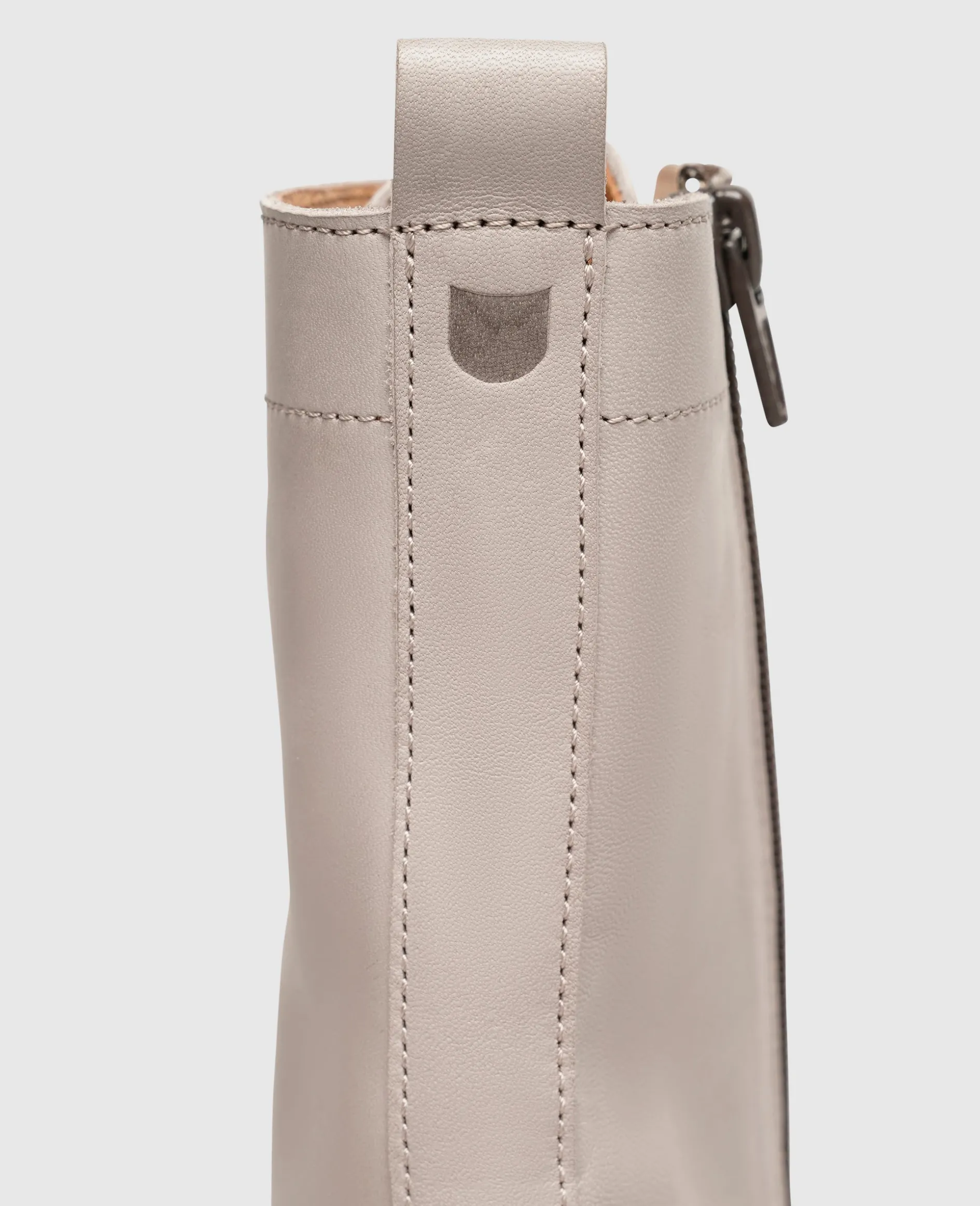 Das vollgriffige, seidig glänzende Kalbsleder von mittlerem Weichegrad zeichnet sich durch seine Feinheit, Schmiegsamkeit und die zarte Maserung aus.